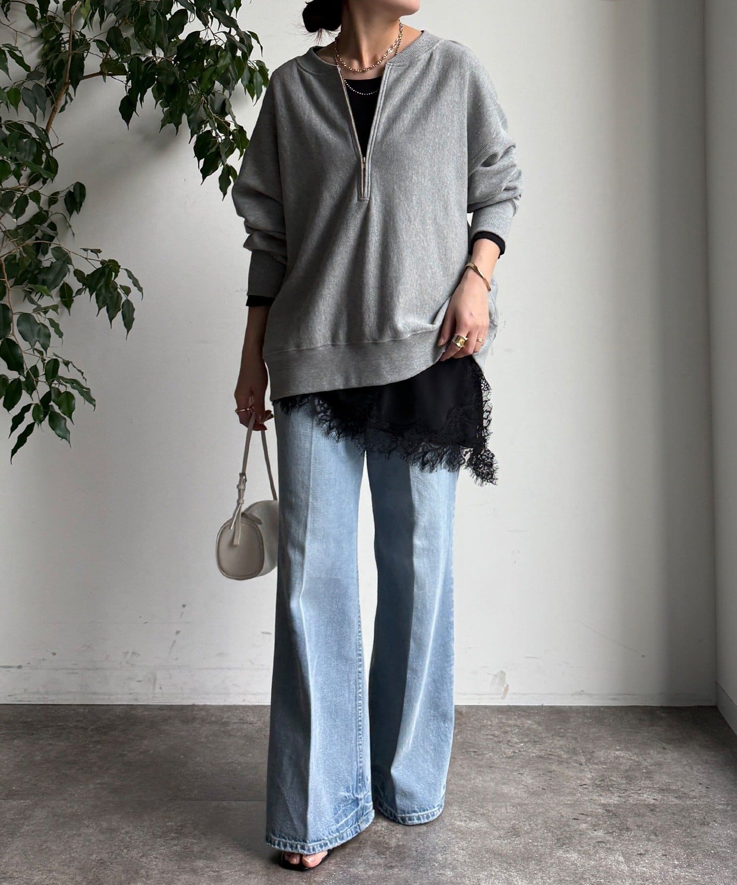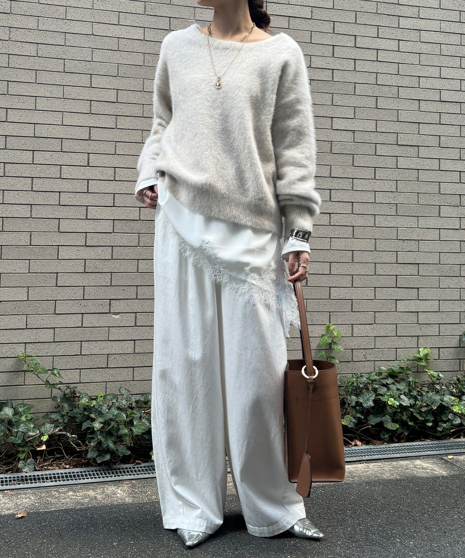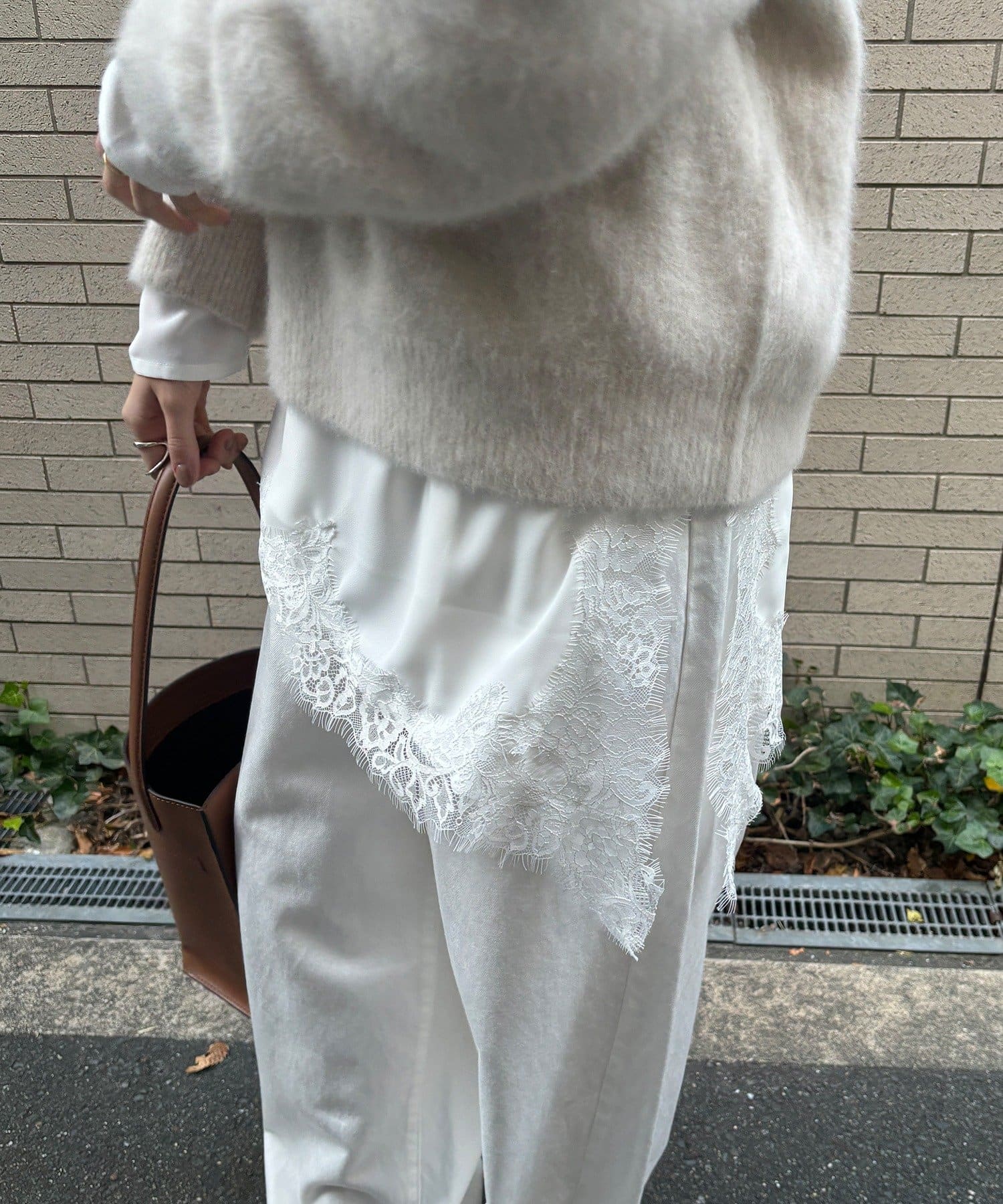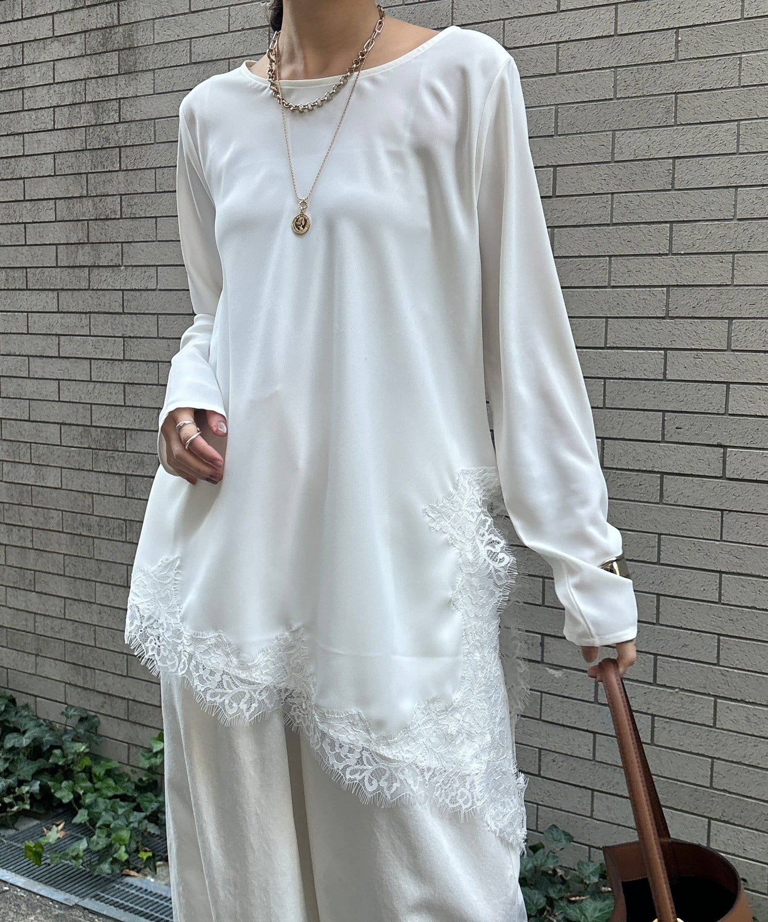 また、裾にはアシンメトリーのレースデザインをプラスすることで、レイヤードした際ポイントとなってくれる1枚に。
