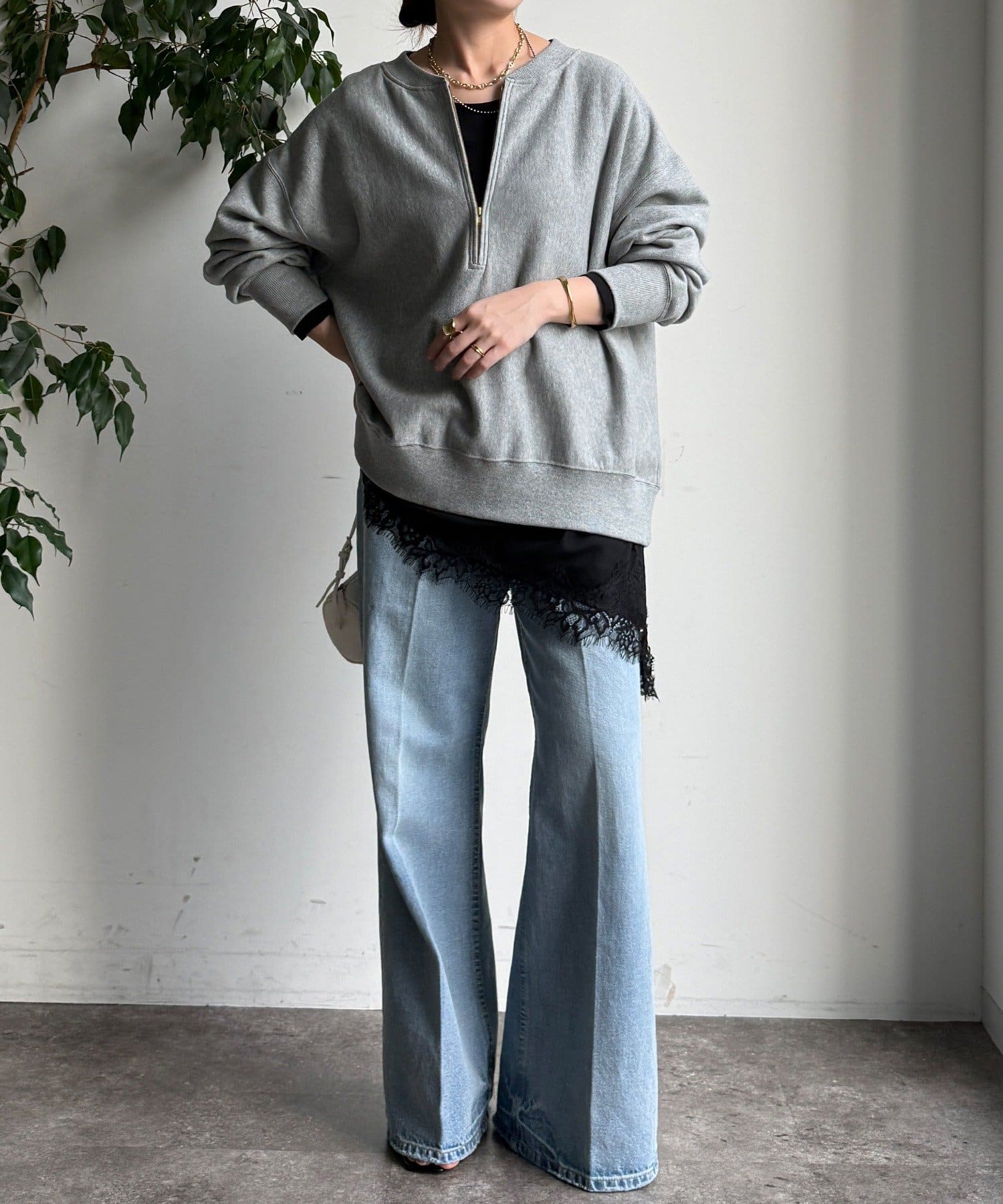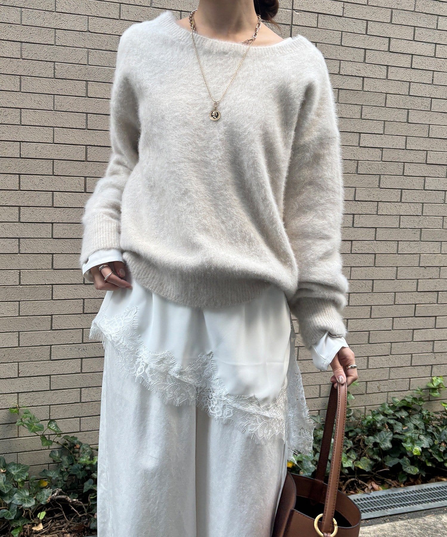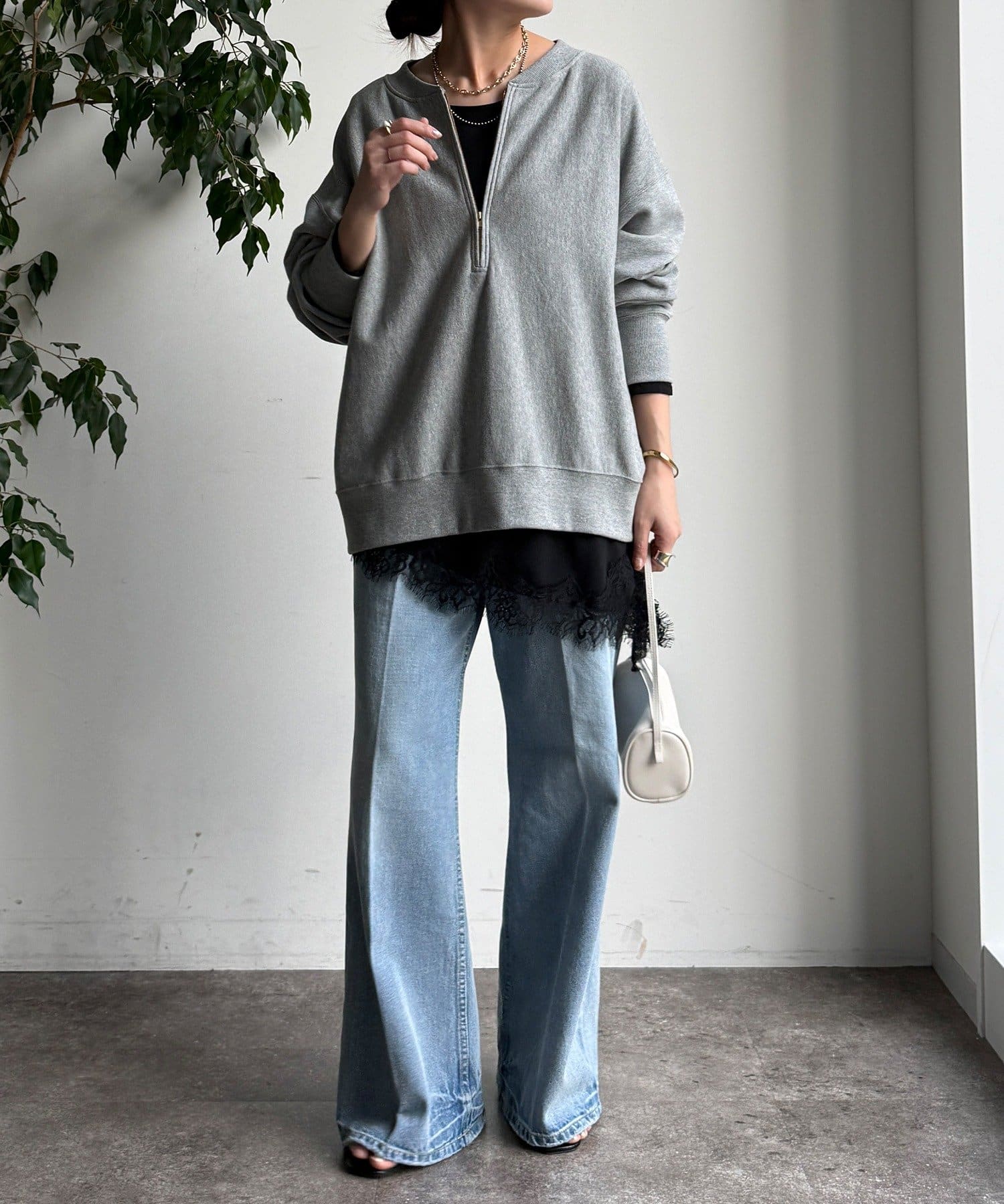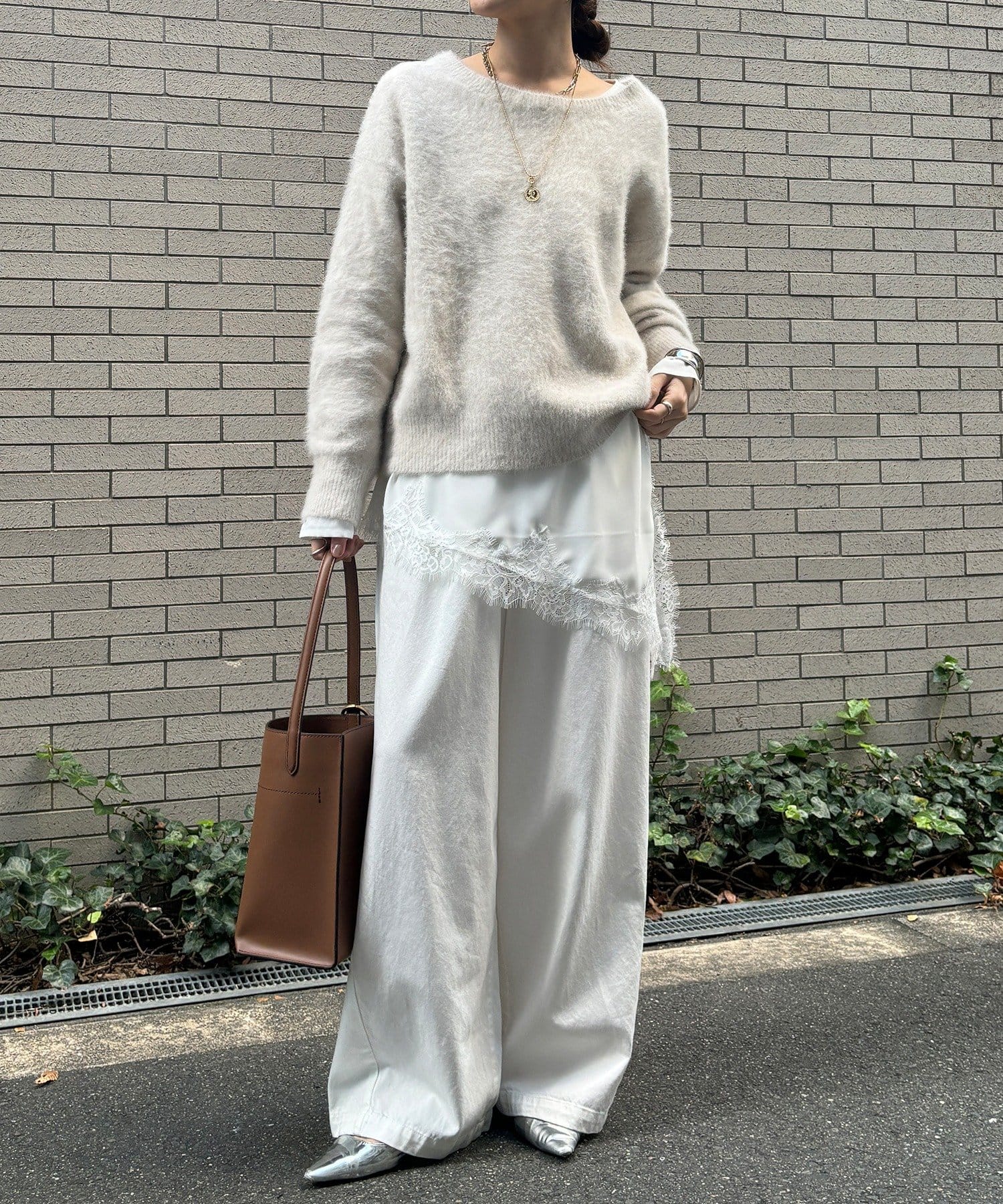 また、裾にはアシンメトリーのレースデザインをプラスすることで、レイヤードした際ポイントとなってくれる1枚に。