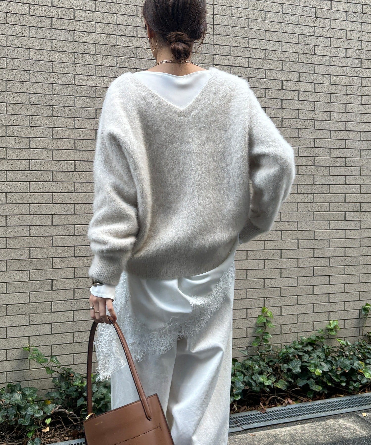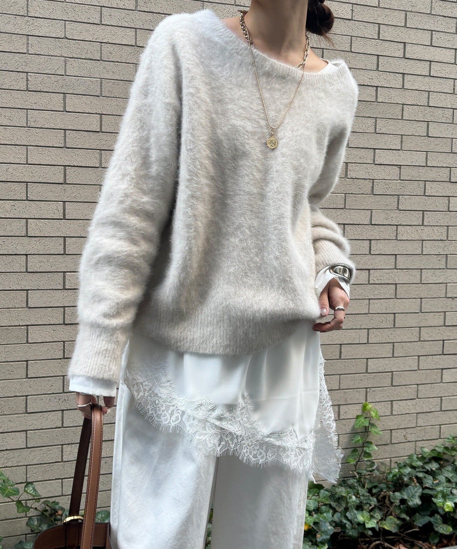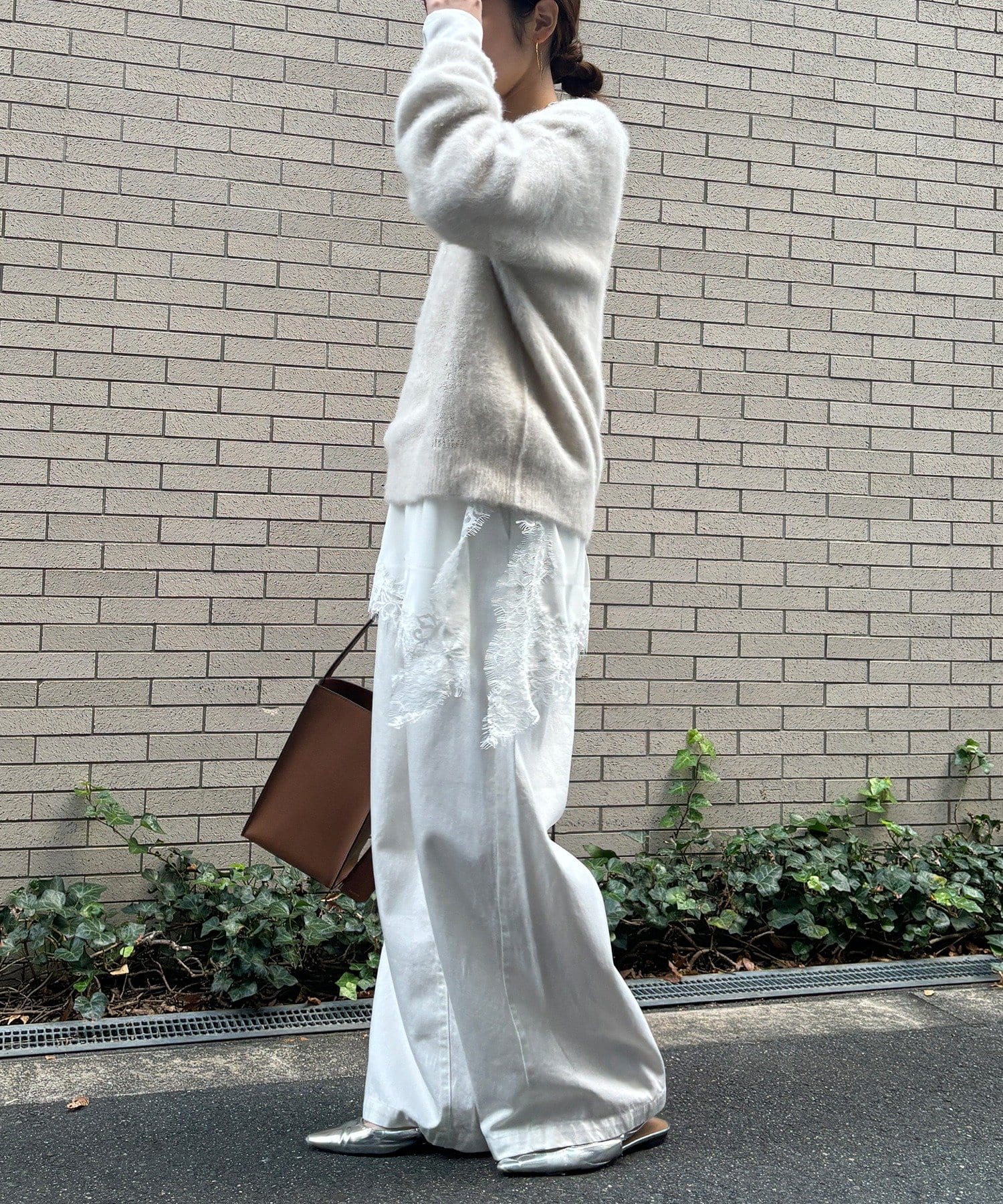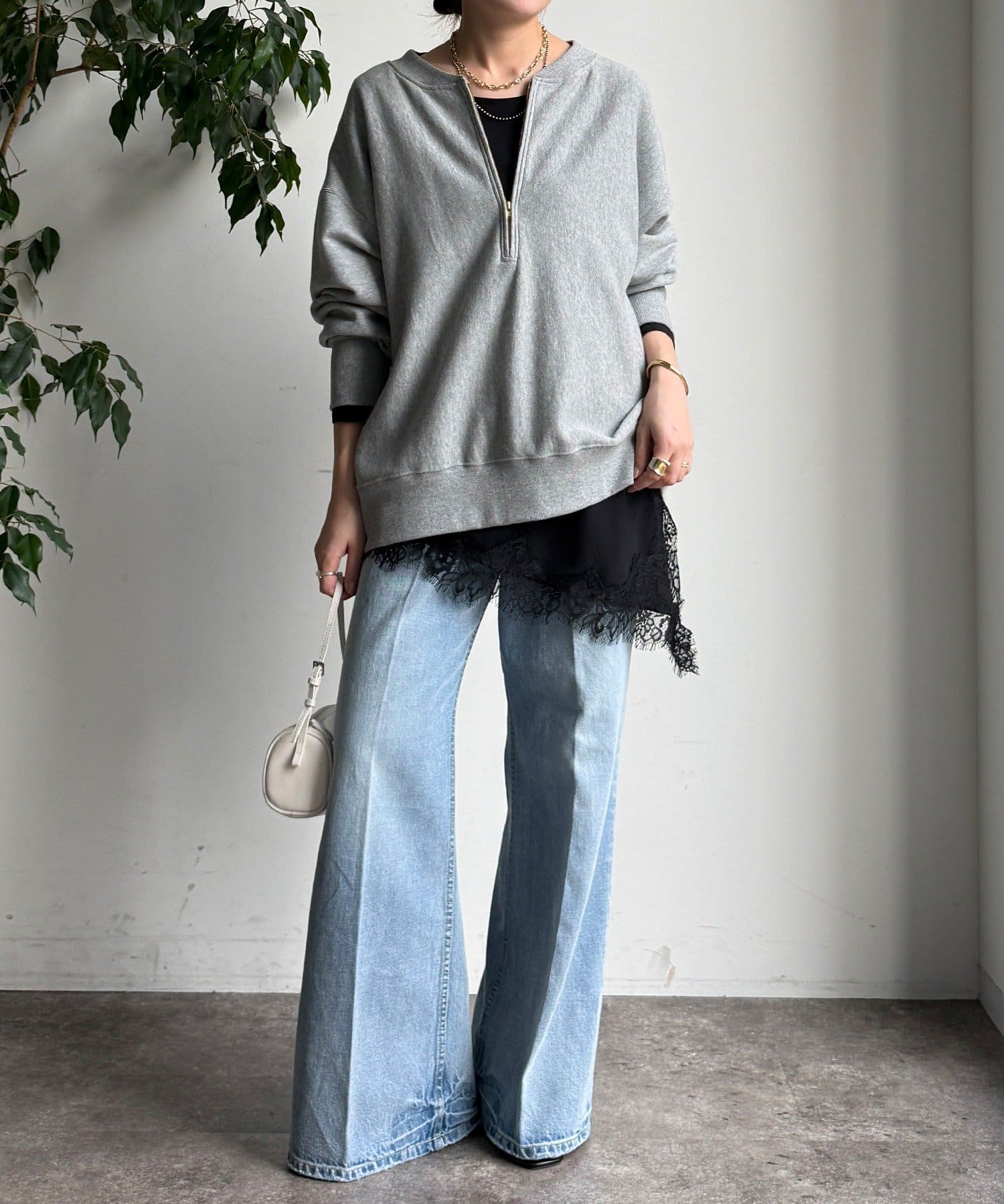 また、裾にはアシンメトリーのレースデザインをプラスすることで、レイヤードした際ポイントとなってくれる1枚に。