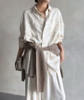 シャツと同色に揃えた小ぶりなボタンが、さりげなく洗練されたアクセントを添えてくれます。