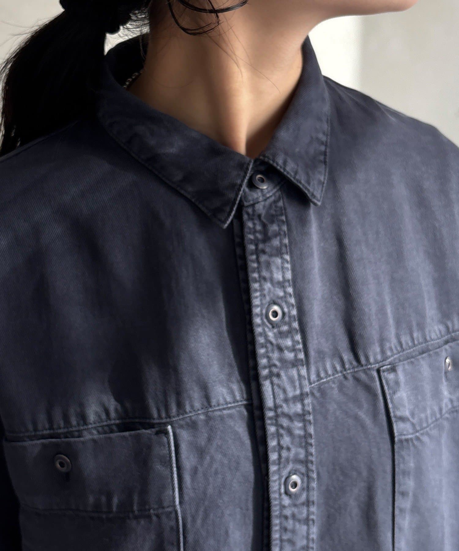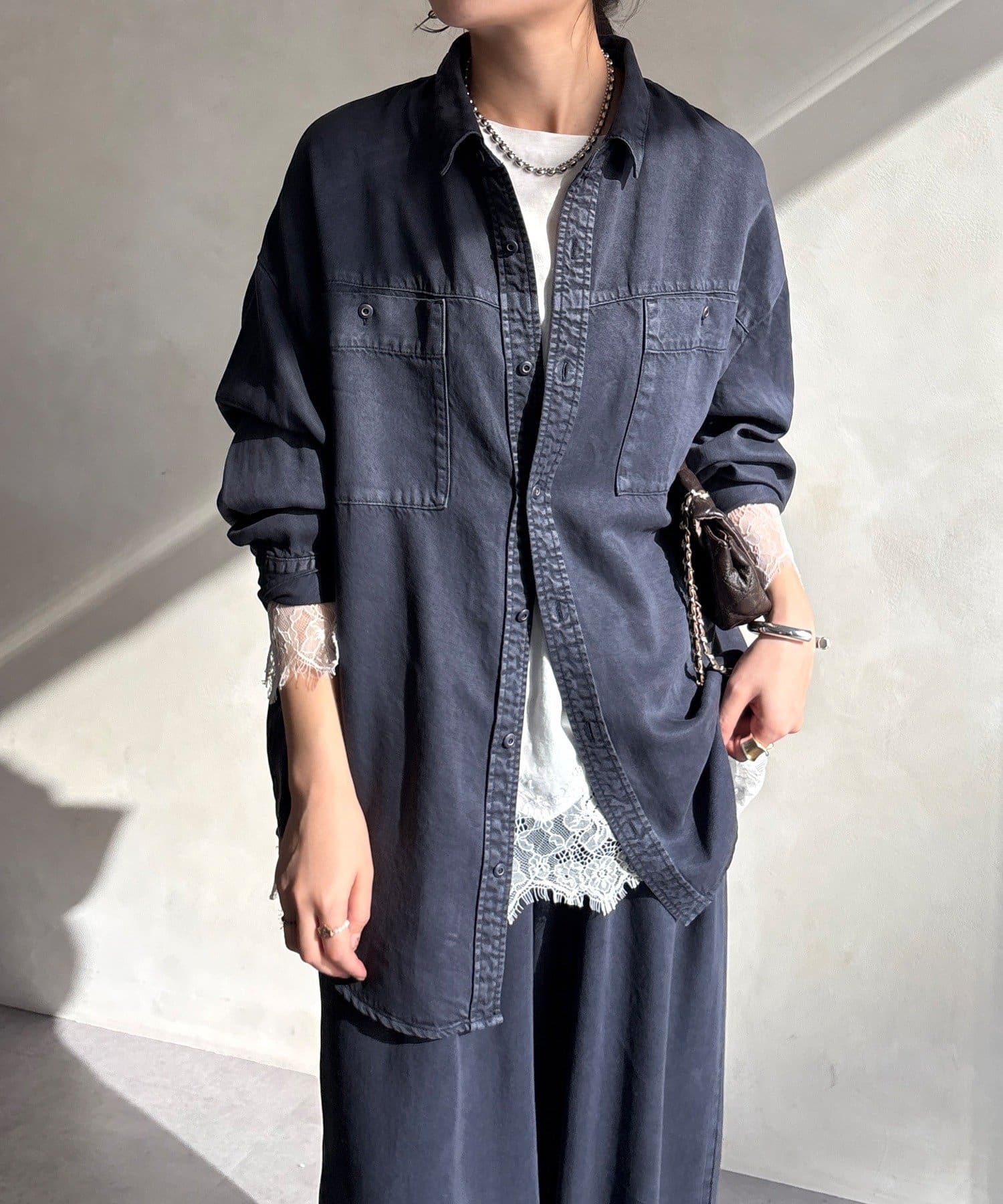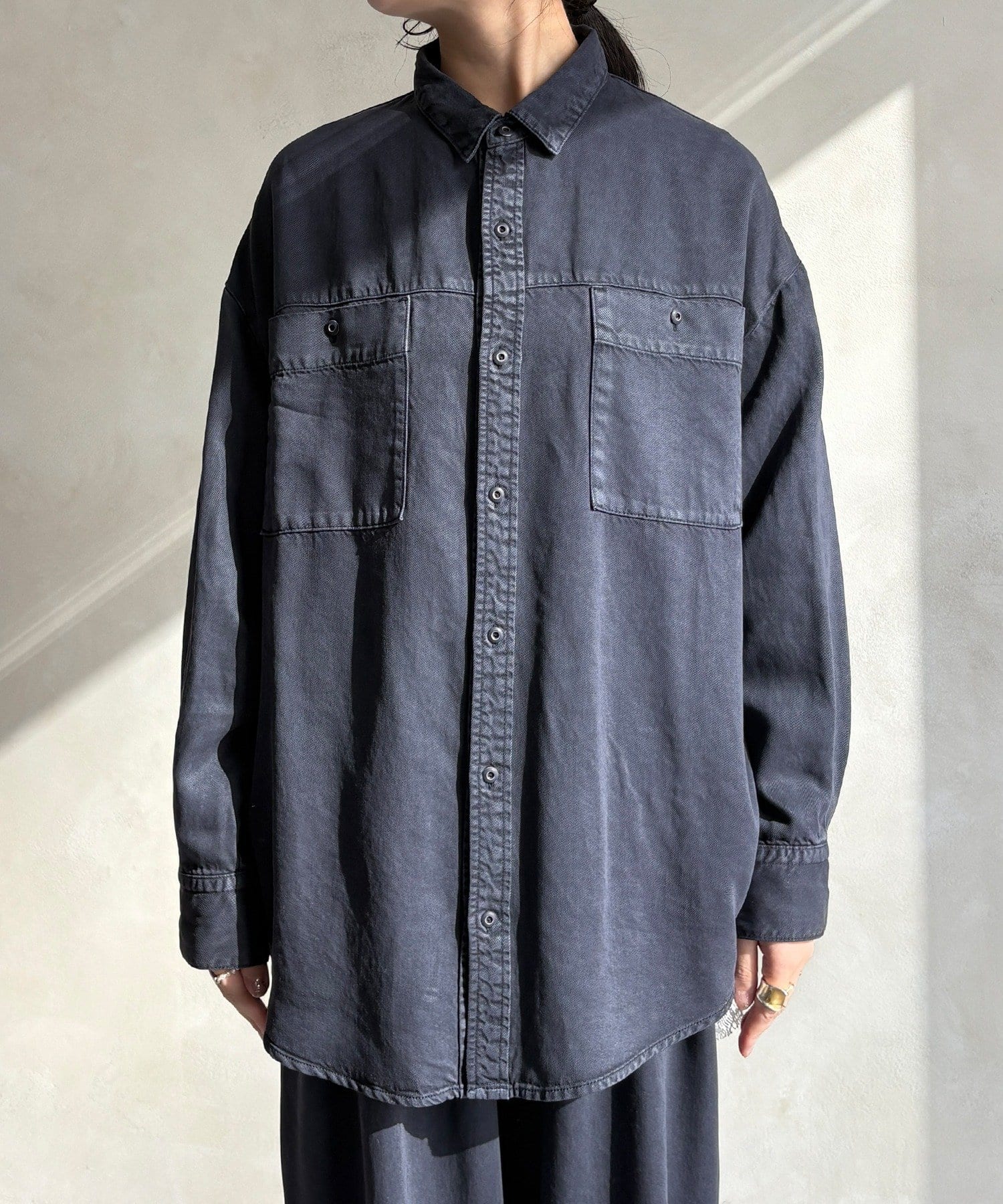 リヨセル素材特有の柔らかな落ち感と、ヴィンテージのような風合いが目を惹くオーバーシャツ。