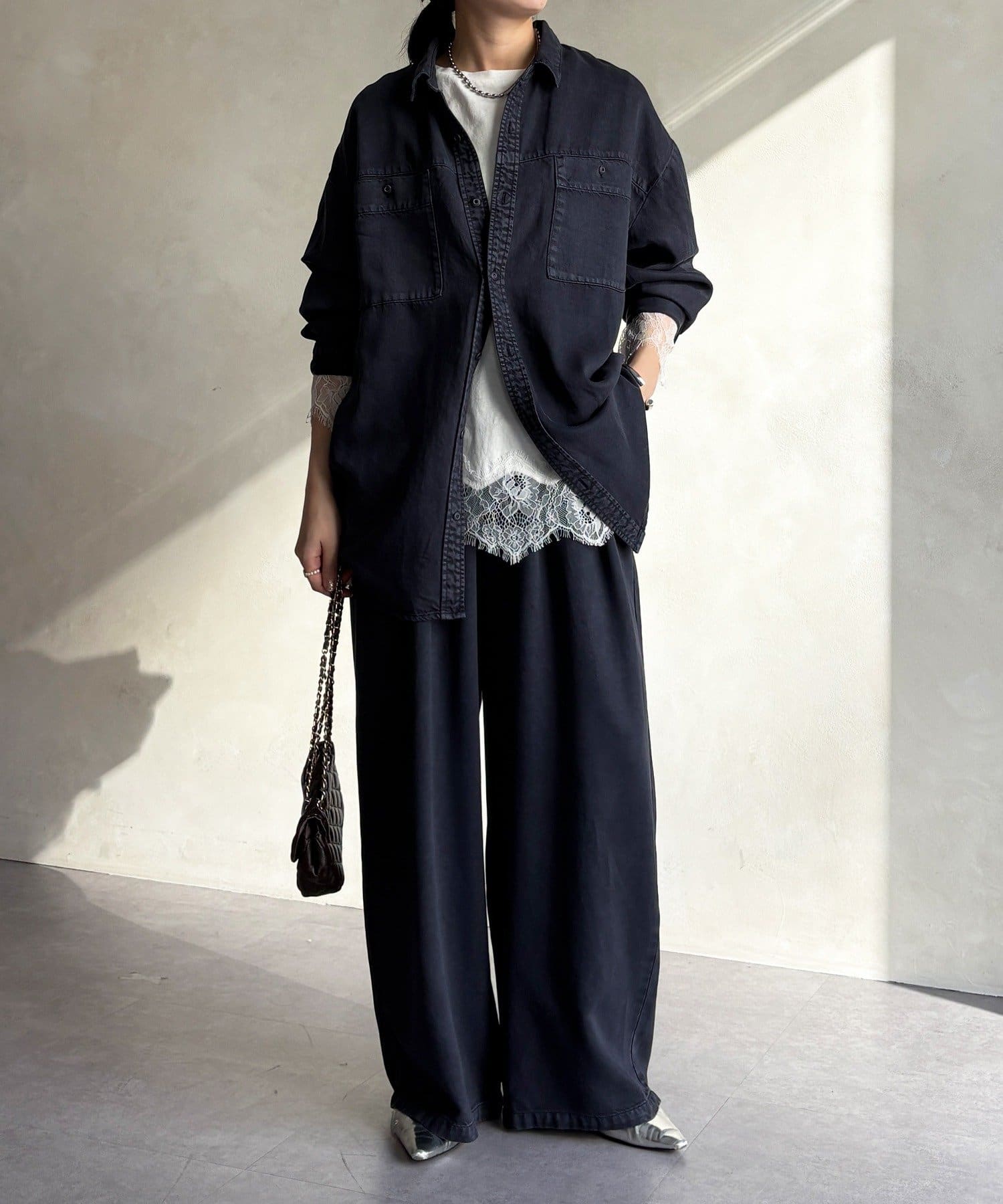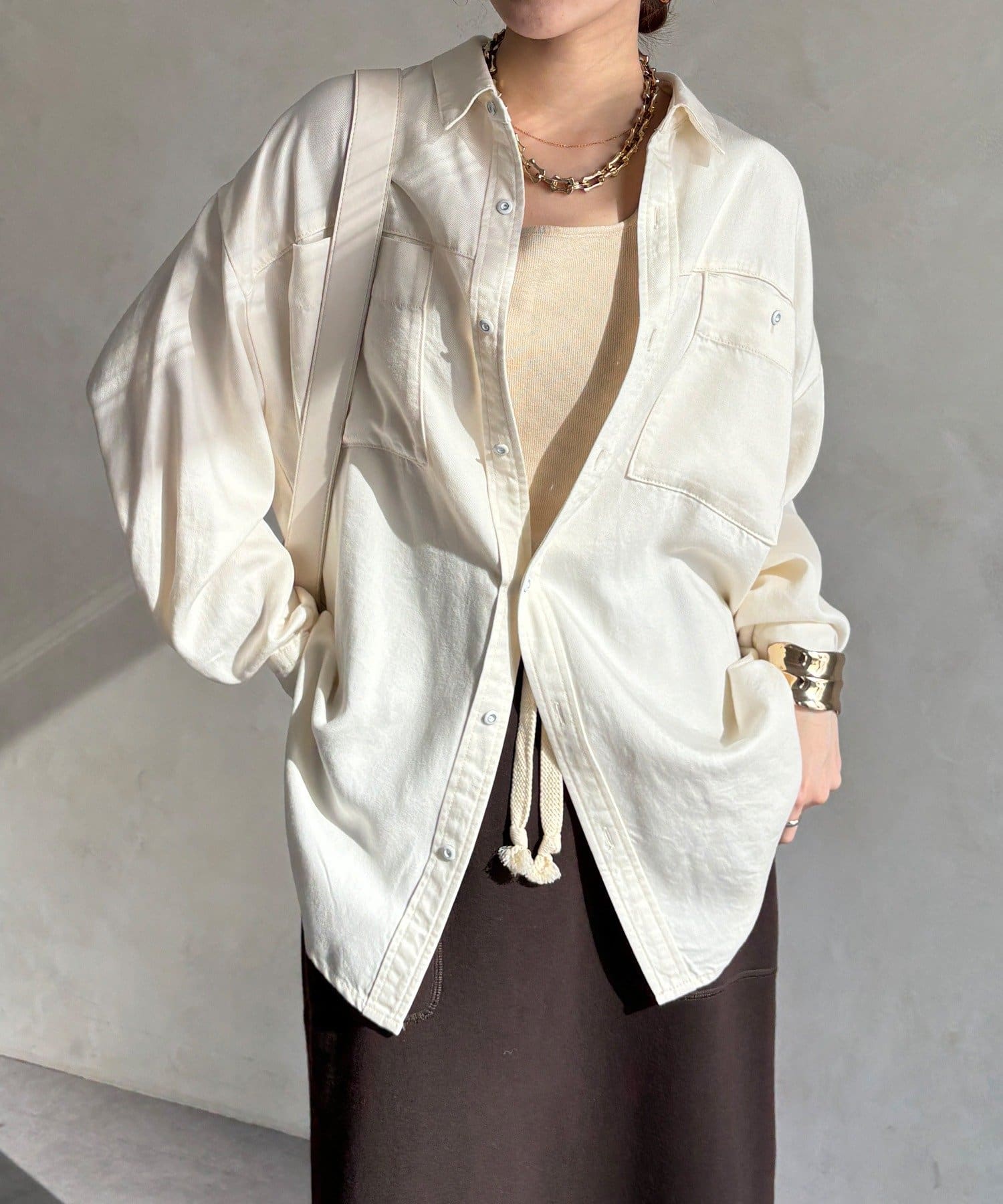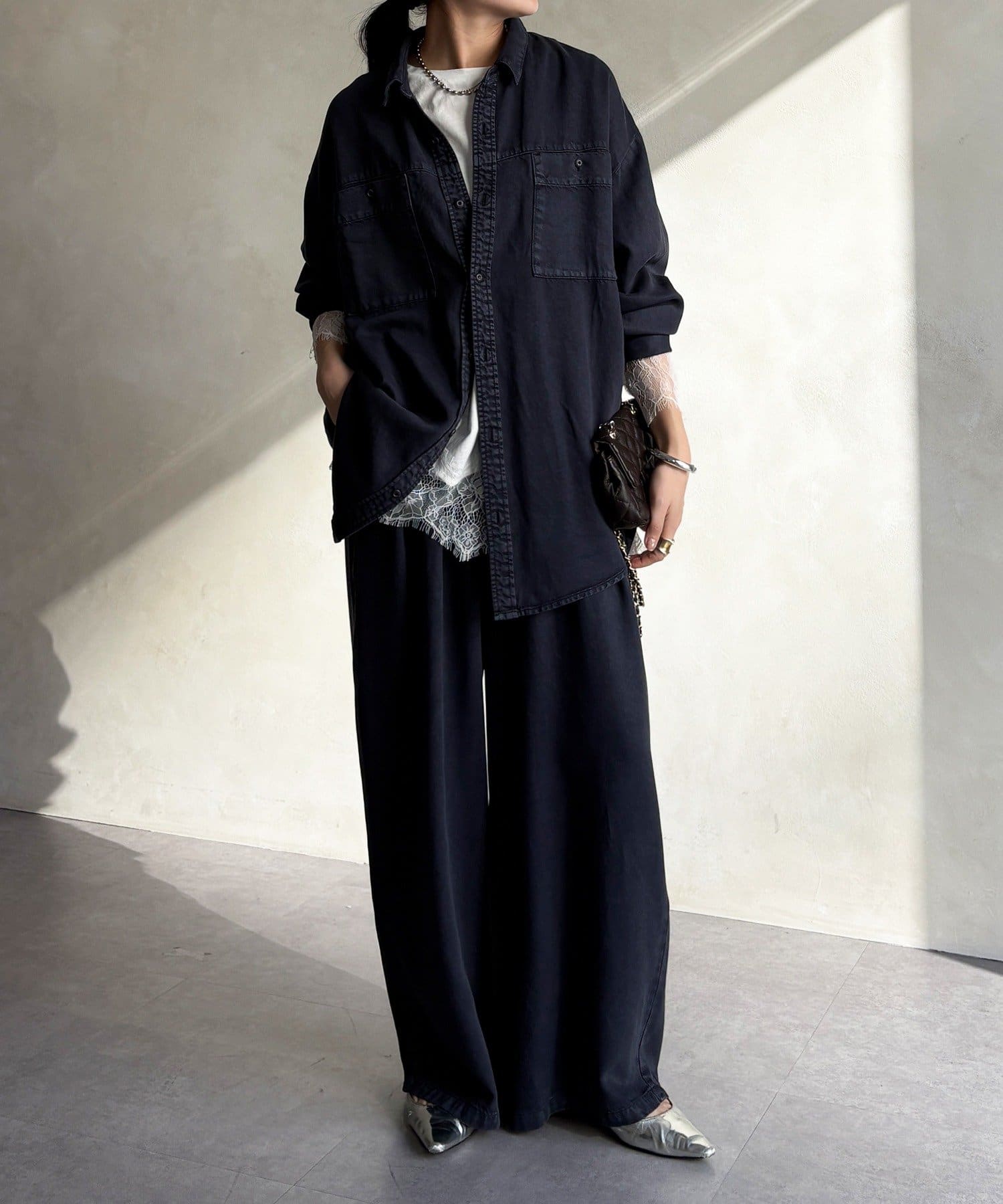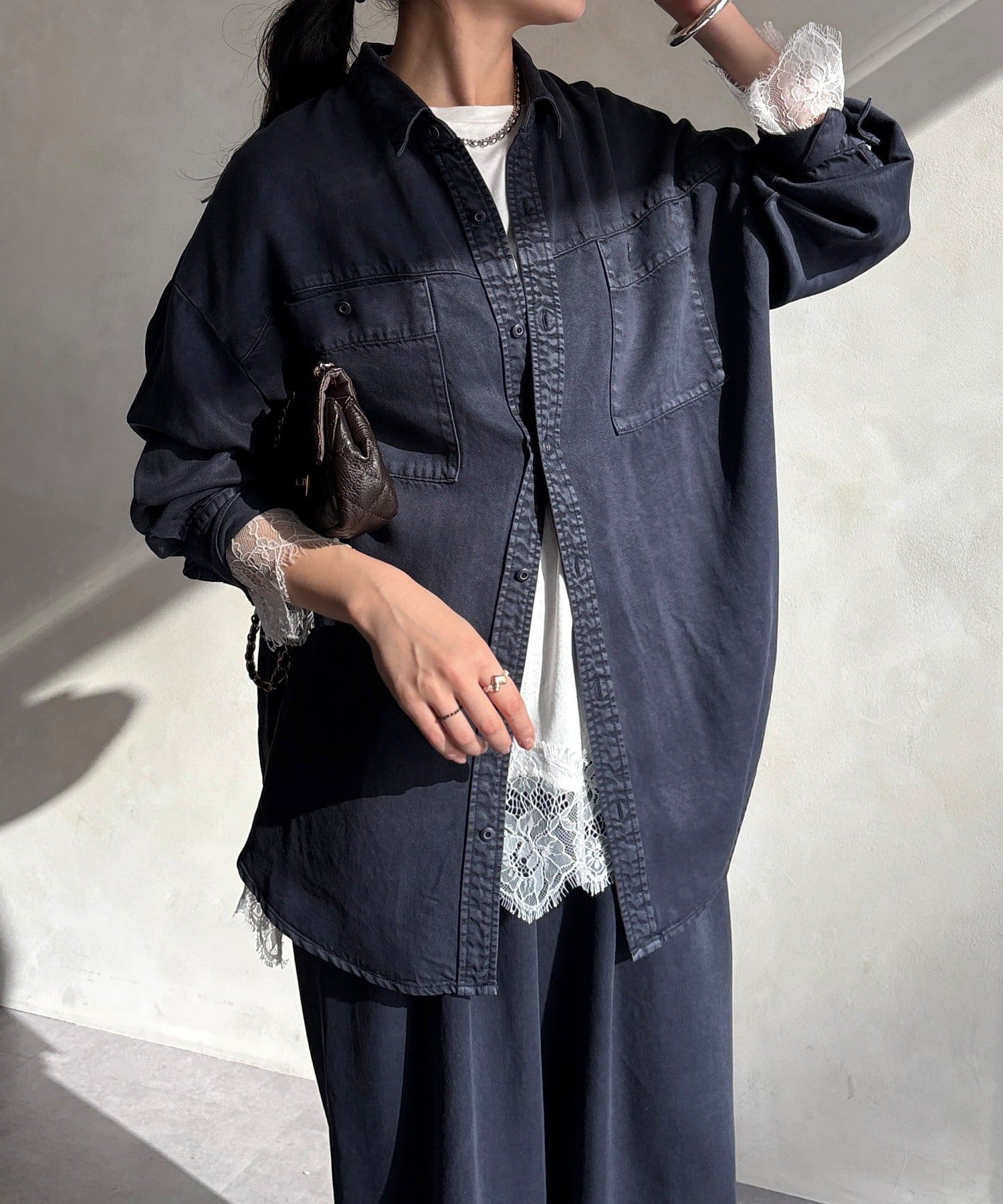 リヨセル素材特有の柔らかな落ち感と、ヴィンテージのような風合いが目を惹くオーバーシャツ。