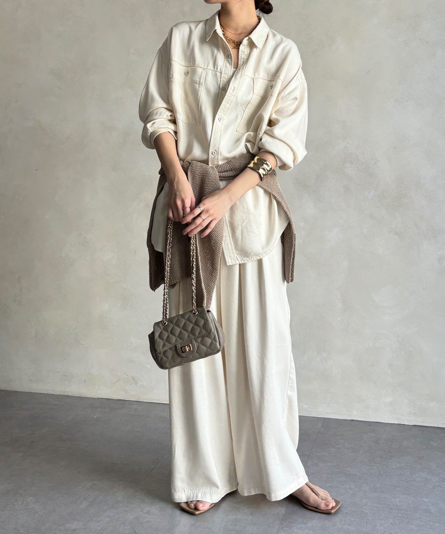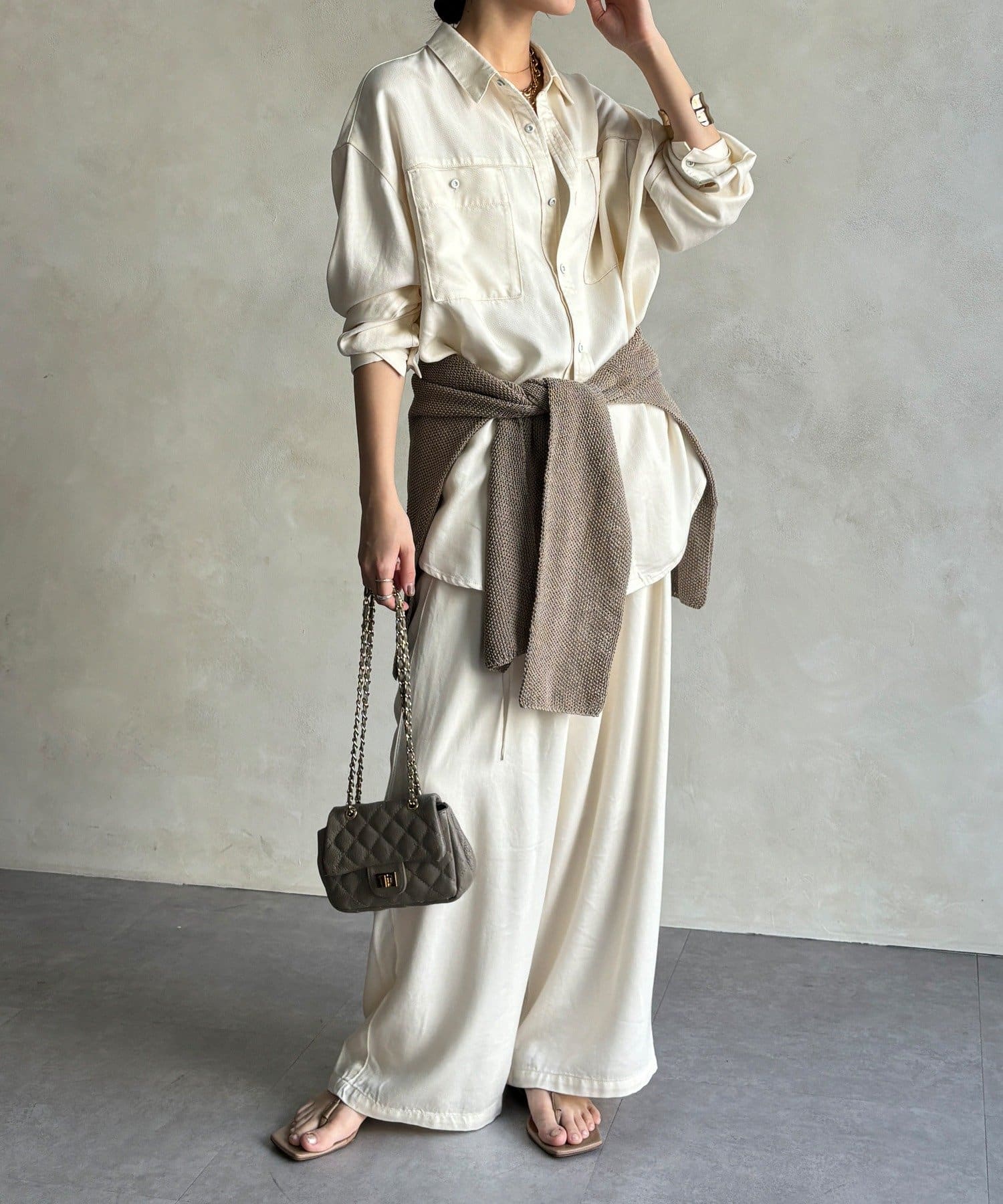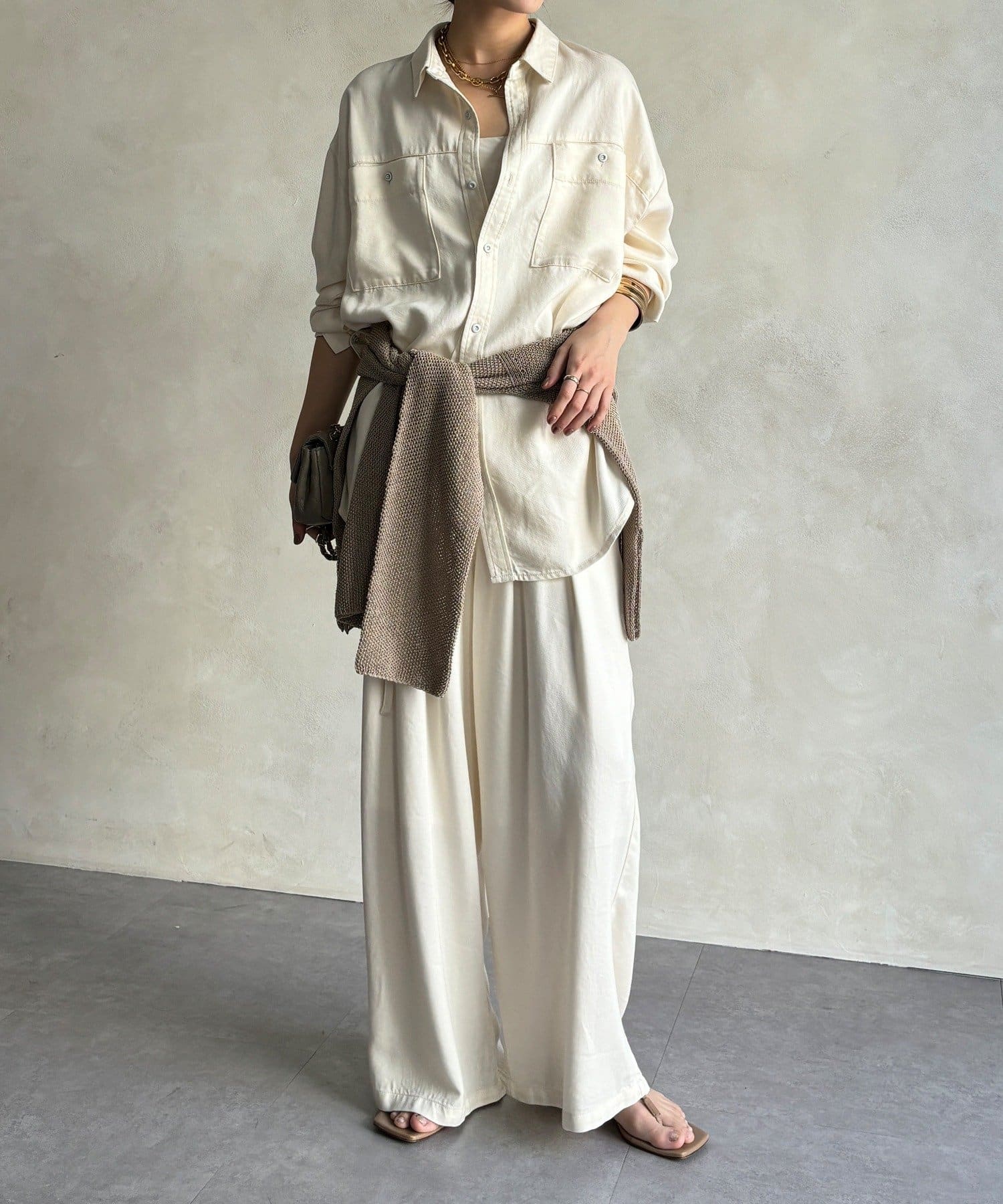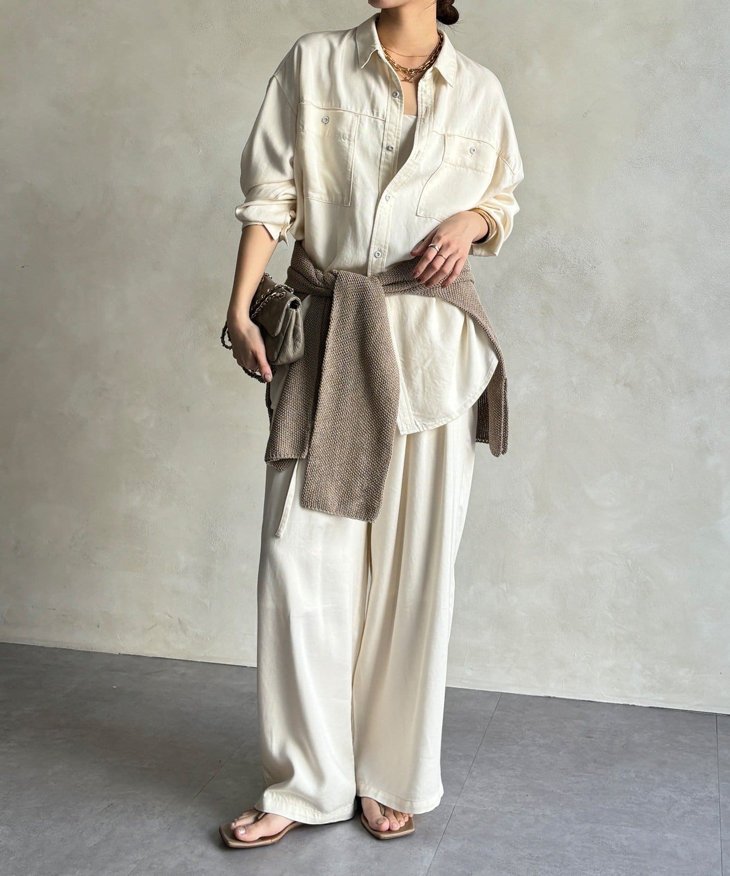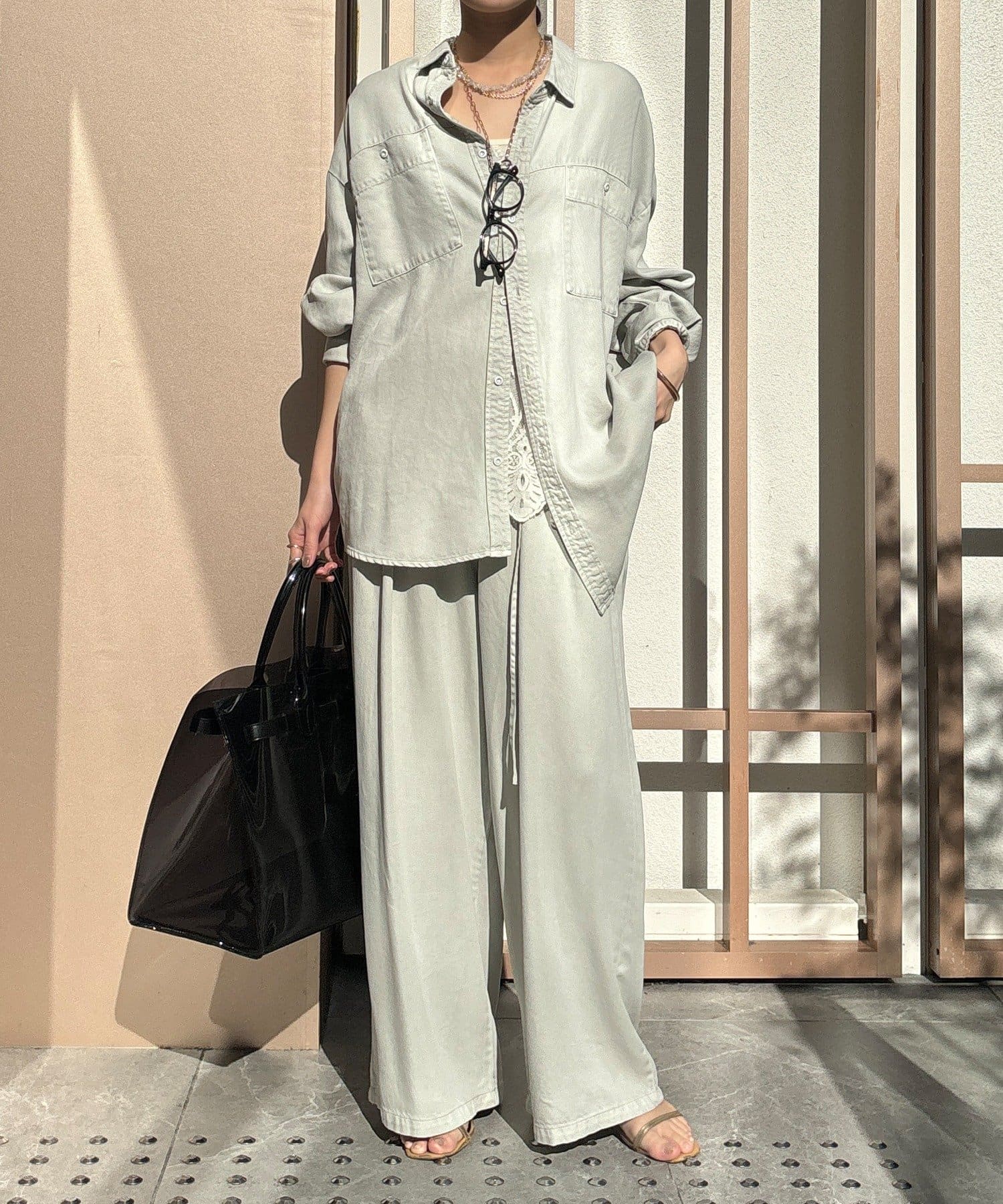 単品ではもちろん、同素材の DDZ1061102A0021 / リヨセルタックパンツ とセットアップで着こなすのもおすすめです。