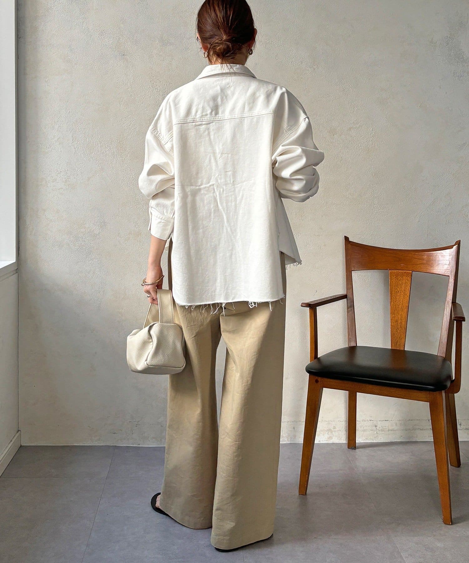 スカートと同様で裾がカットオフされており、余裕のある大人な女性を演出します。