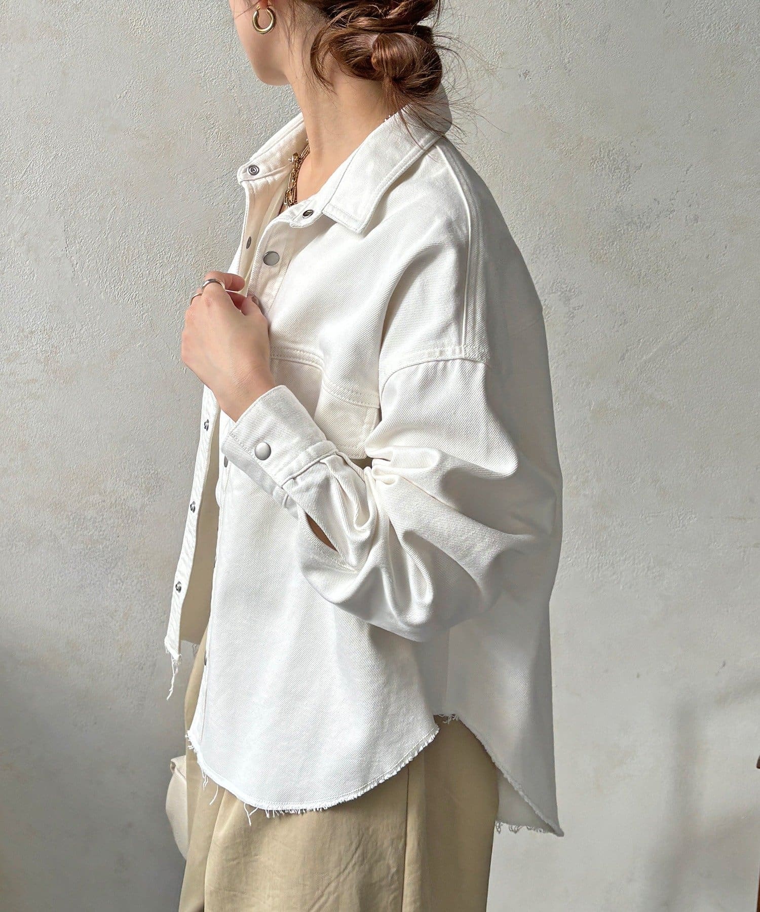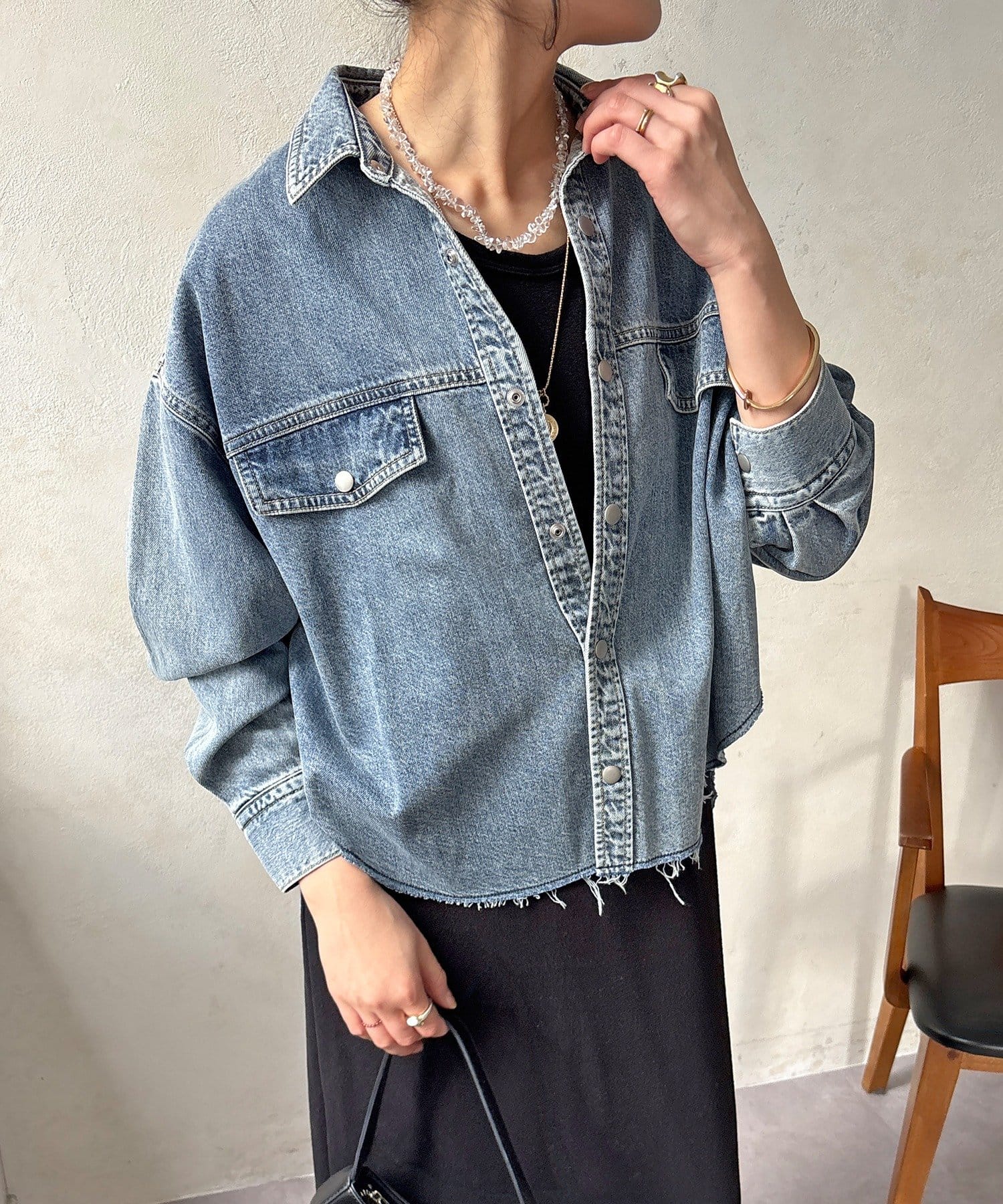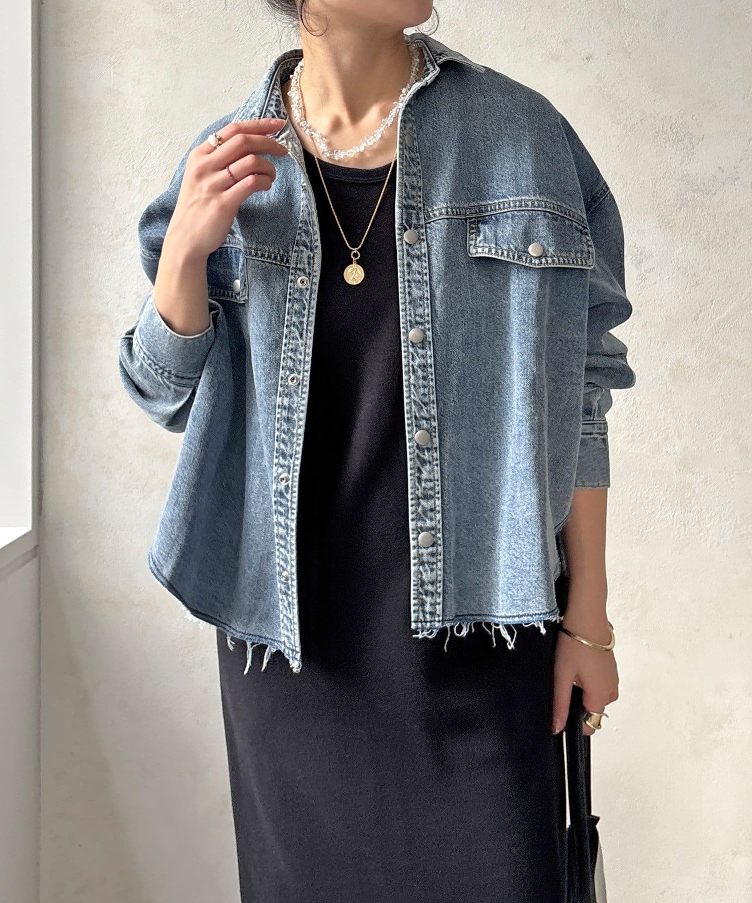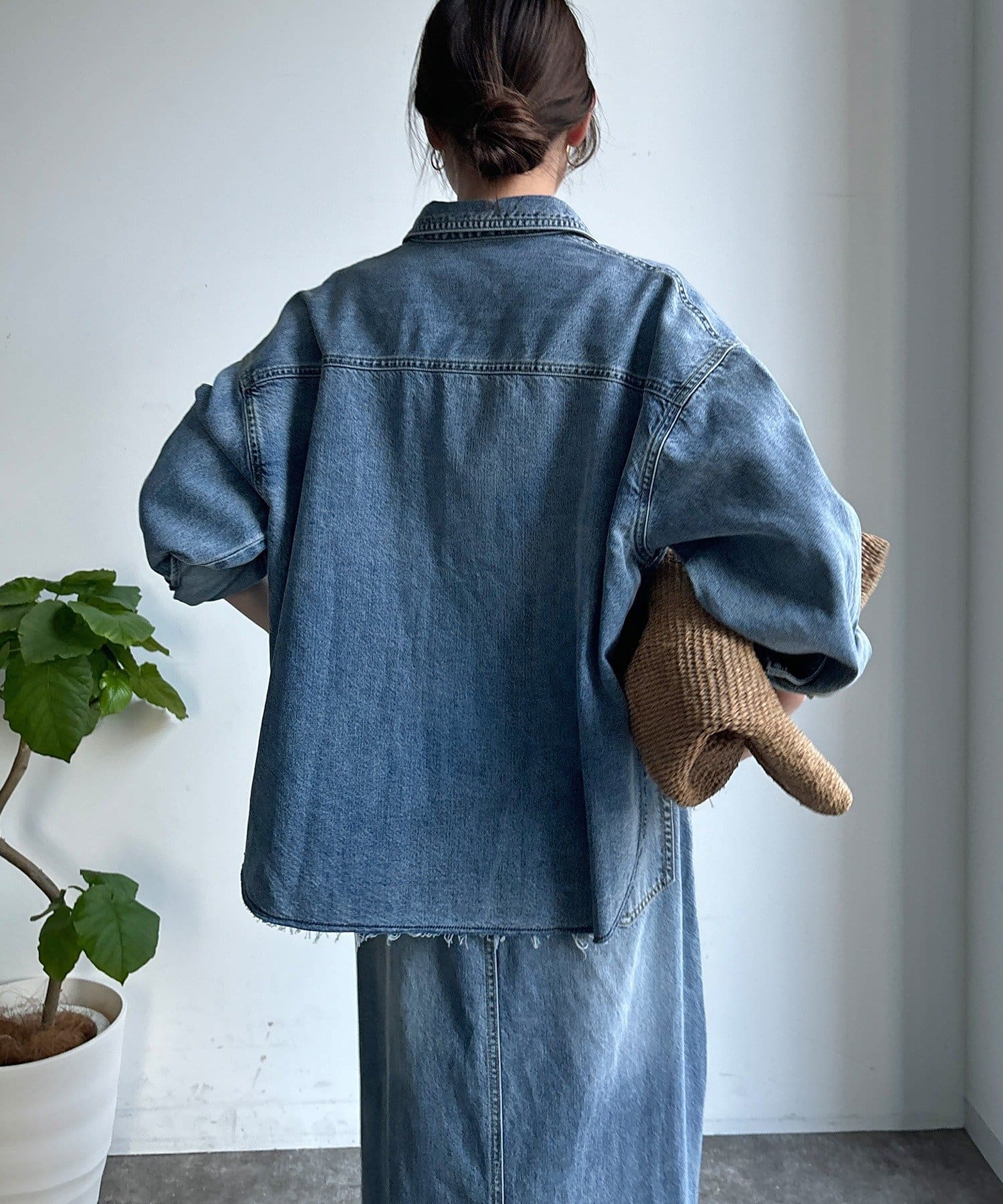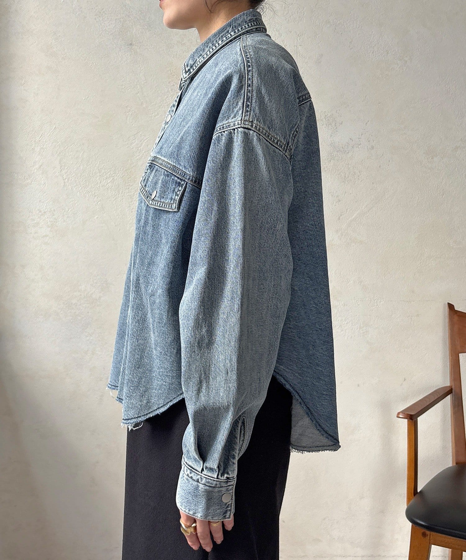 スカートとセットアップで着用可能!裾のカットオフが可愛いデニムシャツ