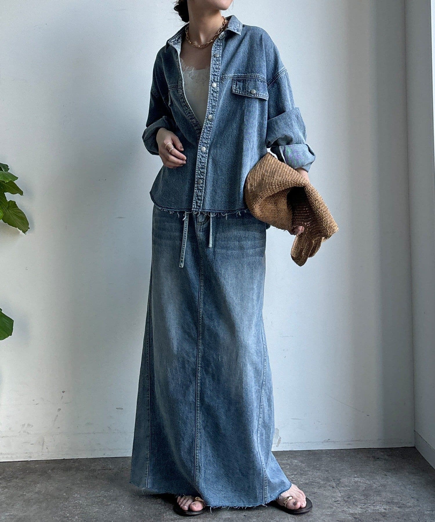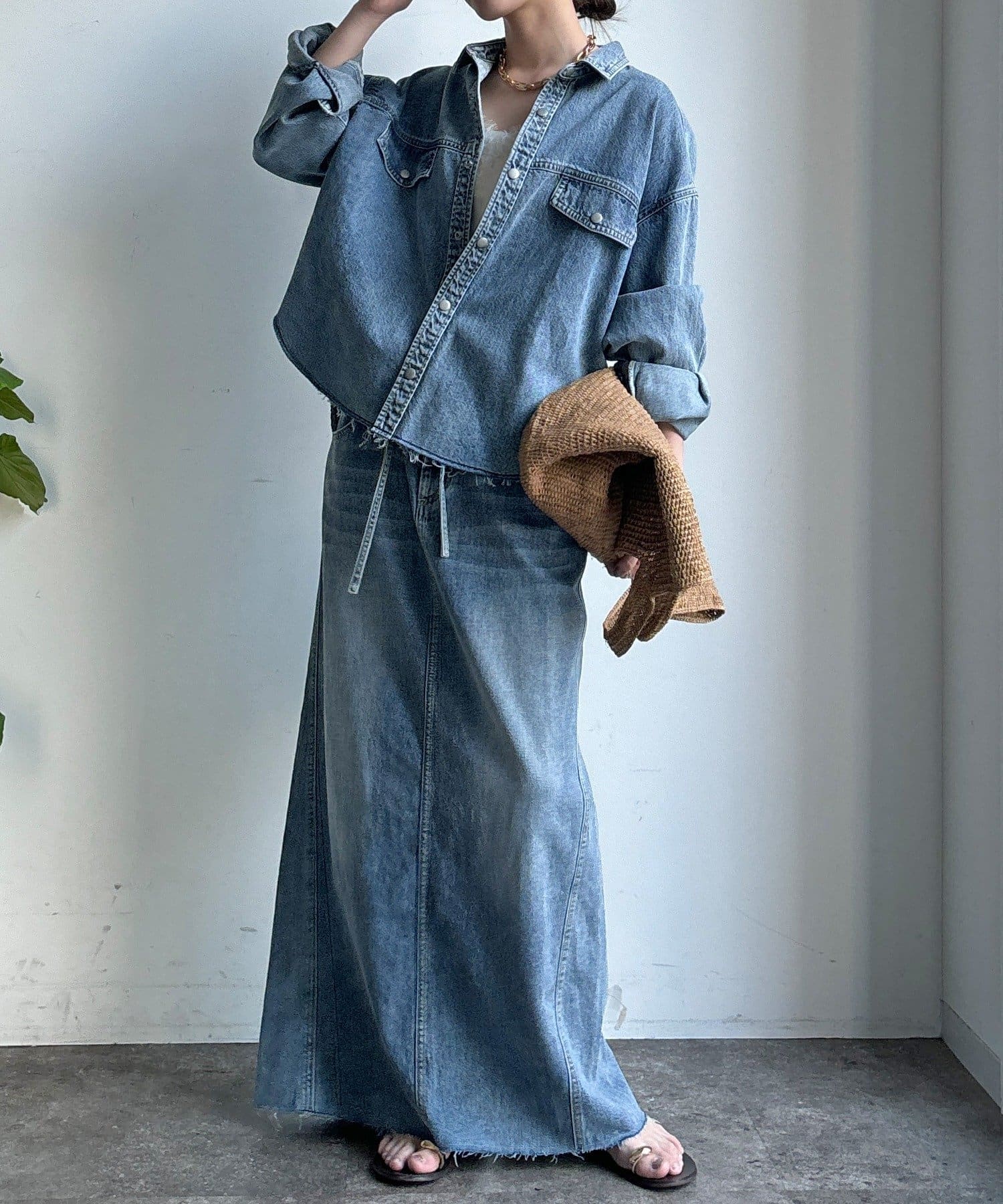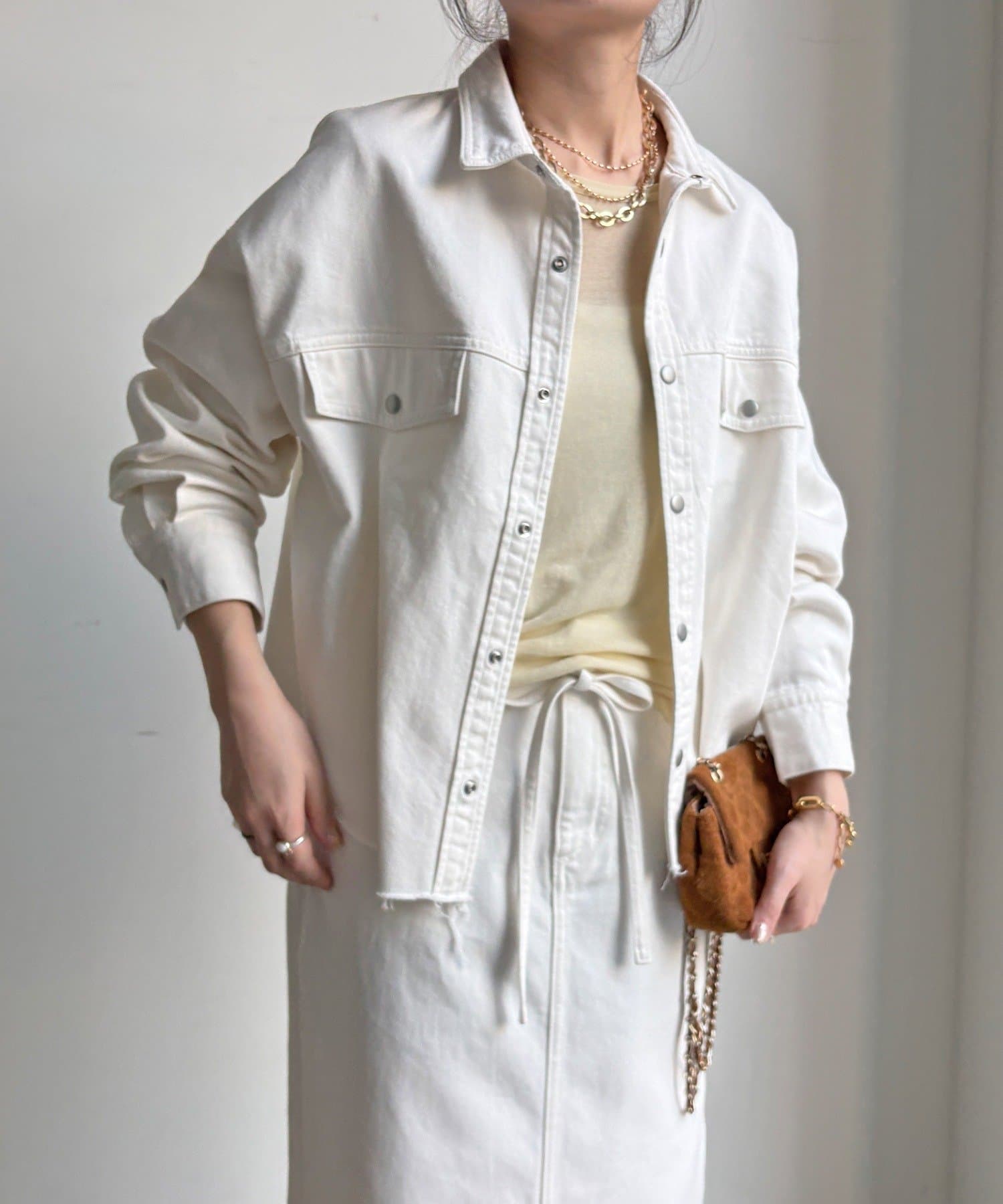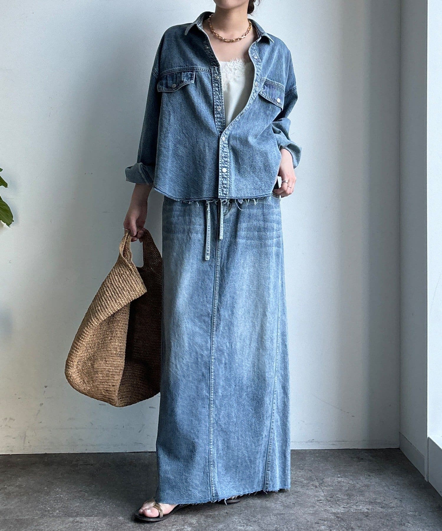 スカートとセットアップで着用可能!裾のカットオフが可愛いデニムシャツ