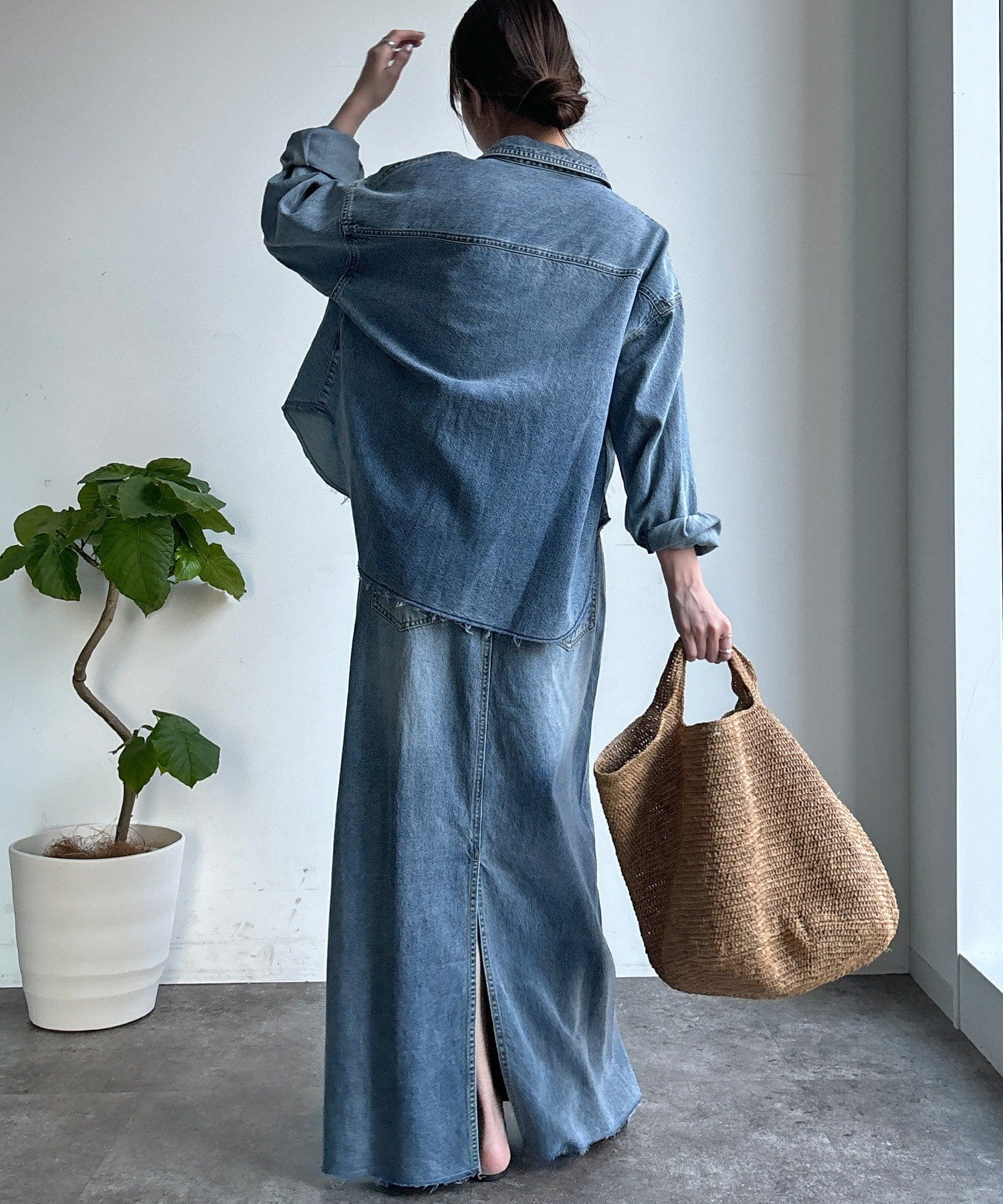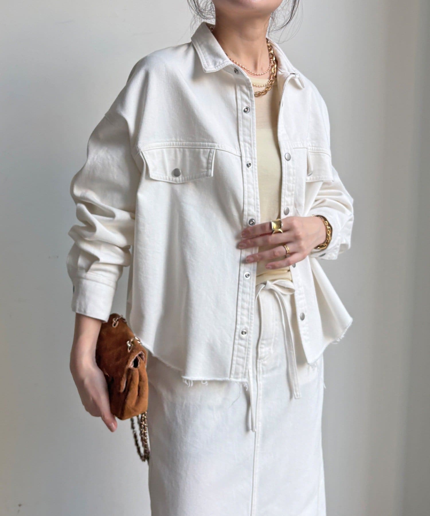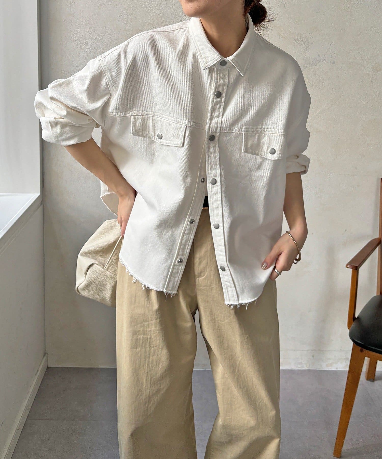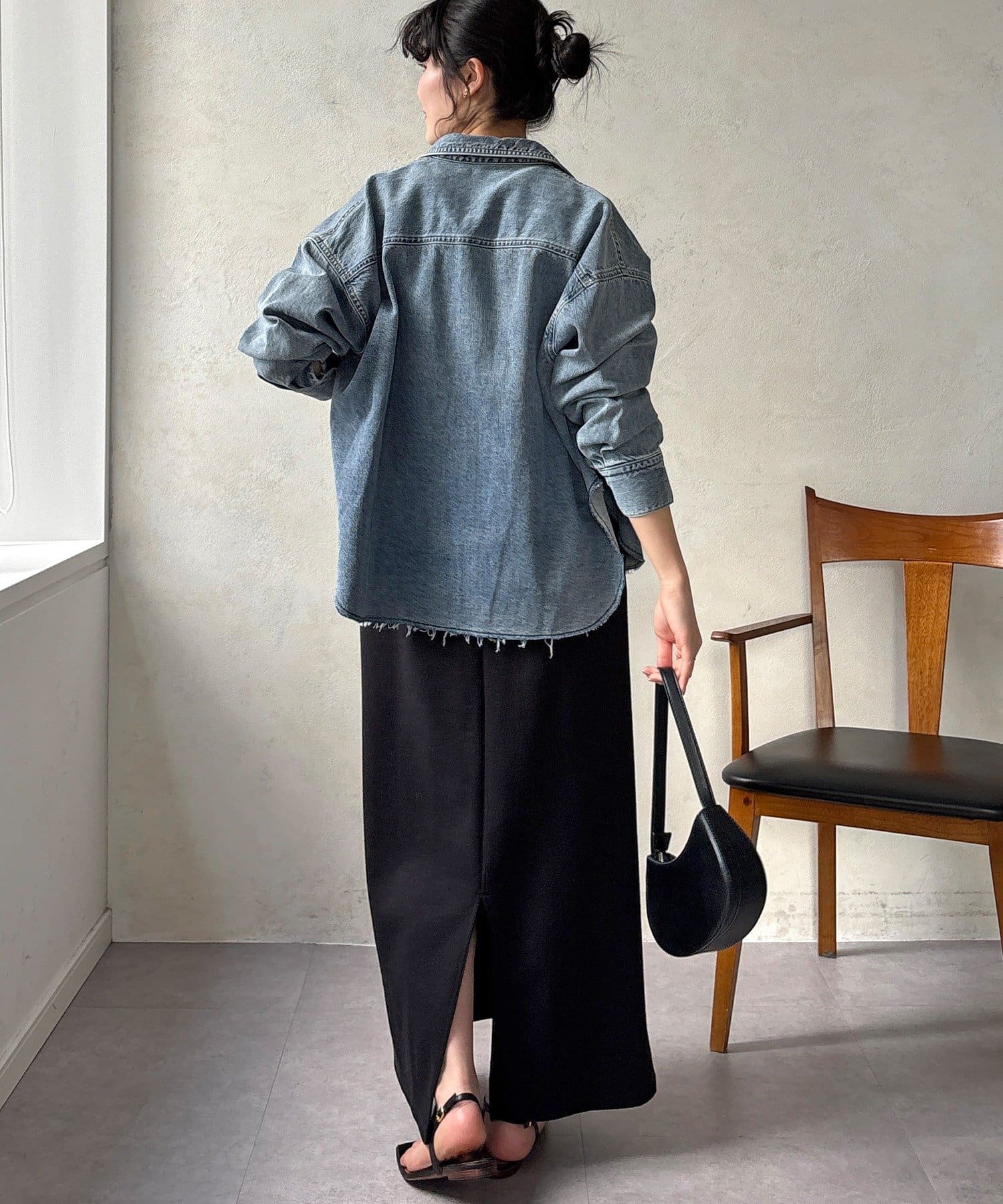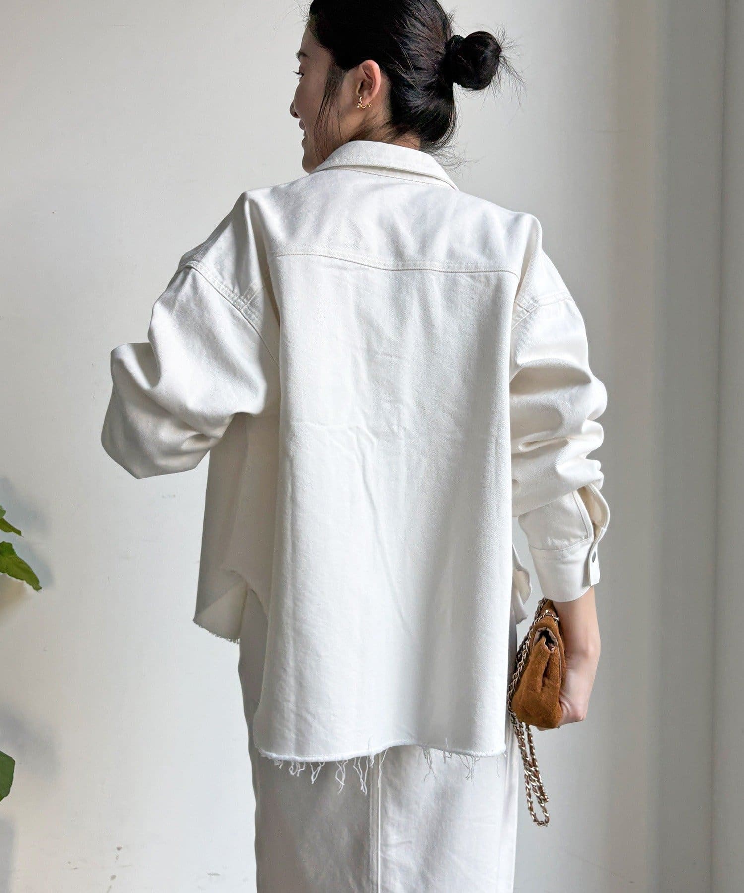 スカートとセットアップで着用可能!裾のカットオフが可愛いデニムシャツ