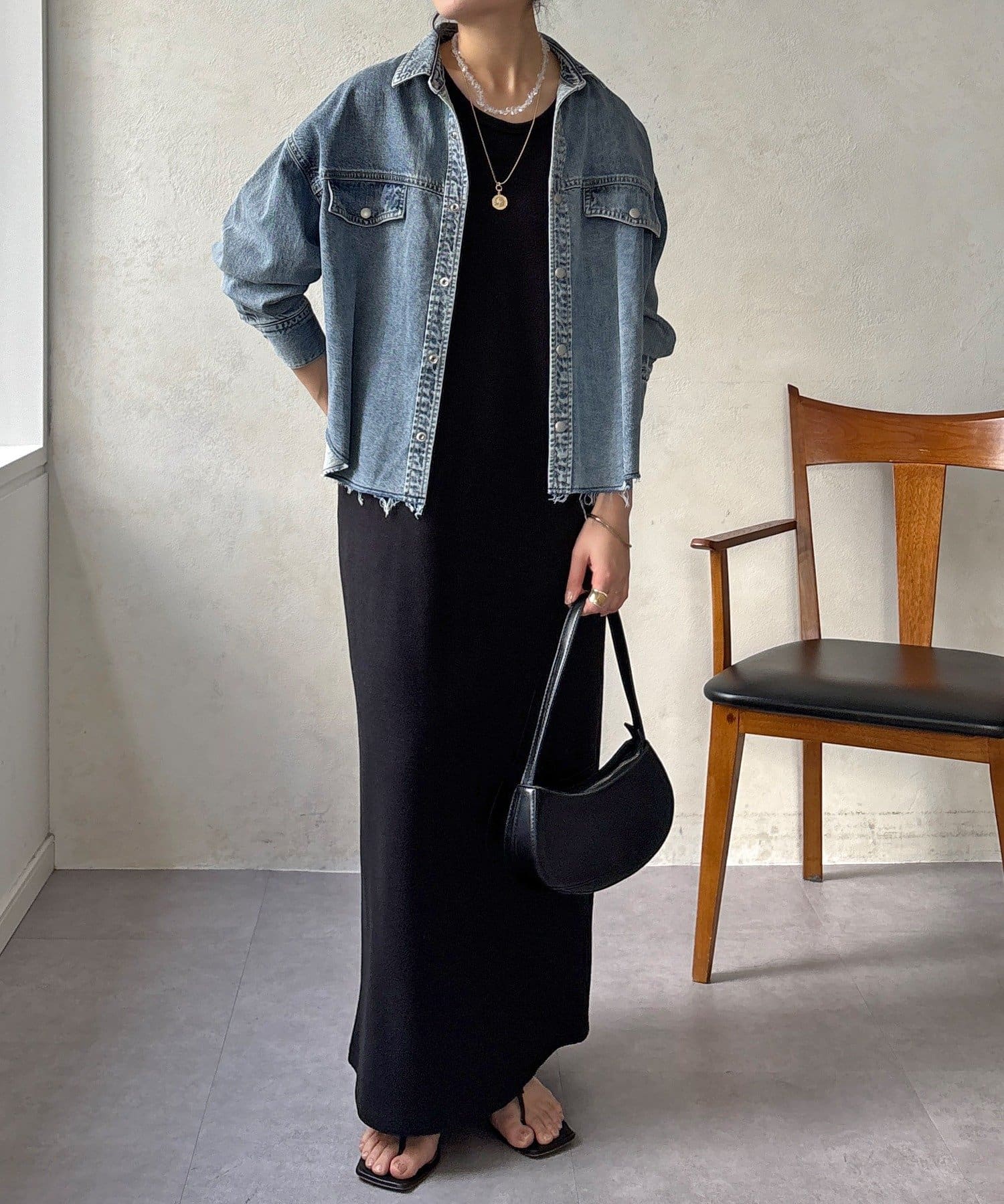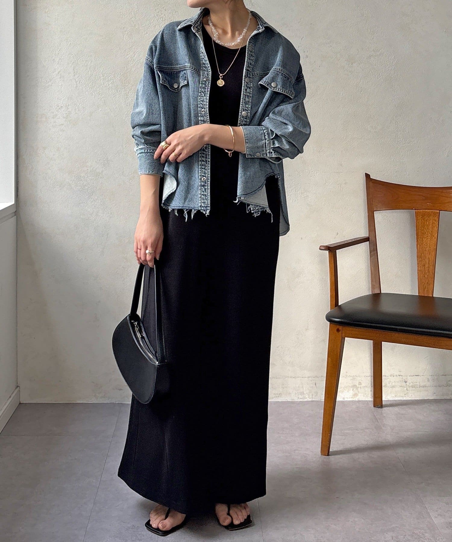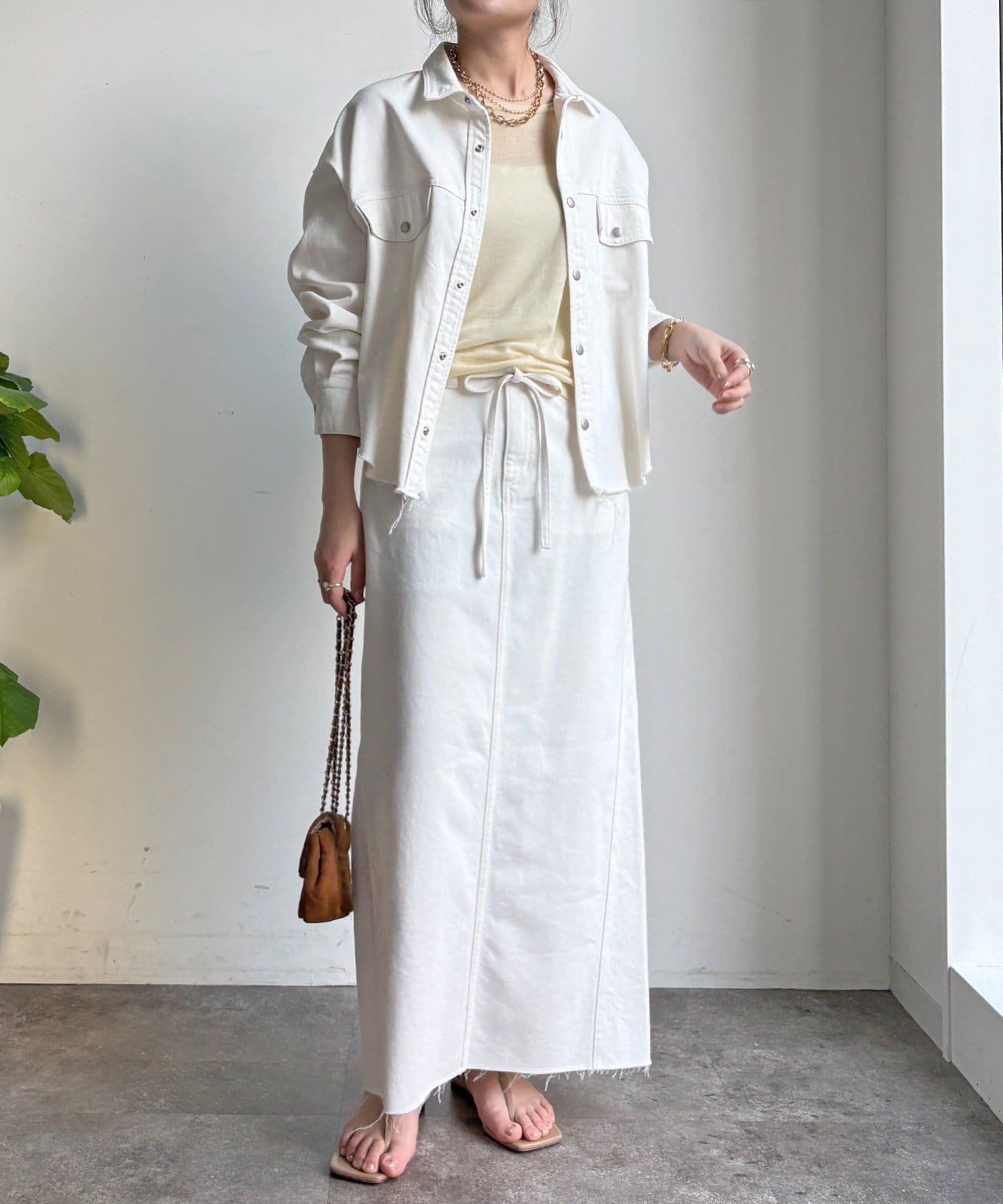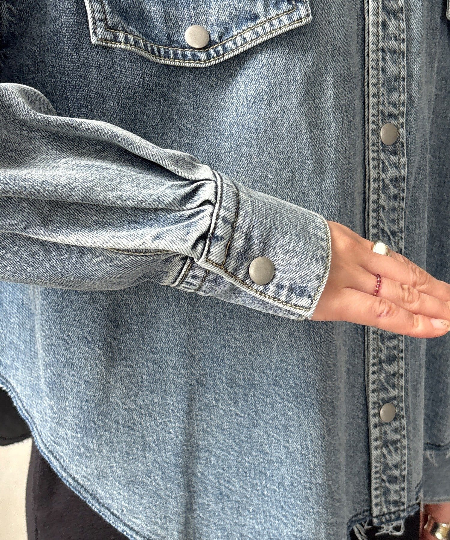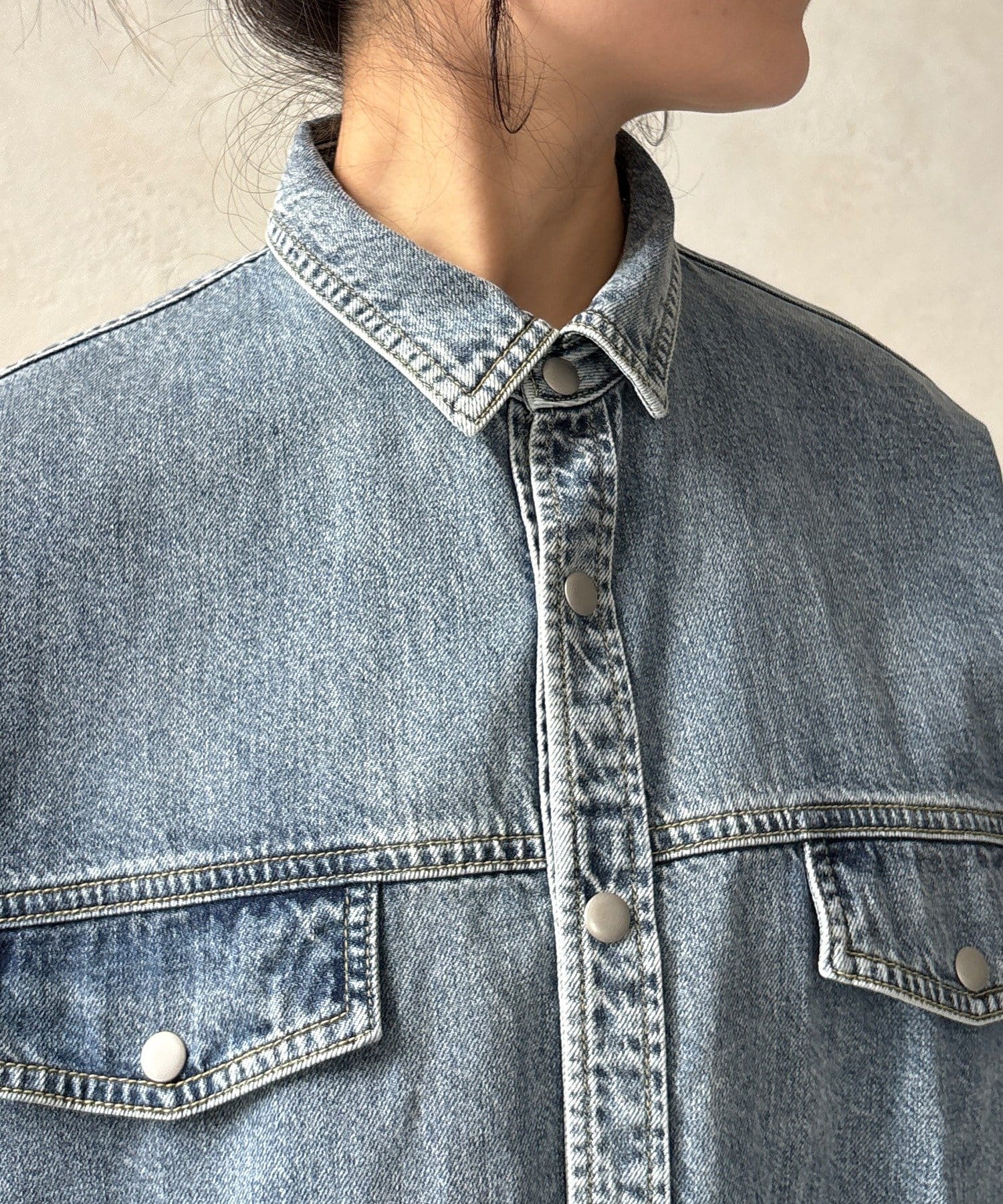 スカートとセットアップで着用可能!裾のカットオフが可愛いデニムシャツ