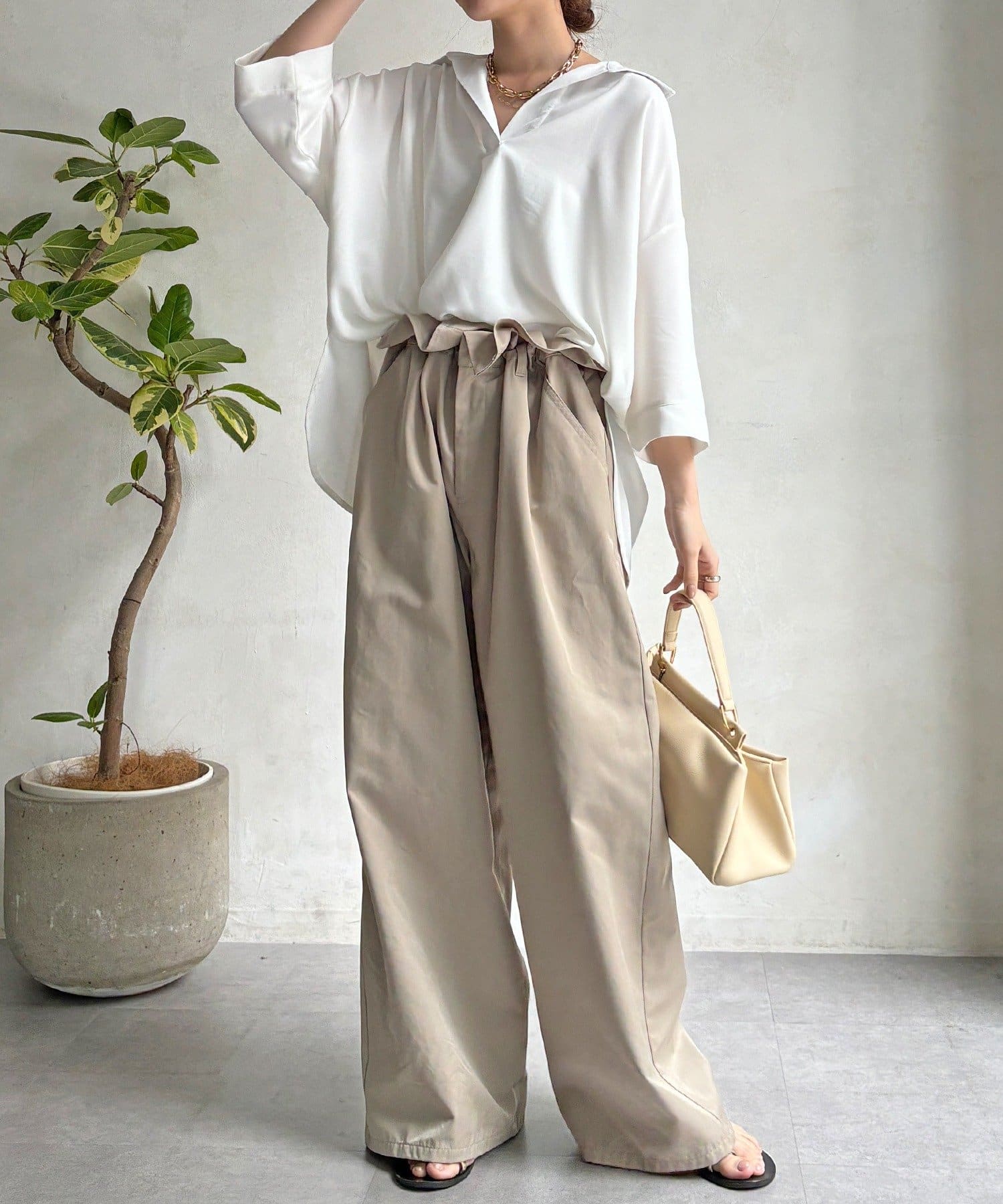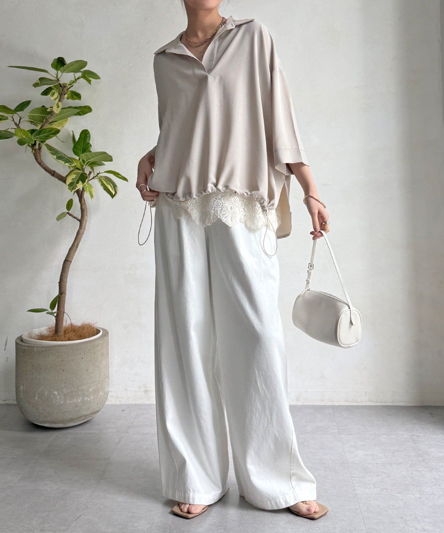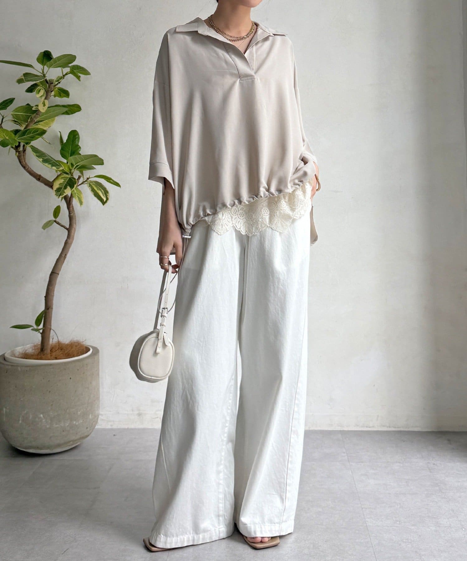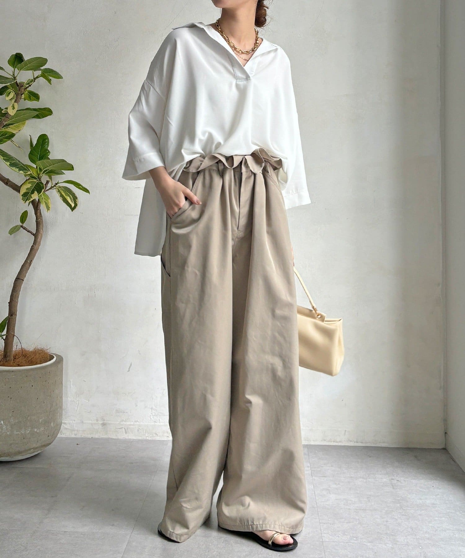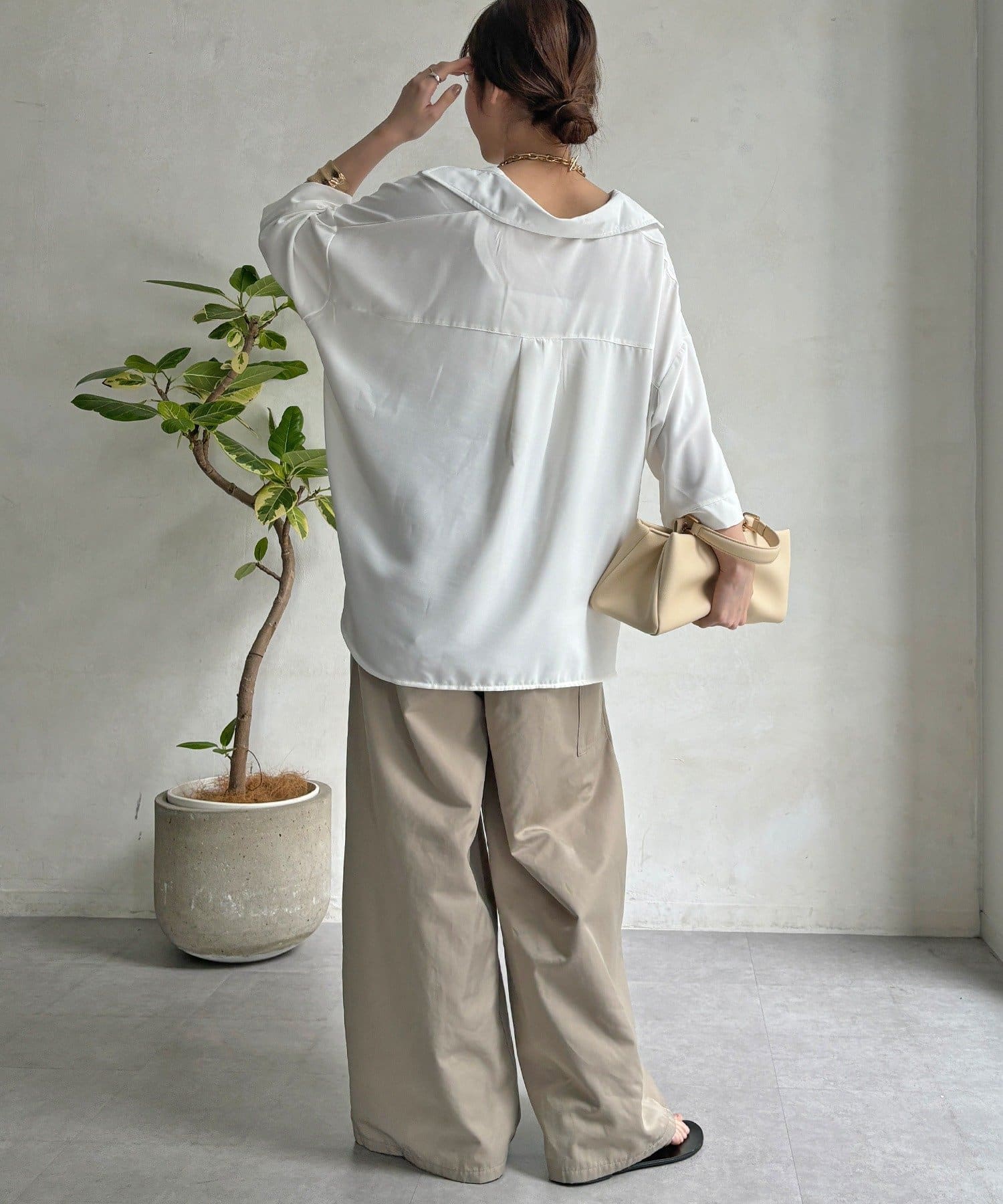 スキッパー襟がお顔周りに程よい抜け感をプラス。