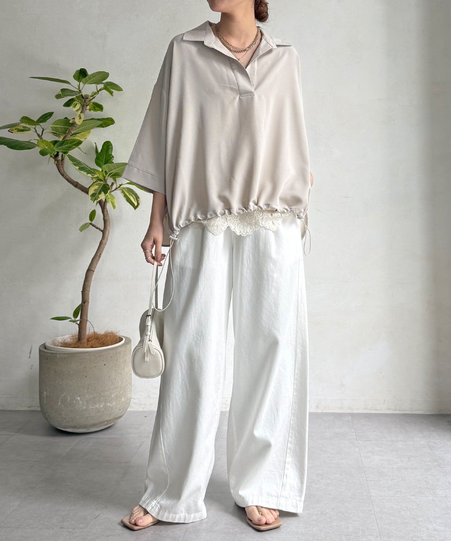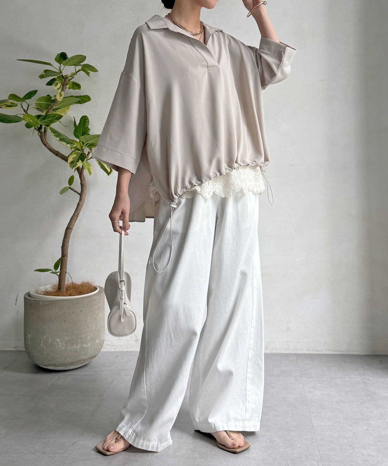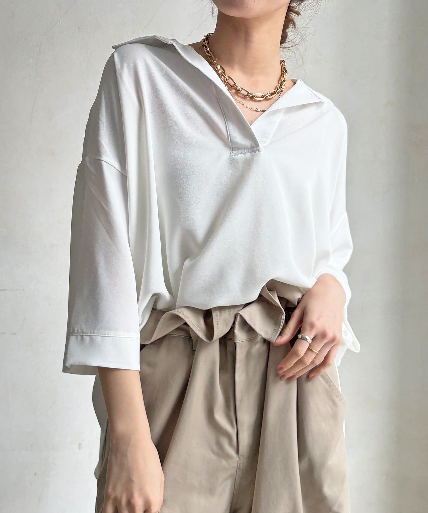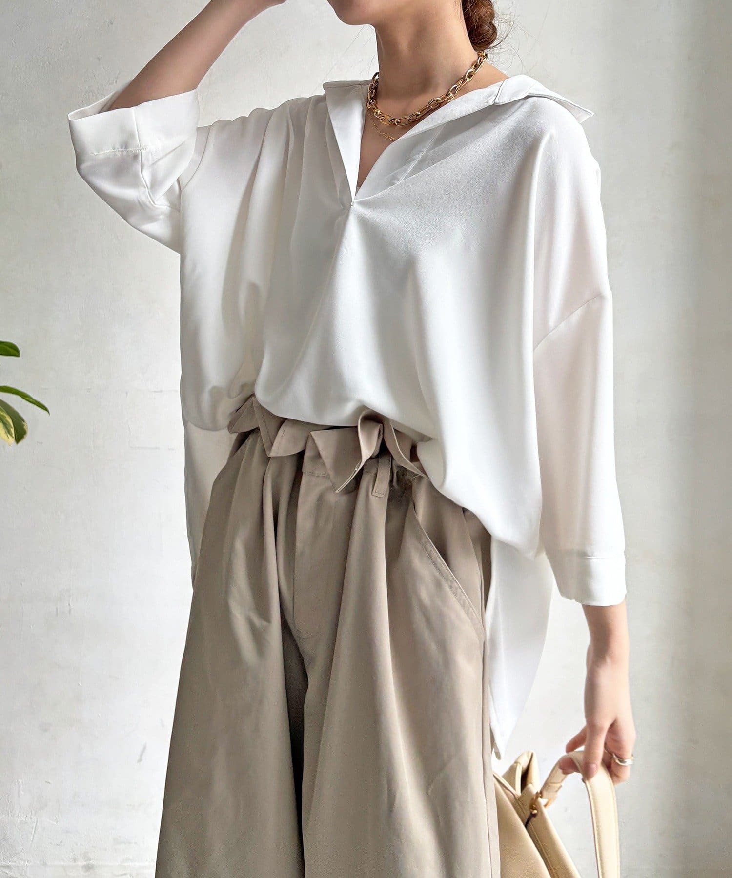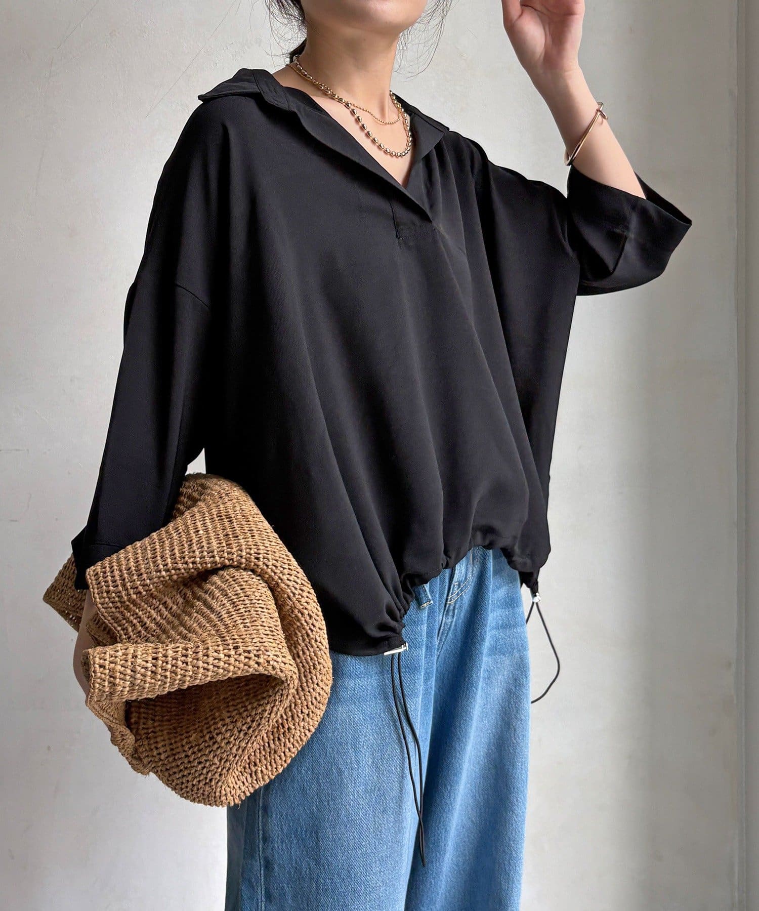 TOP > DOUDOU > レディース > トップス > スキッパー > 【WEB限定】6分袖ドロストスキッパーシャツ