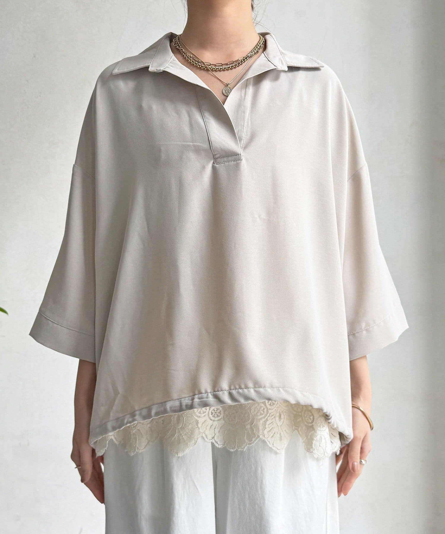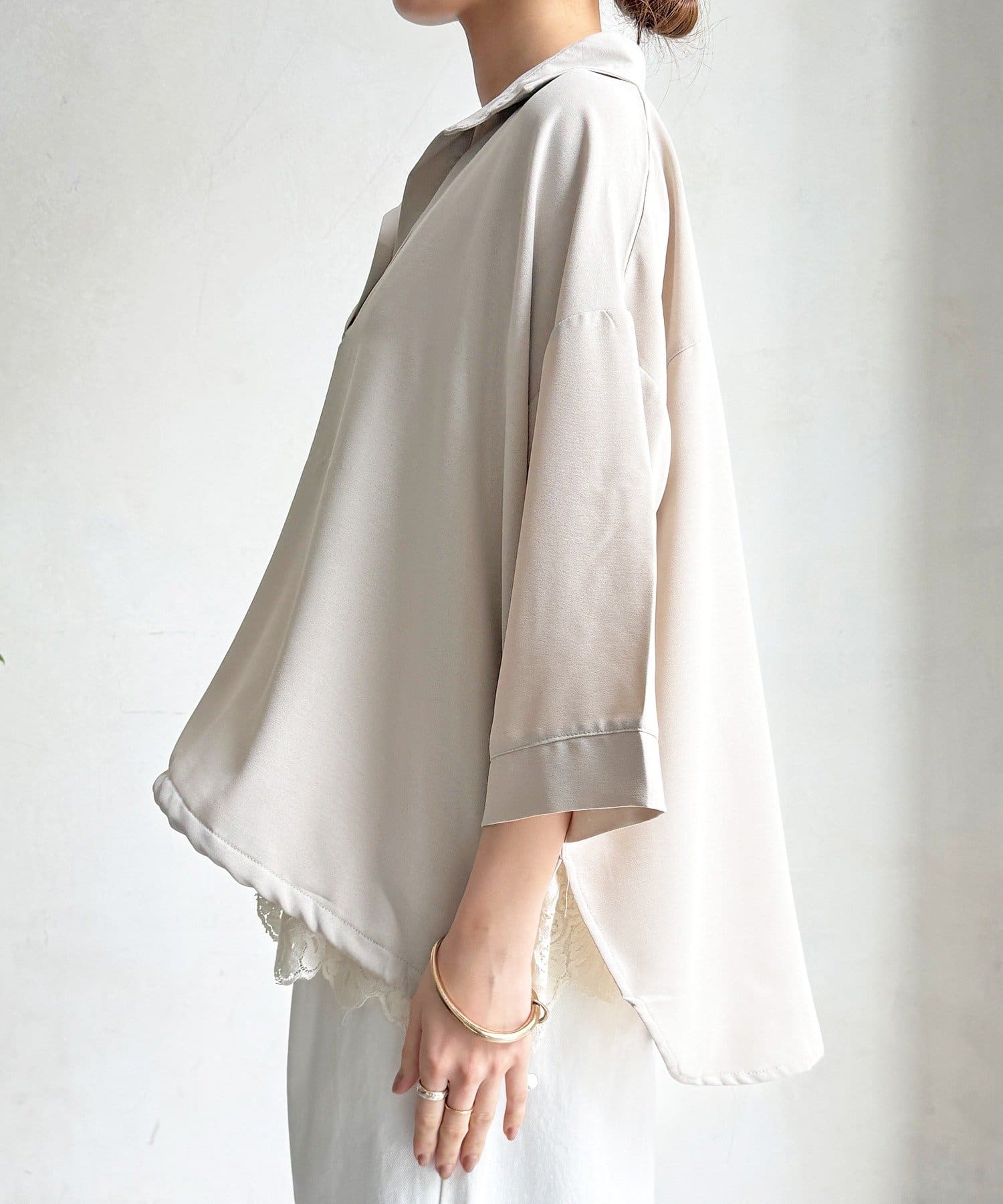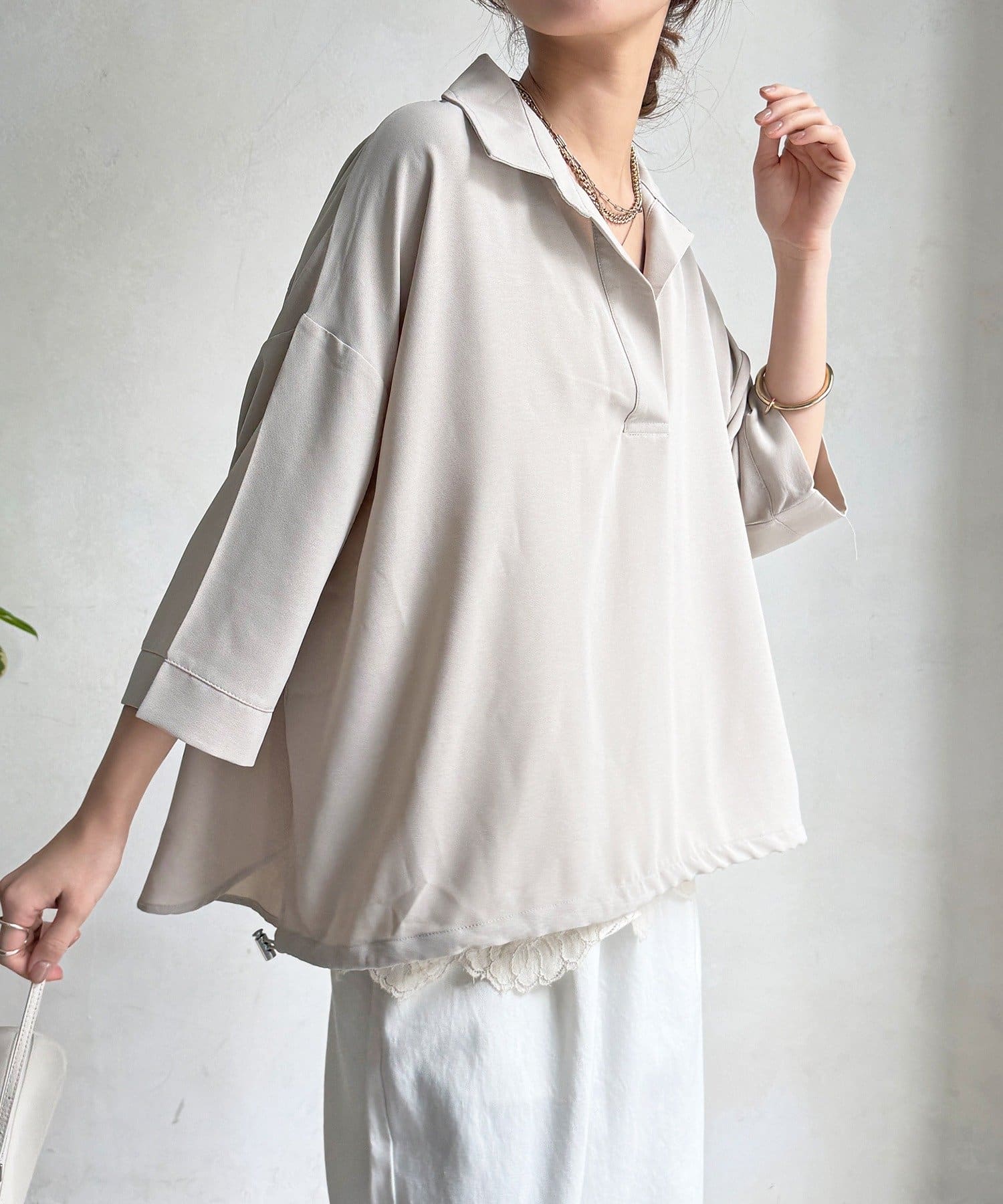 DOUDOU(ドゥドゥ) 【WEB限定】6分袖ドロストスキッパーシャツ