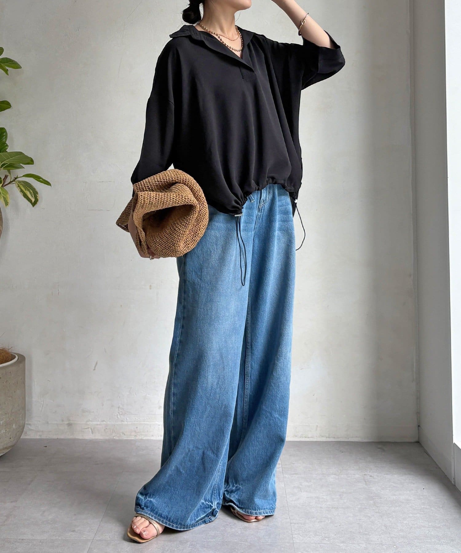 裾にはドロストが施されていて、絞るだけでスタイル変更が可能なので