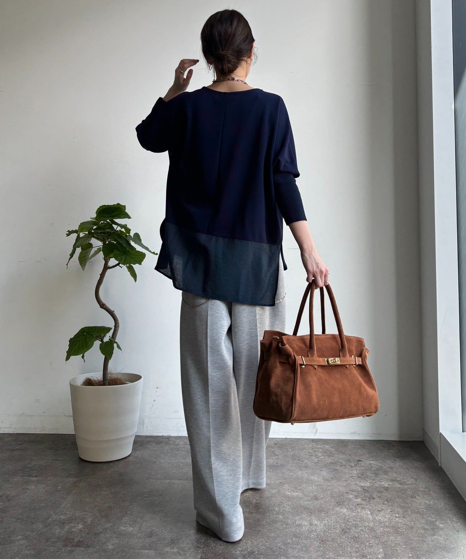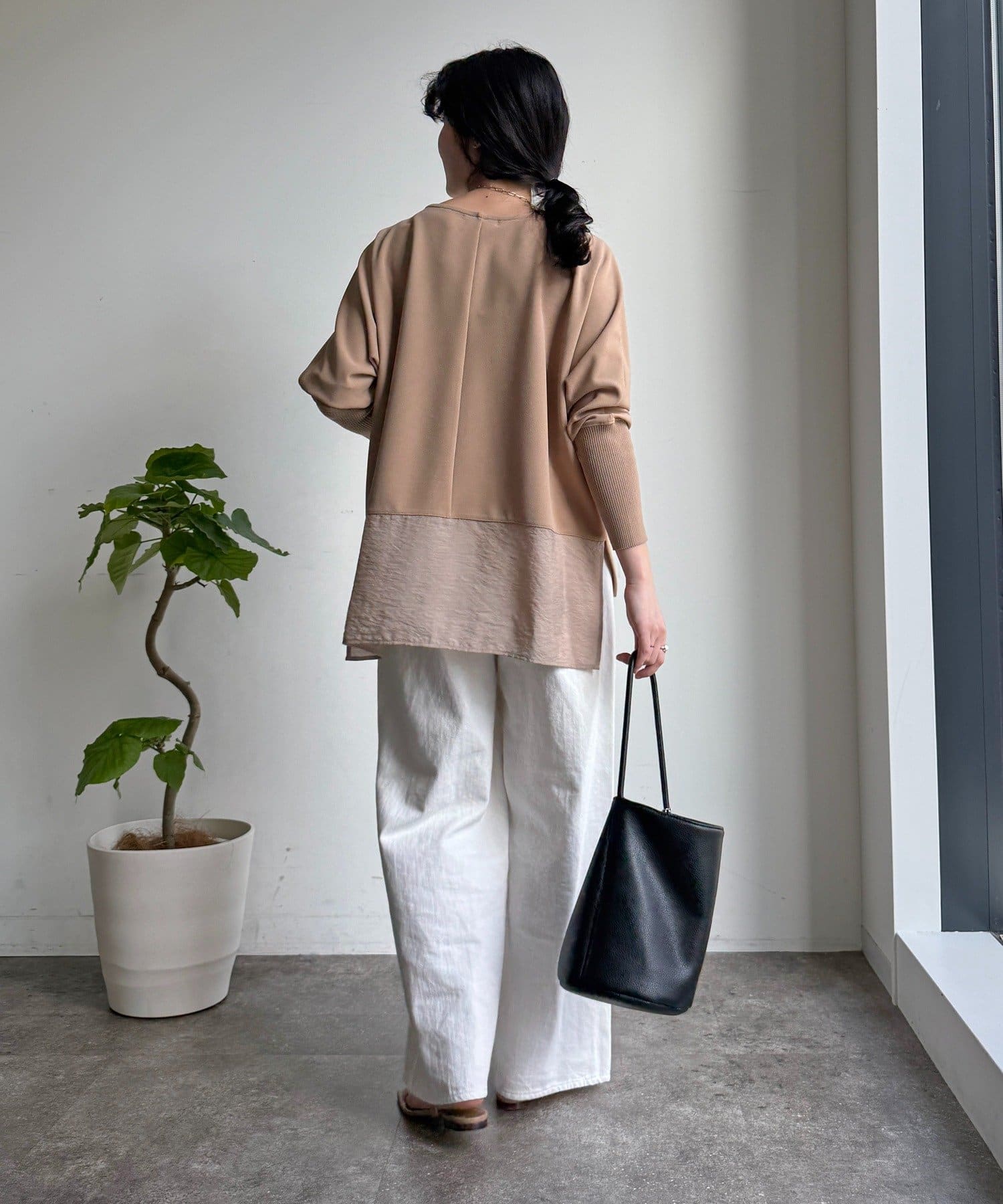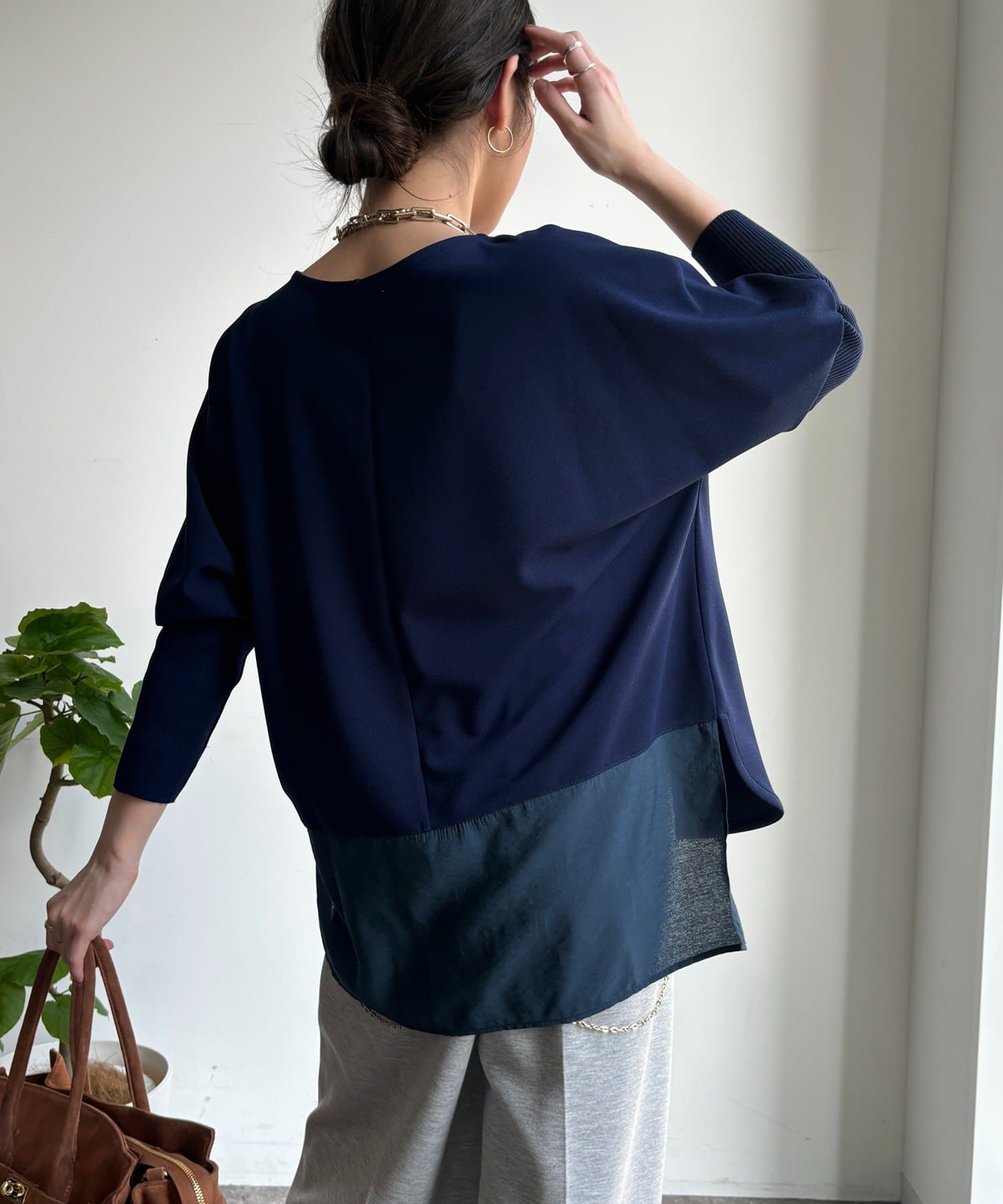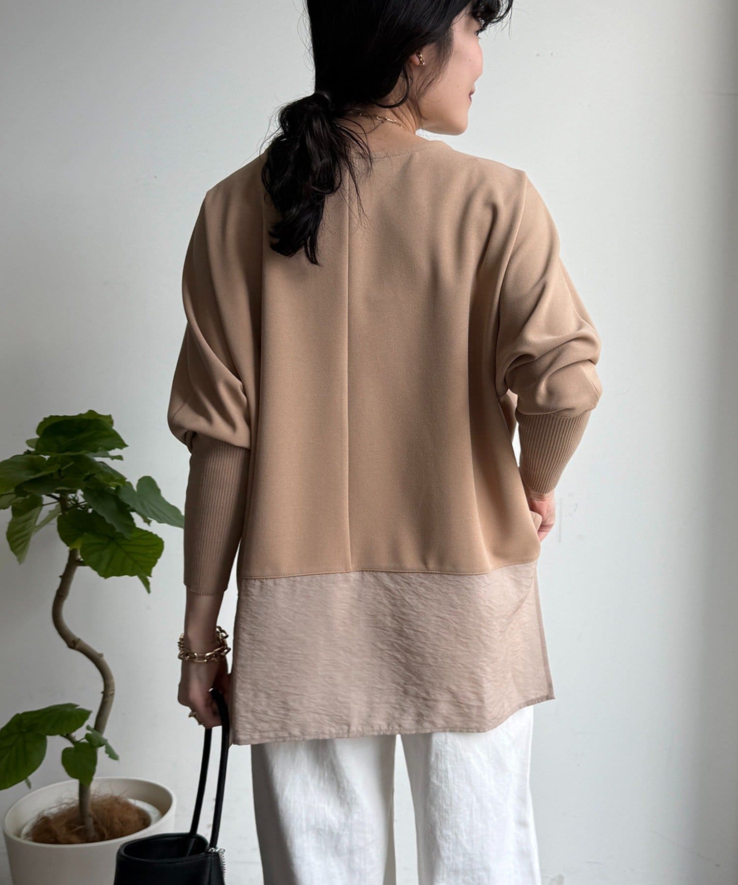 ジョーゼット素材とバック裾の切り替えデザインをプラスし、きれいめな印象をプラス。