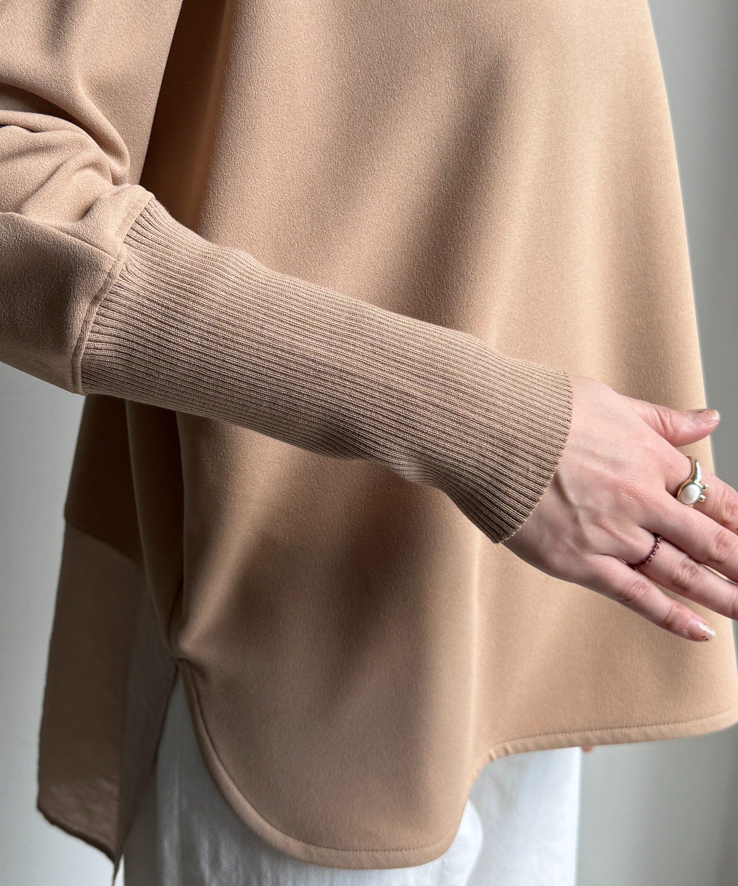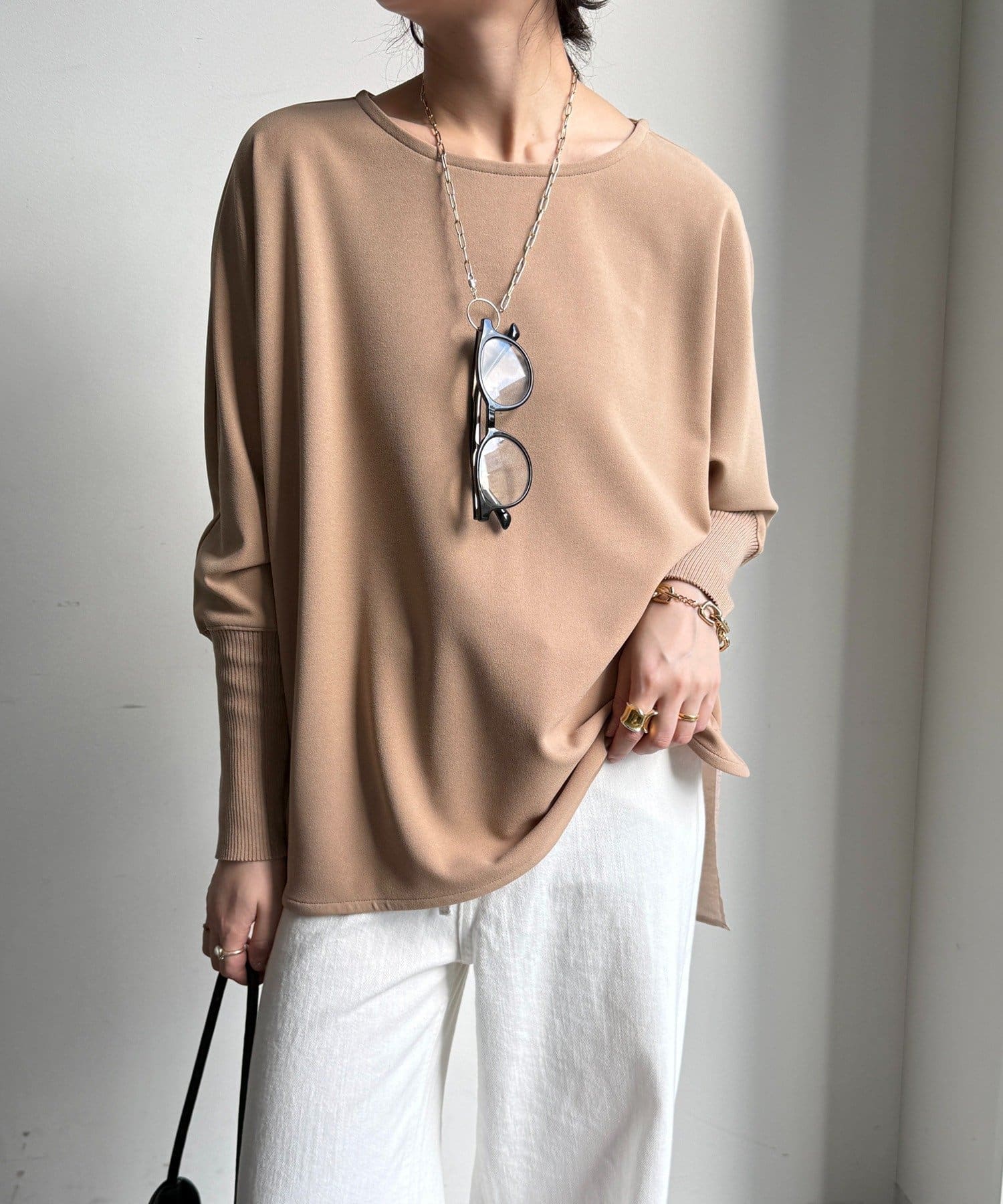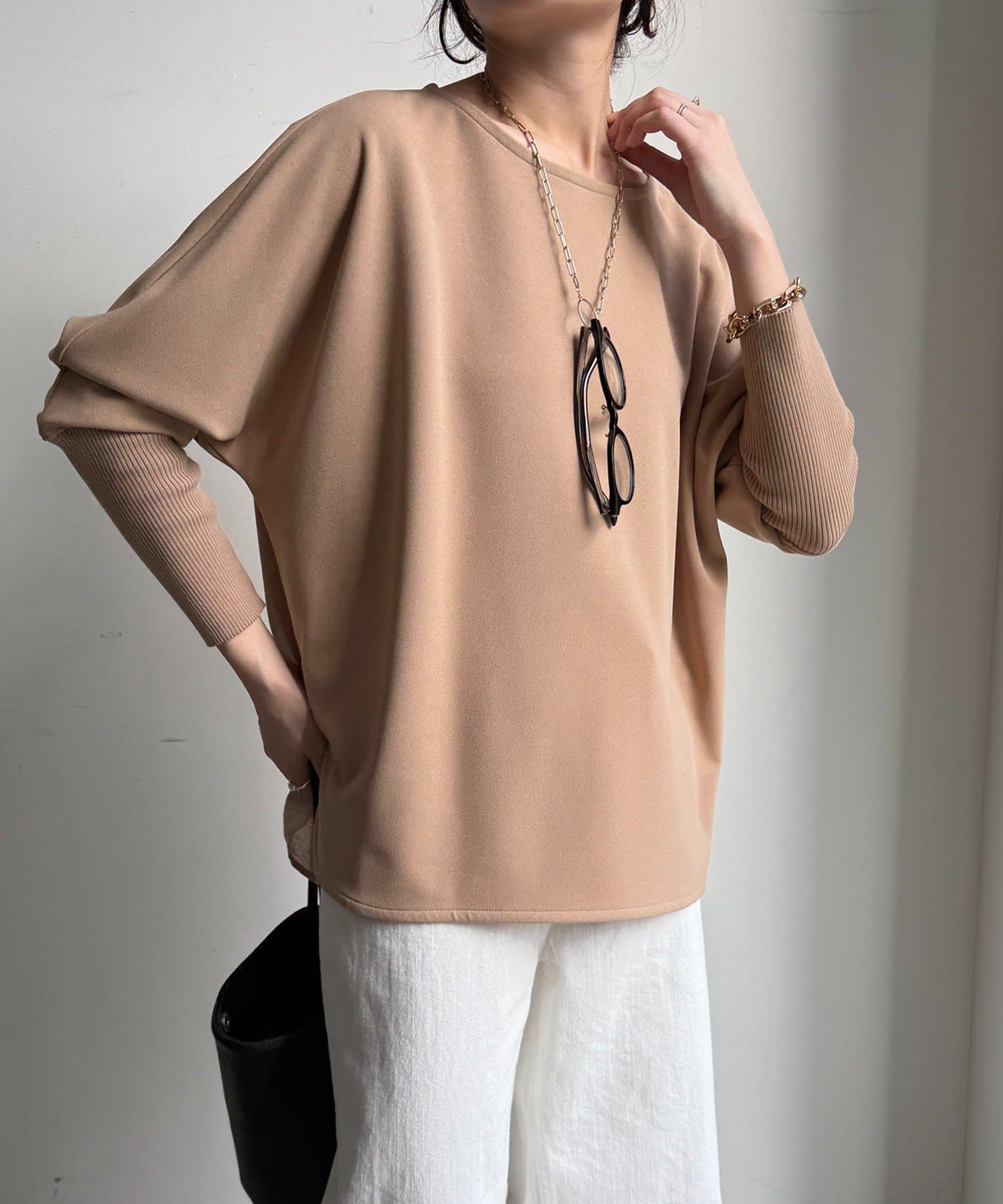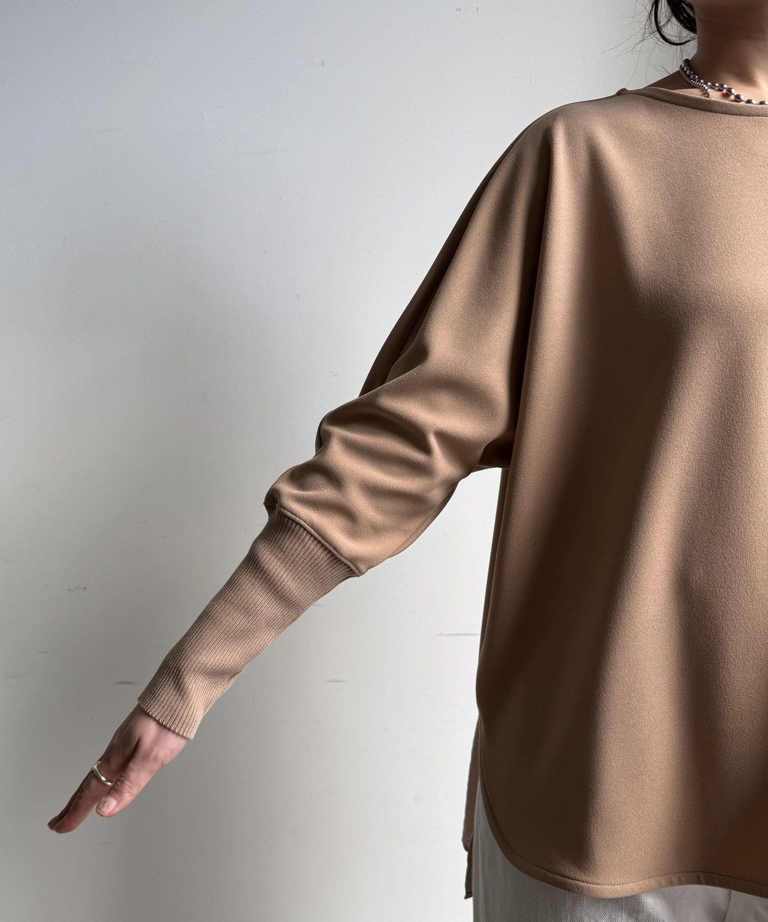 お袖はドルマンスリーブに仕上げ、リラクシーな着心地に。