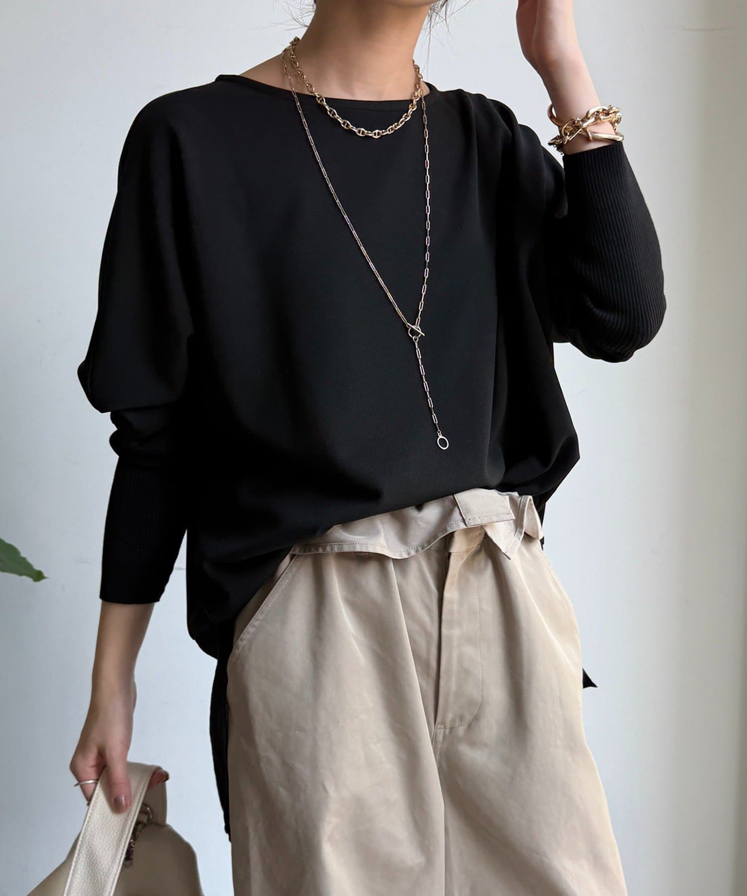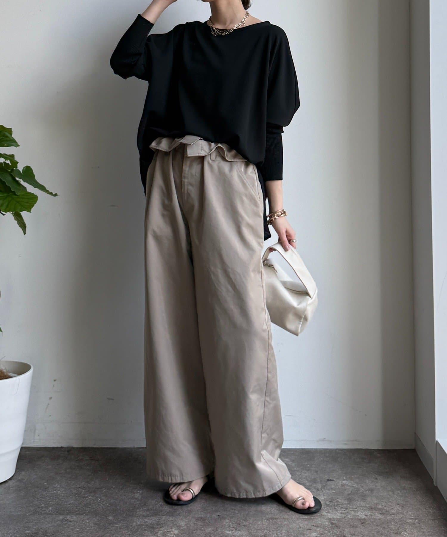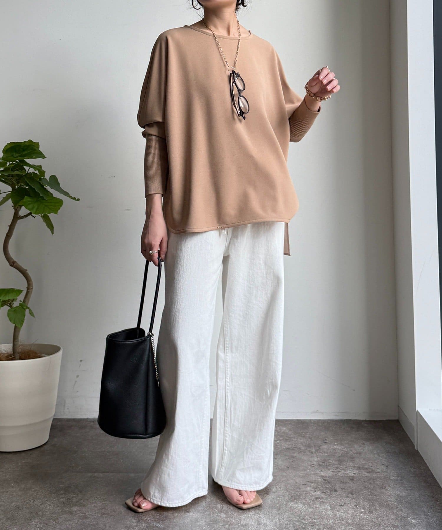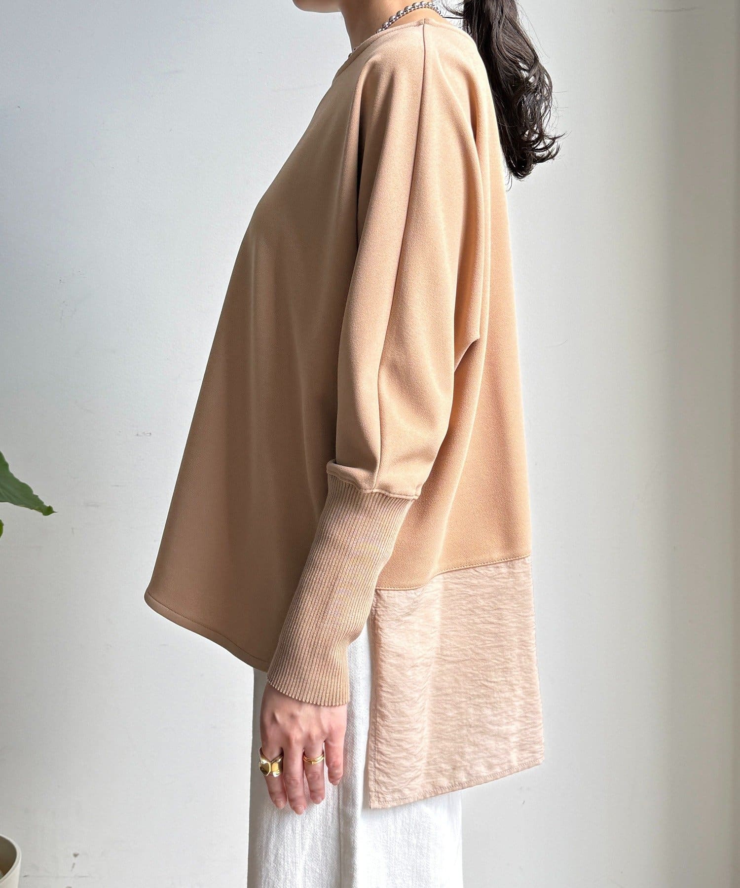 お袖はドルマンスリーブに仕上げ、リラクシーな着心地に。