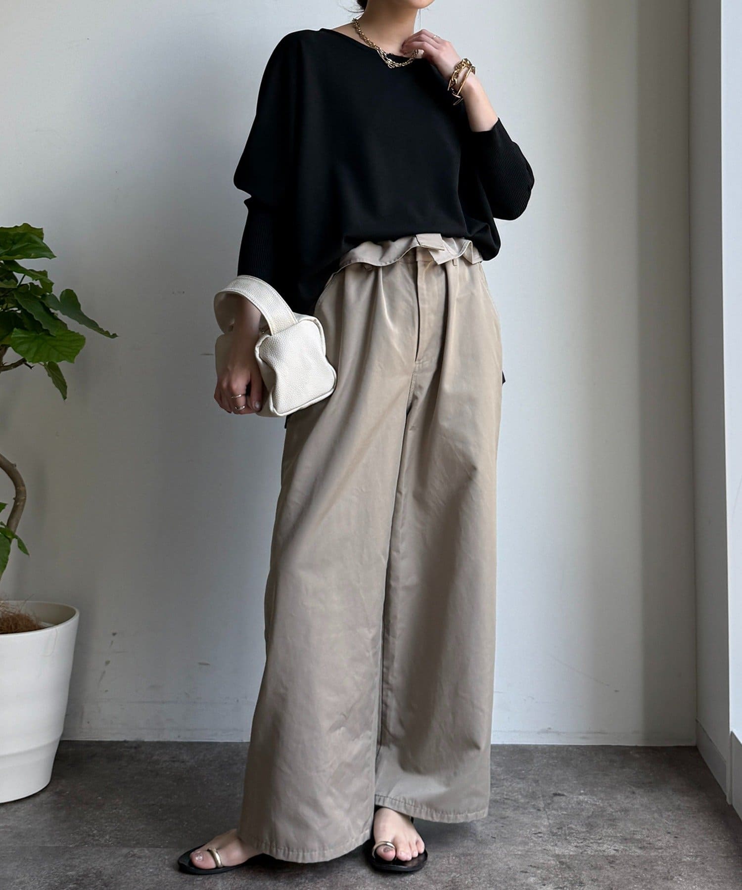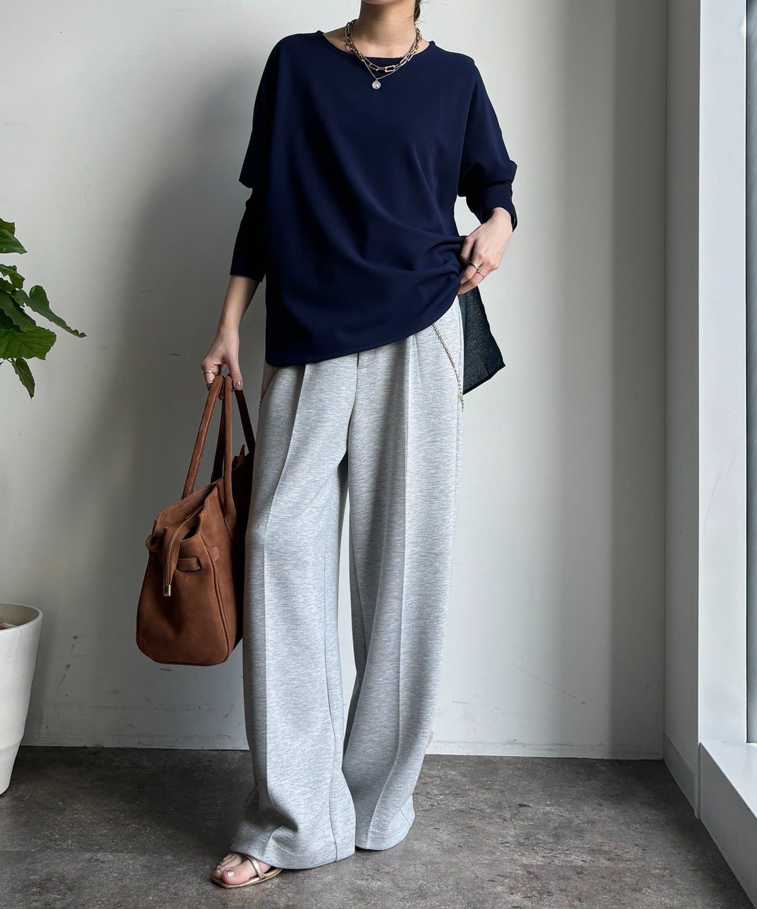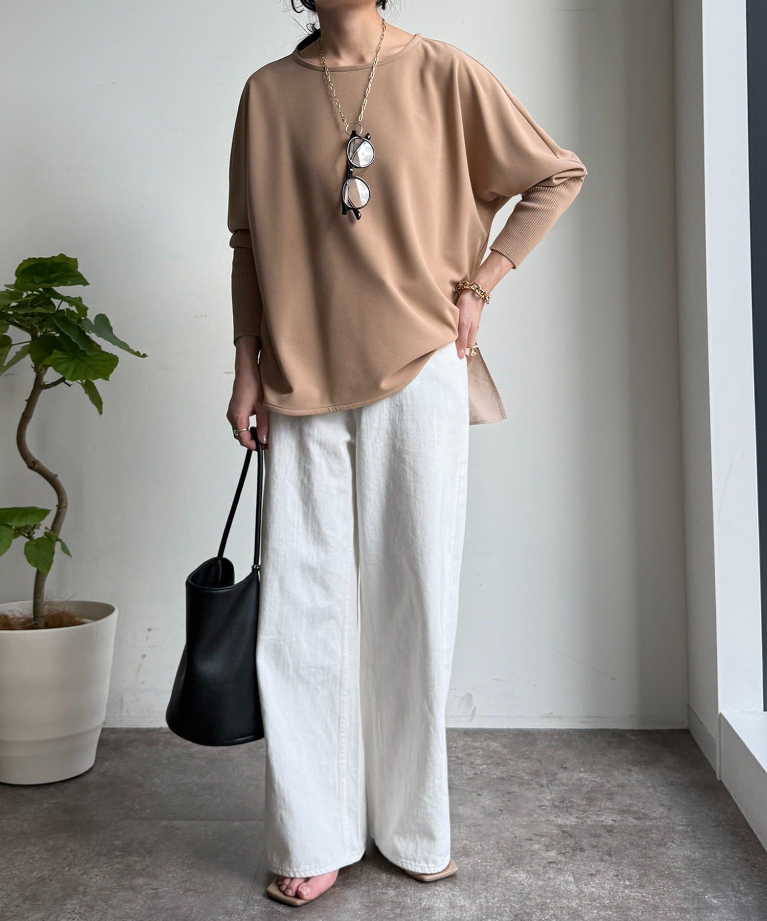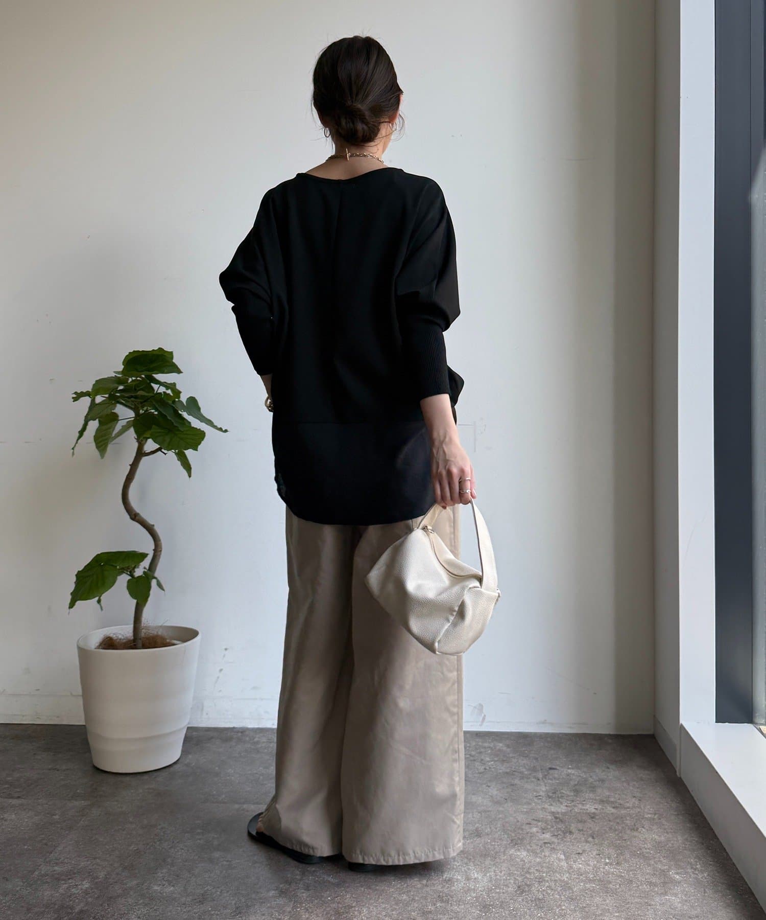 お袖はドルマンスリーブに仕上げ、リラクシーな着心地に。