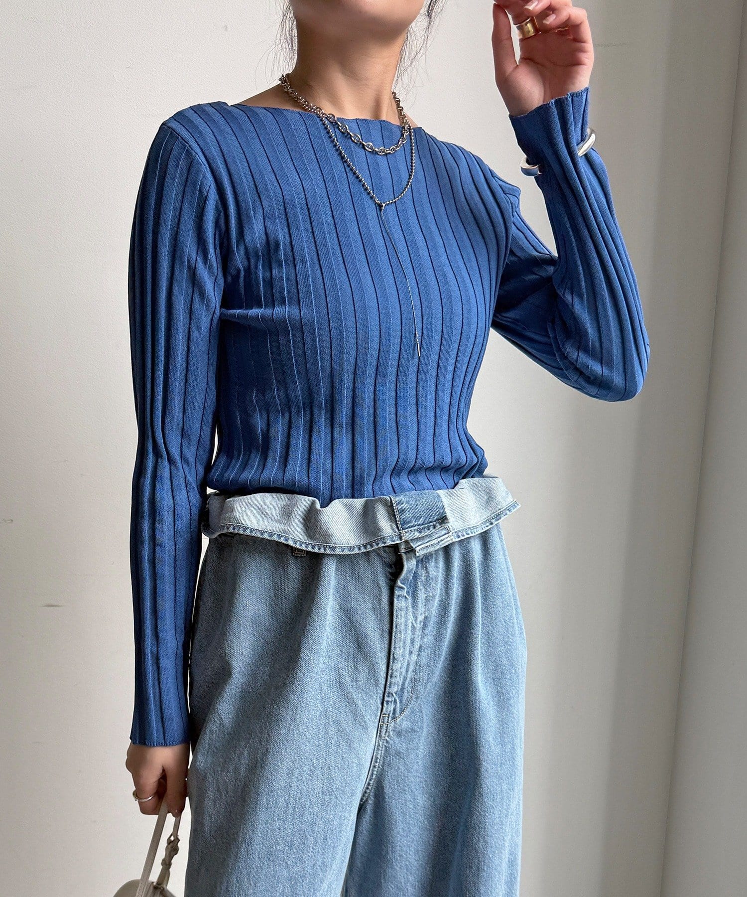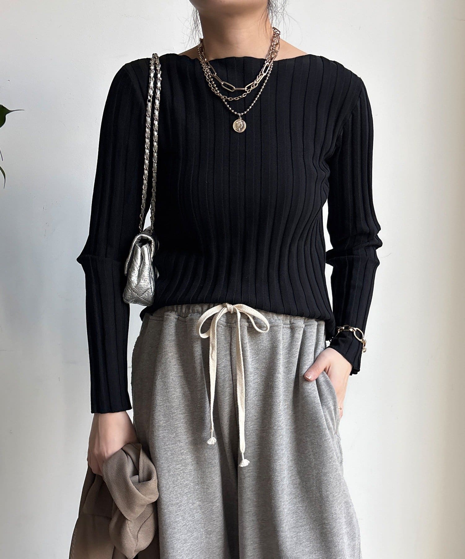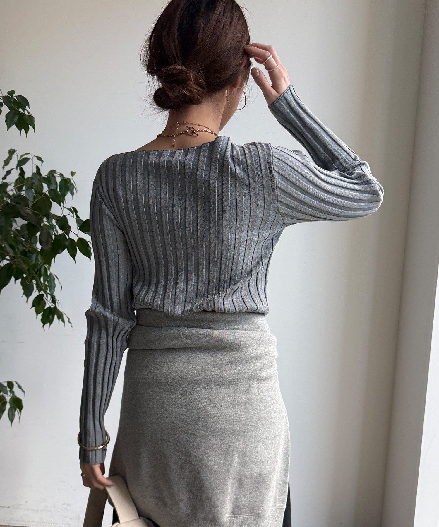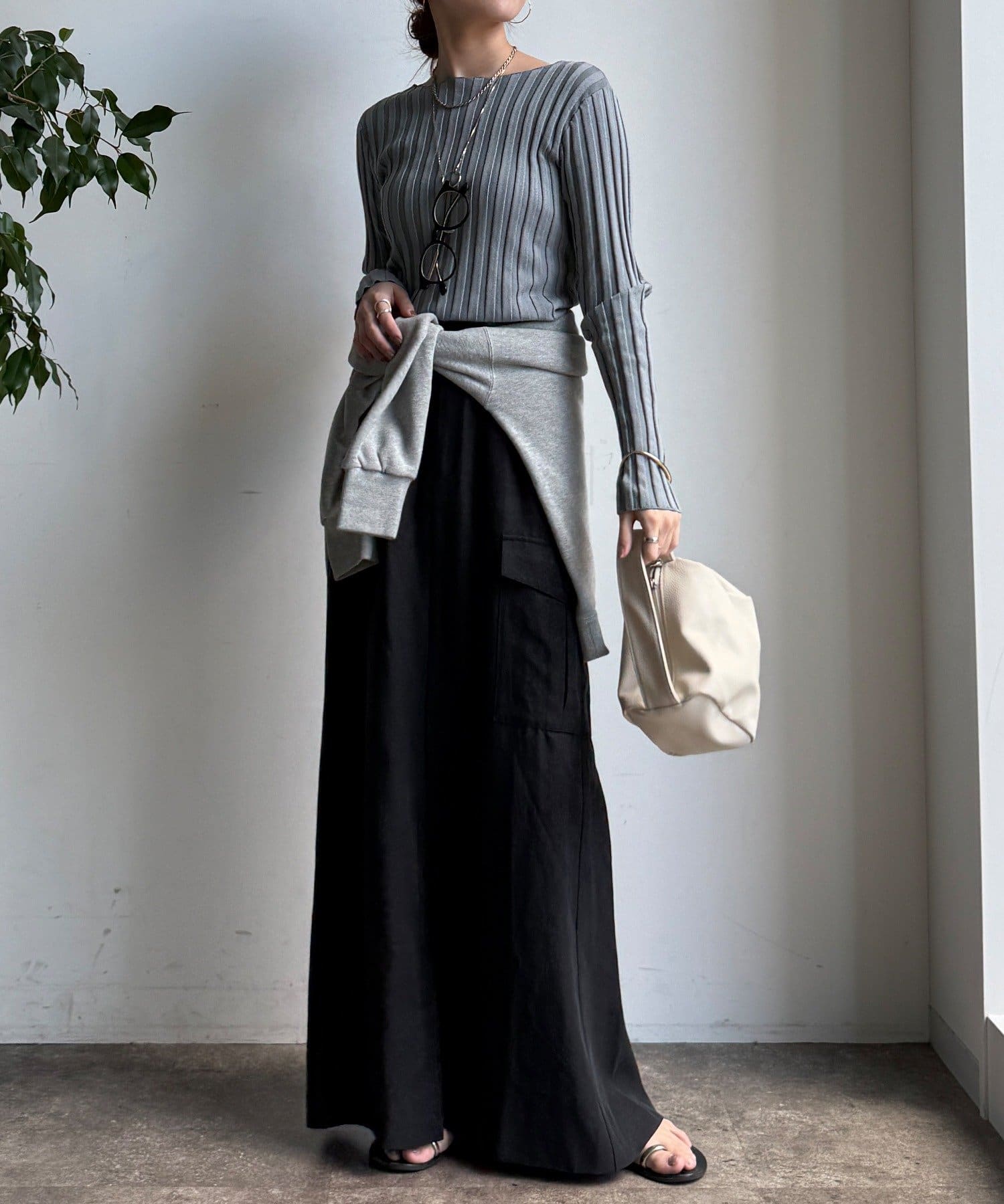 太めのリブが縦ラインを強調し、スタイルアップにも!