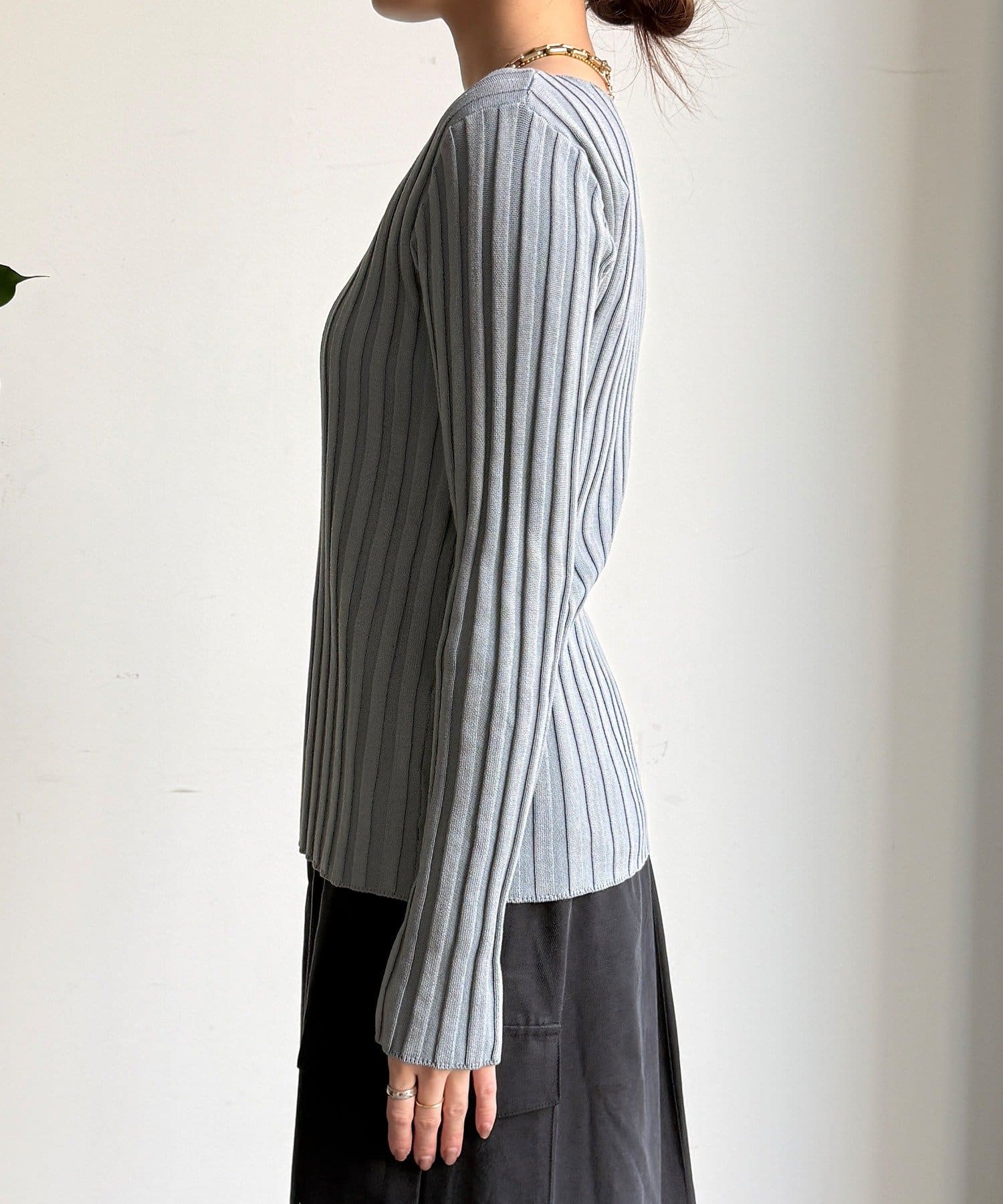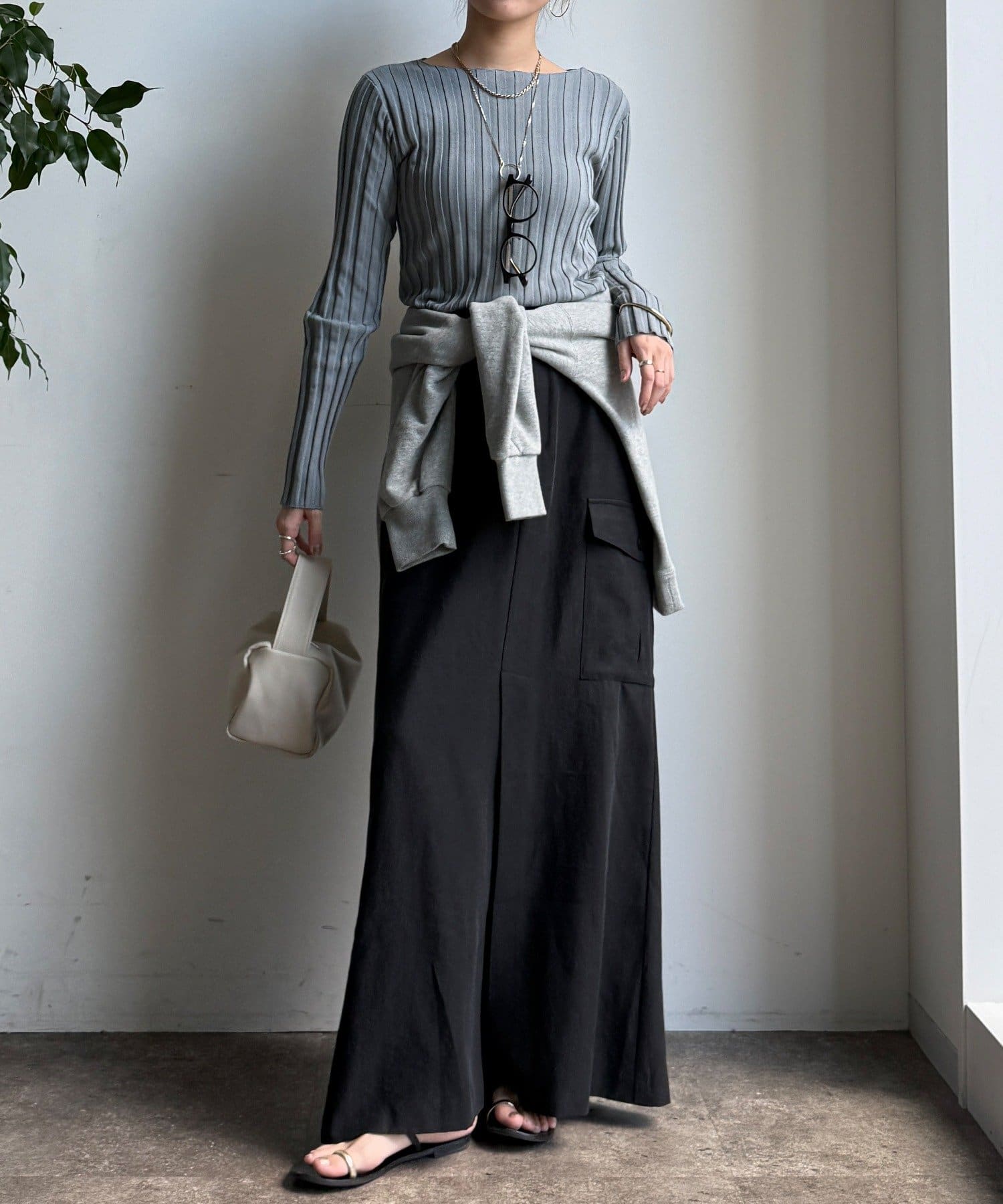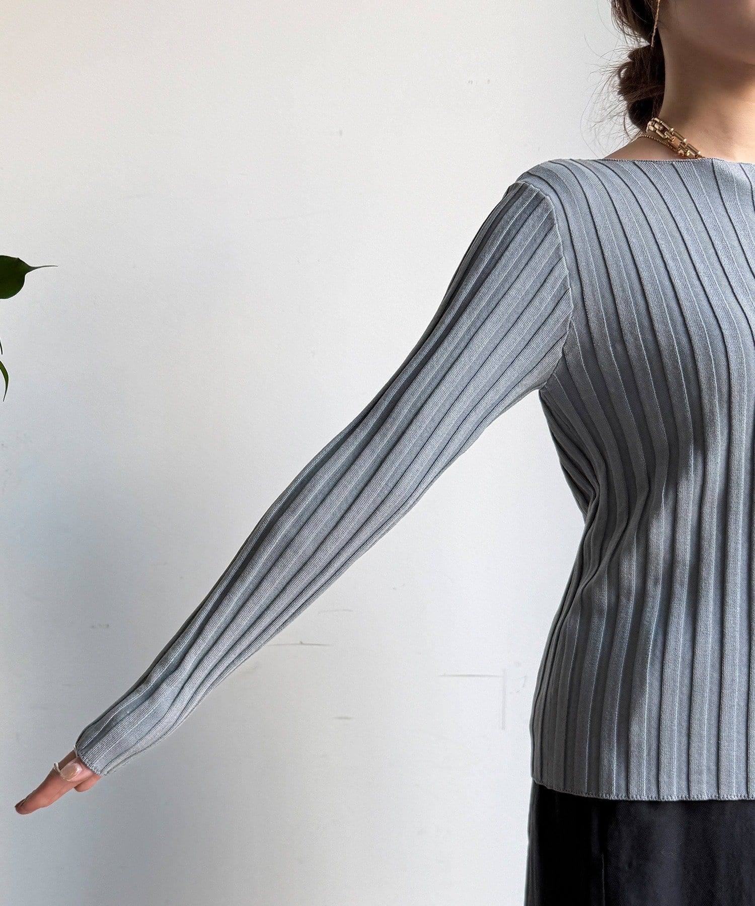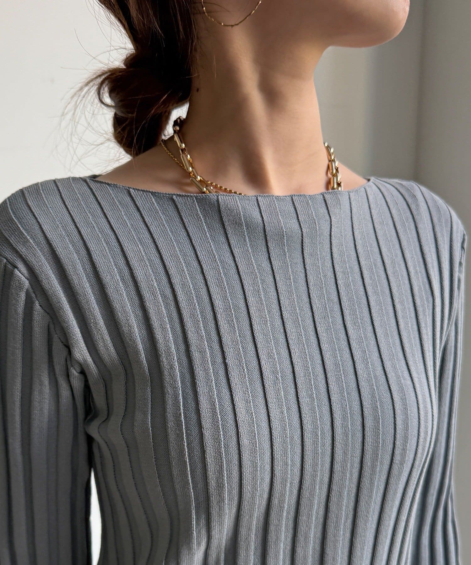 太めのリブが縦ラインを強調し、スタイルアップにも!