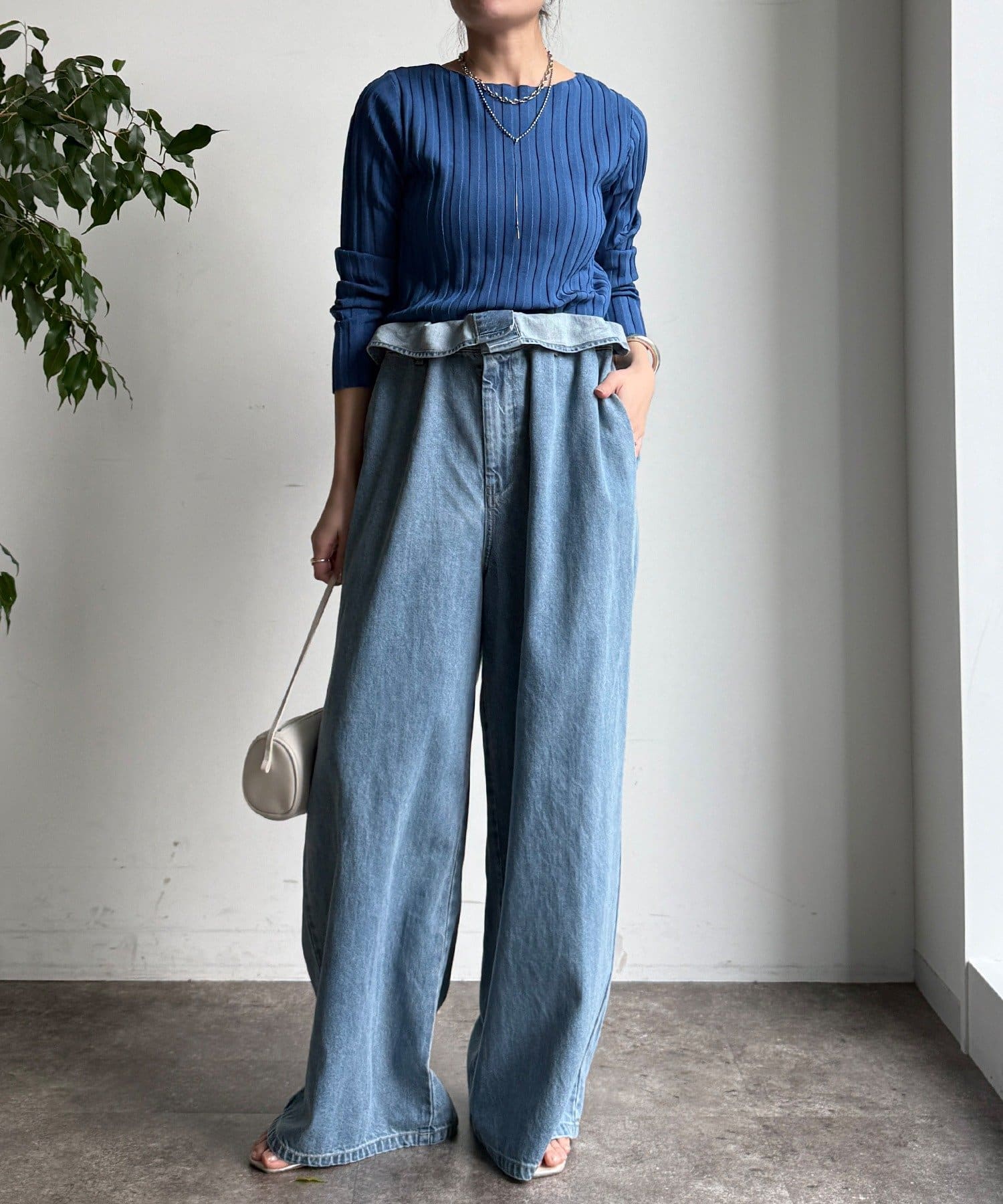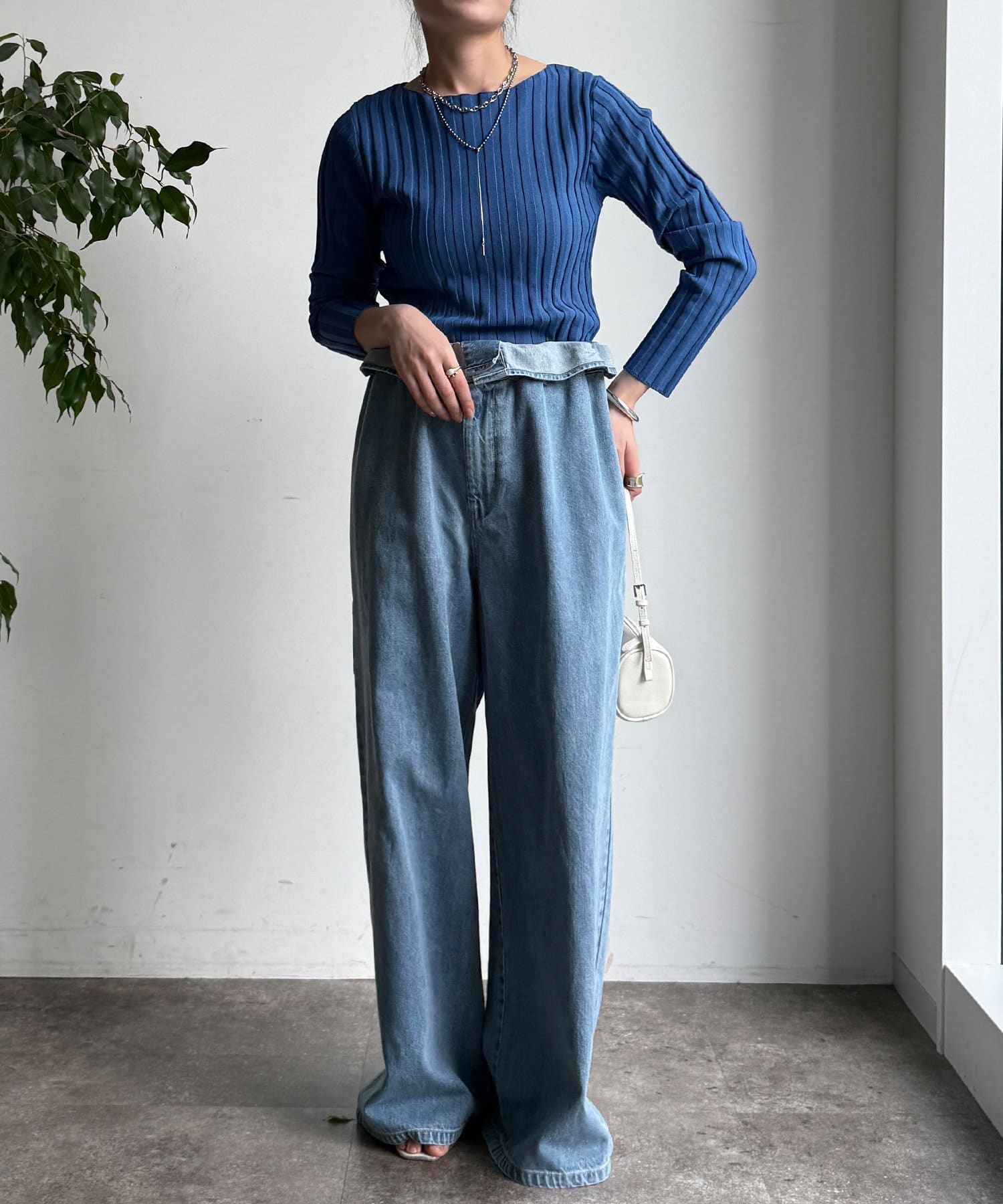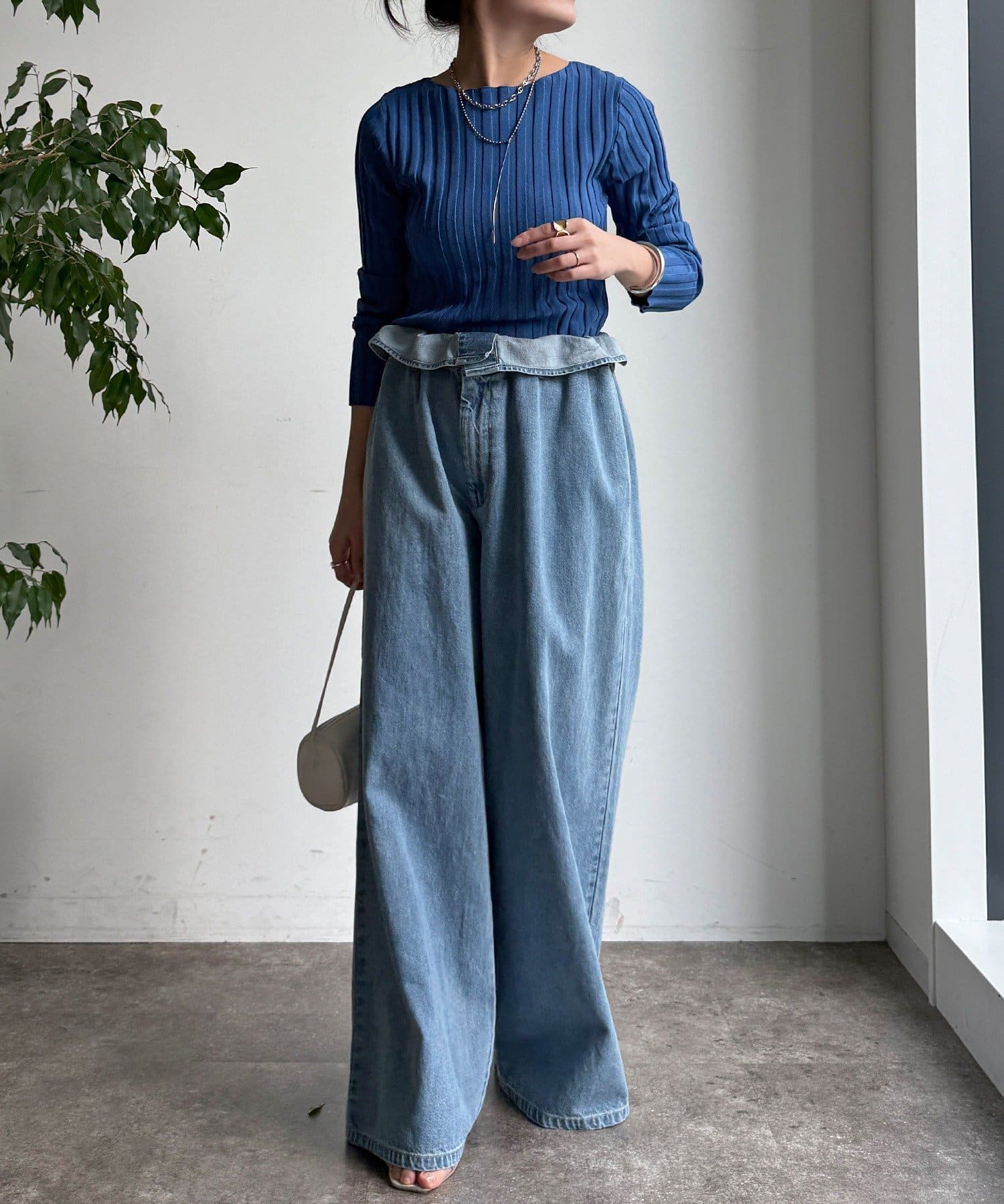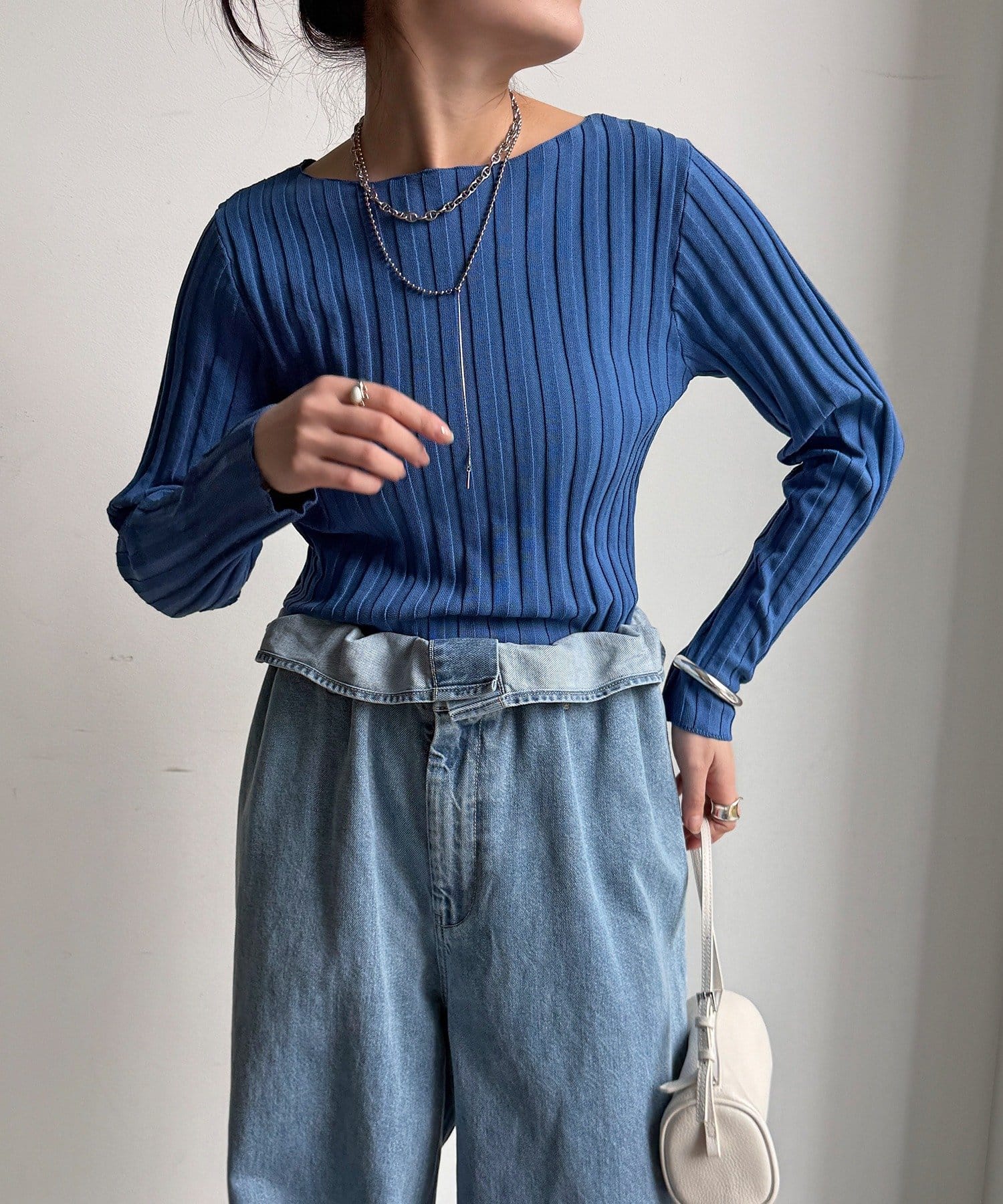 太めのリブが縦ラインを強調し、スタイルアップにも!
