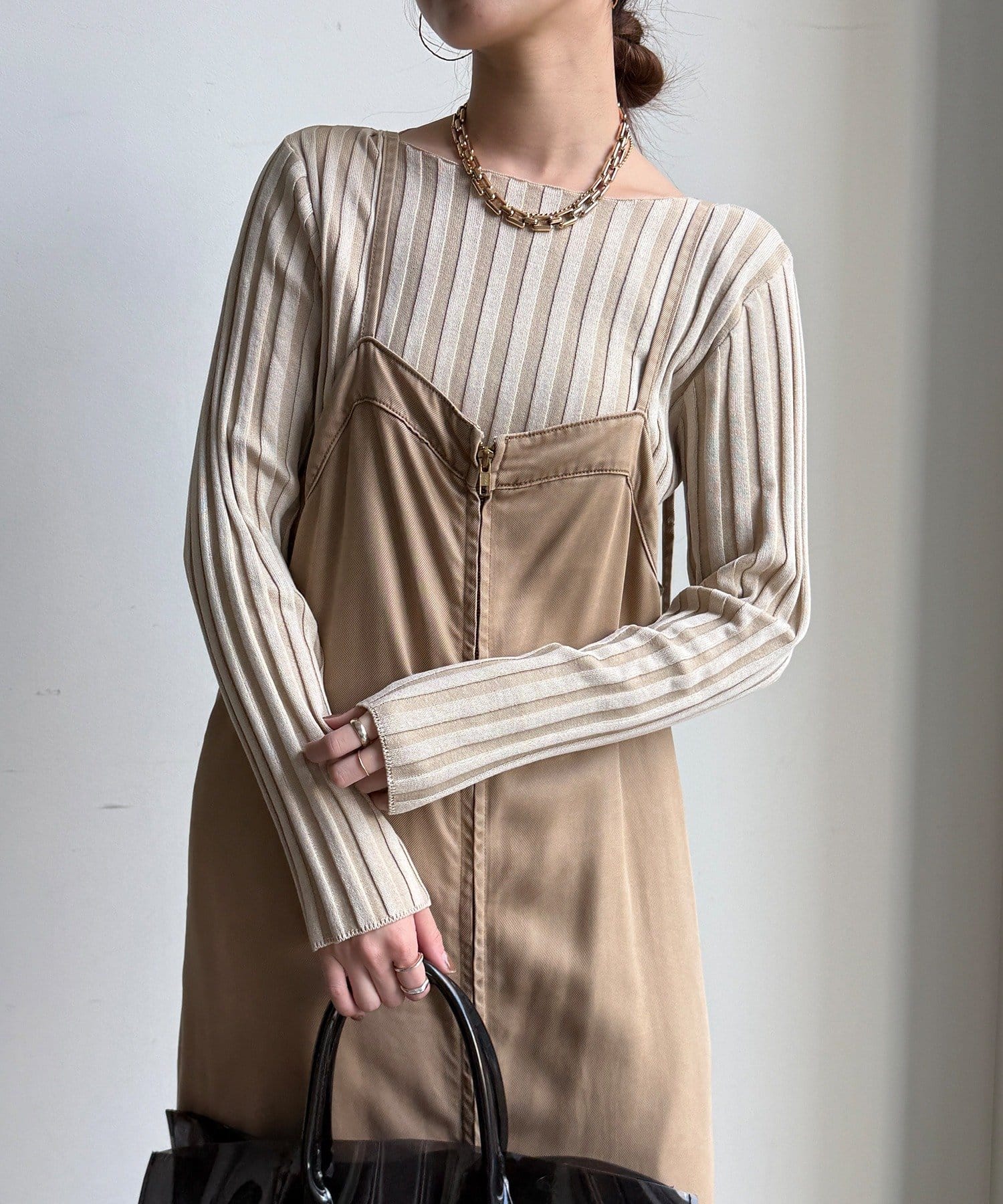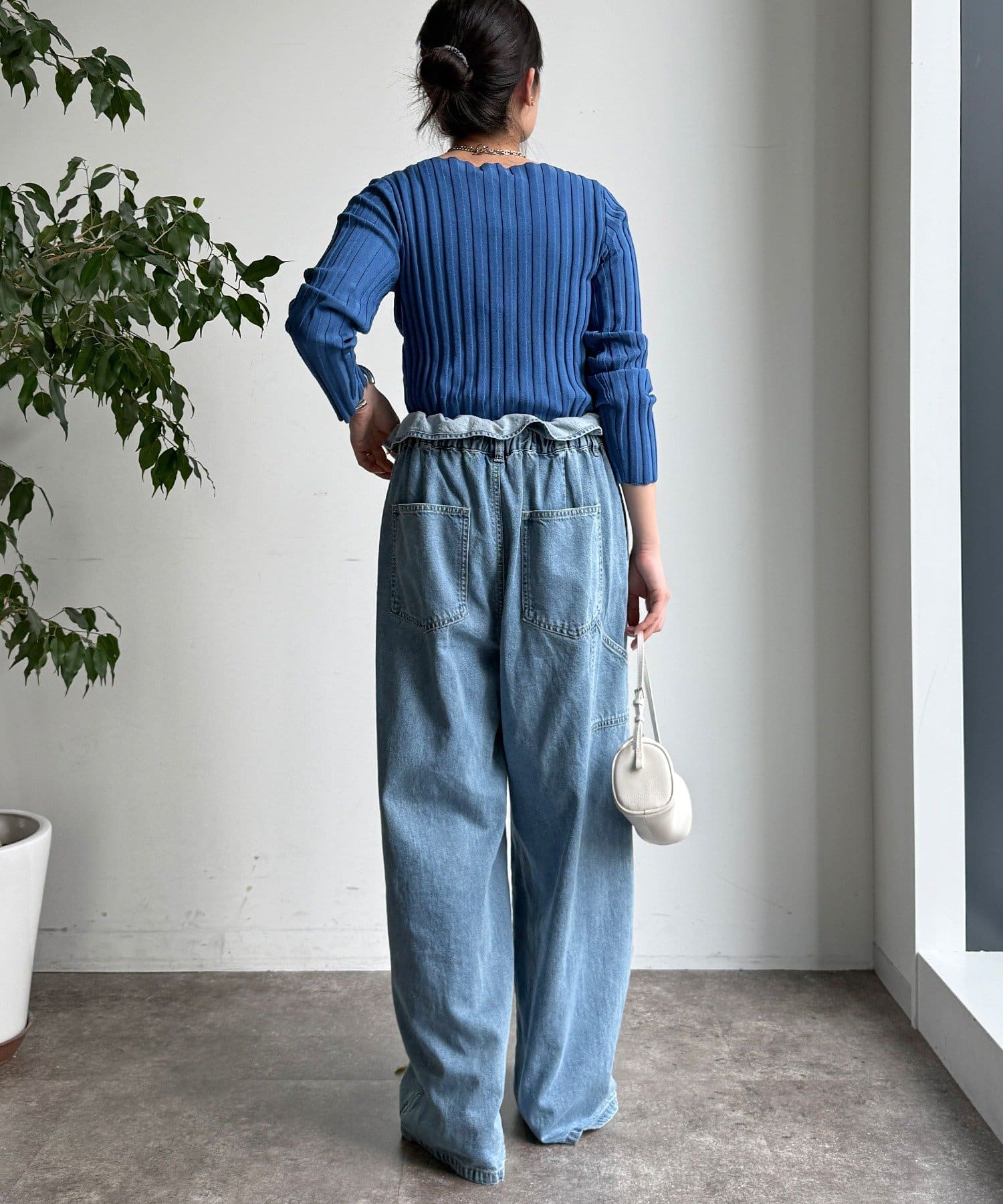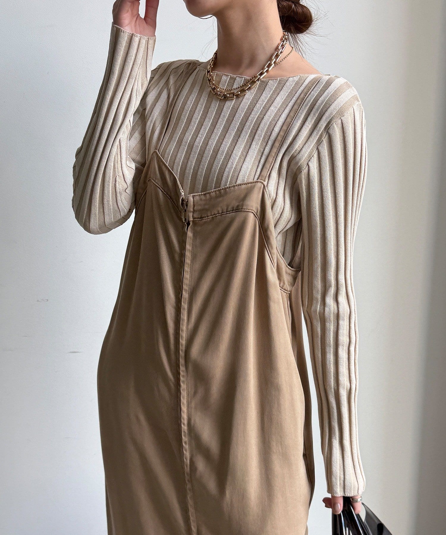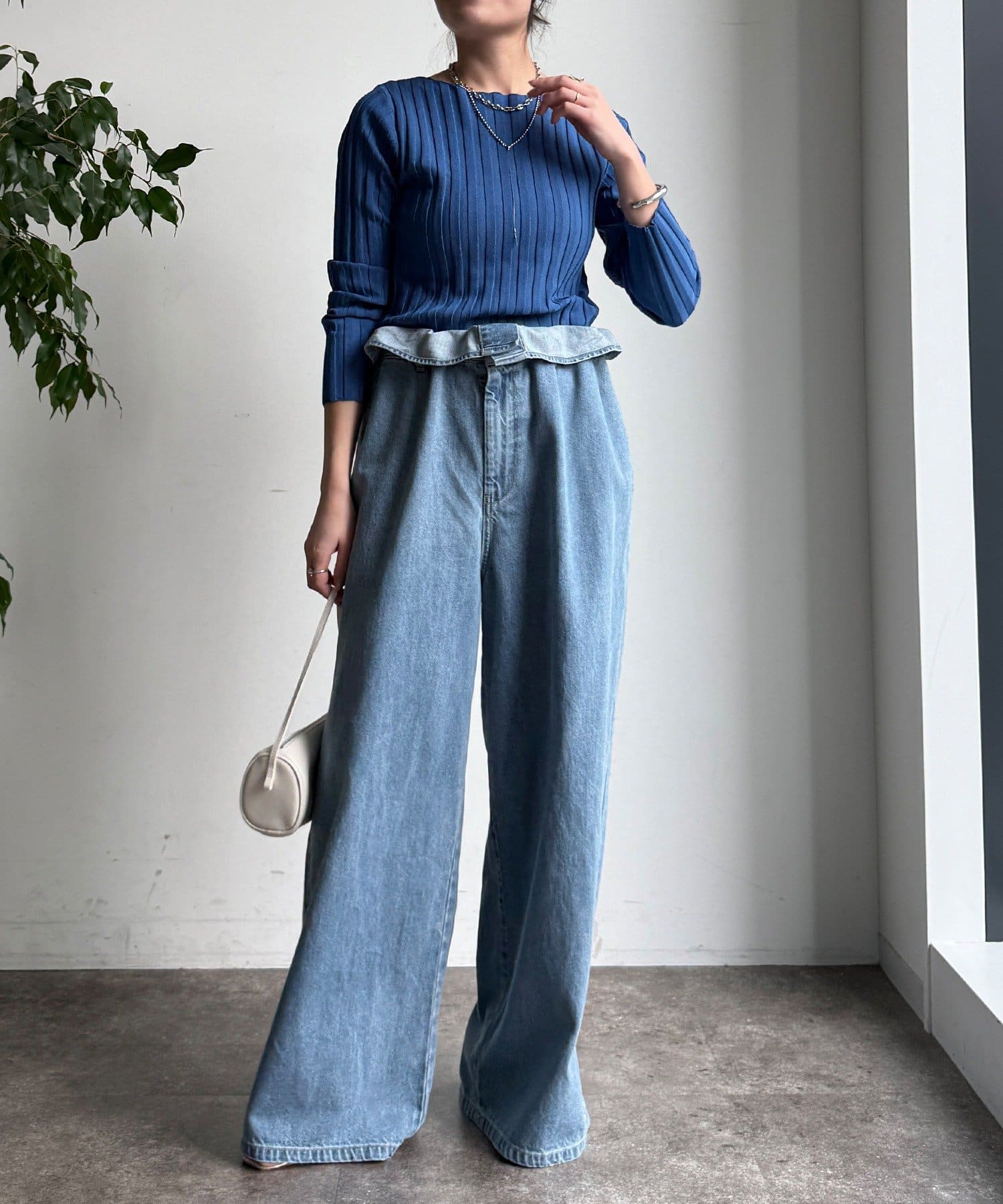 太めのリブが縦ラインを強調し、スタイルアップにも!
