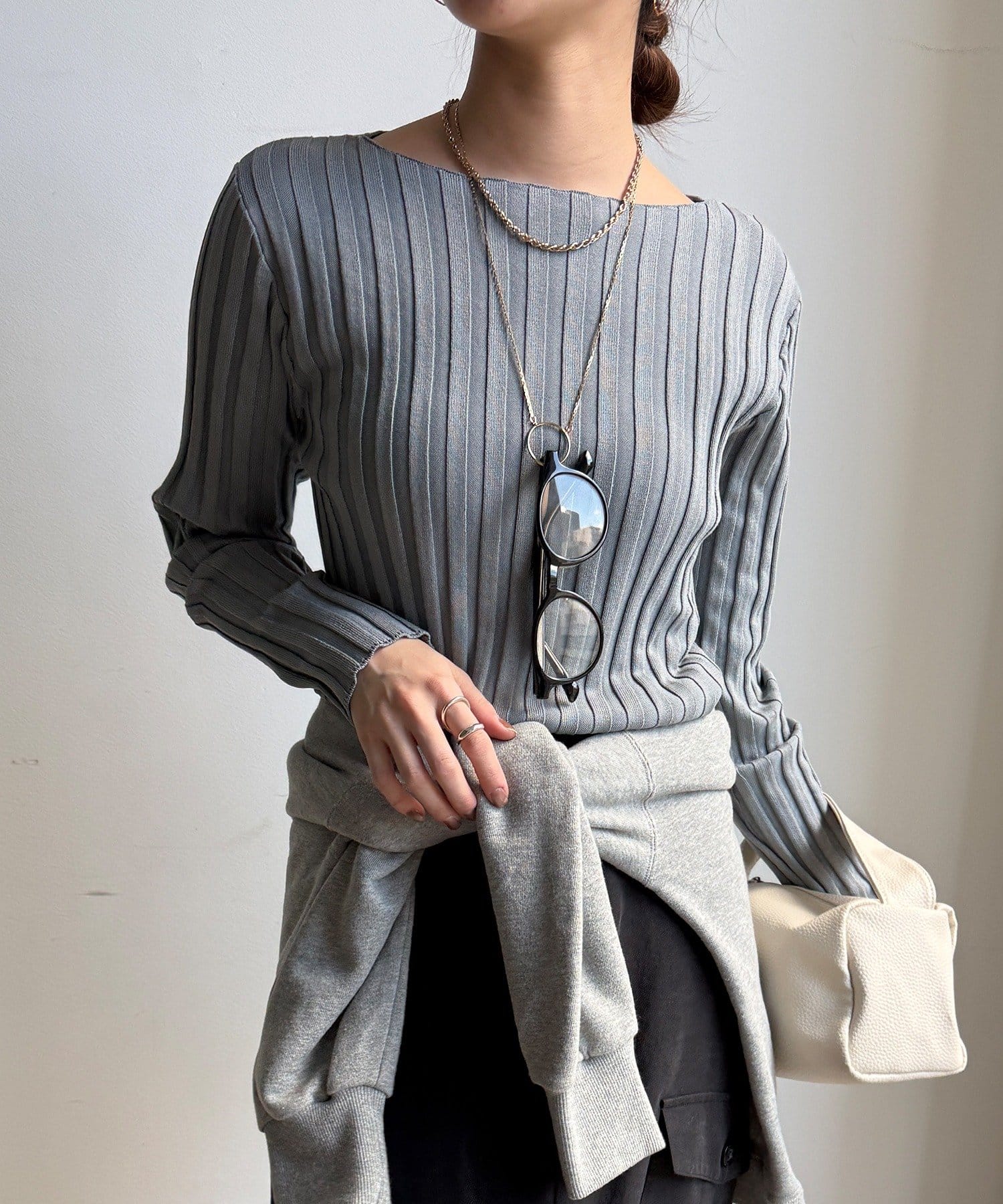 シルクの様な滑らかな肌触りが特徴なレーヨン素材を使ったリブニット。