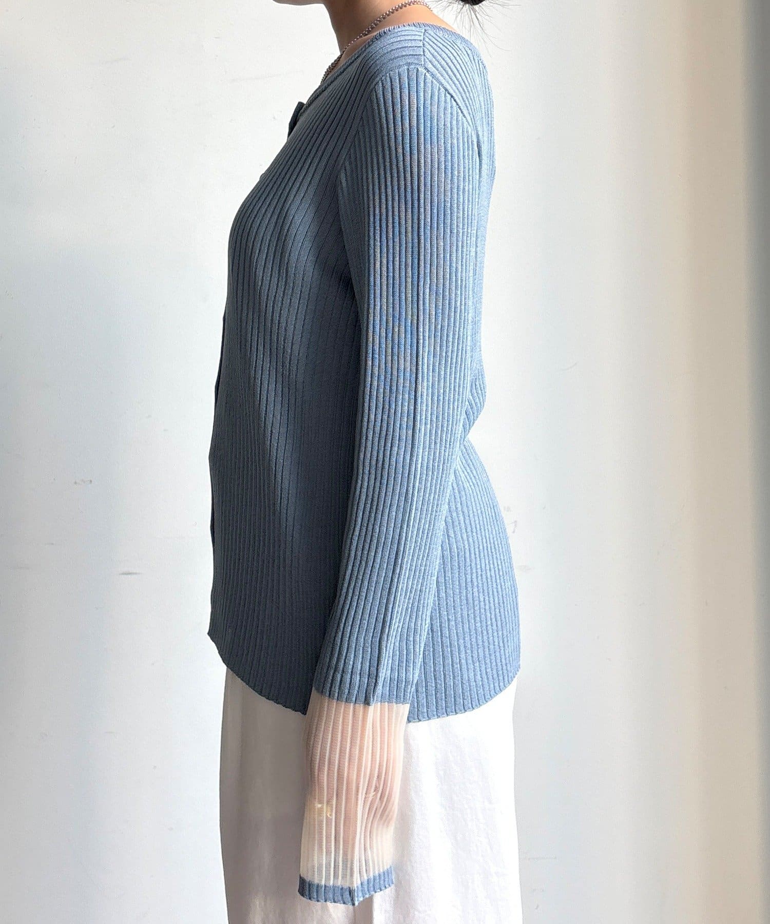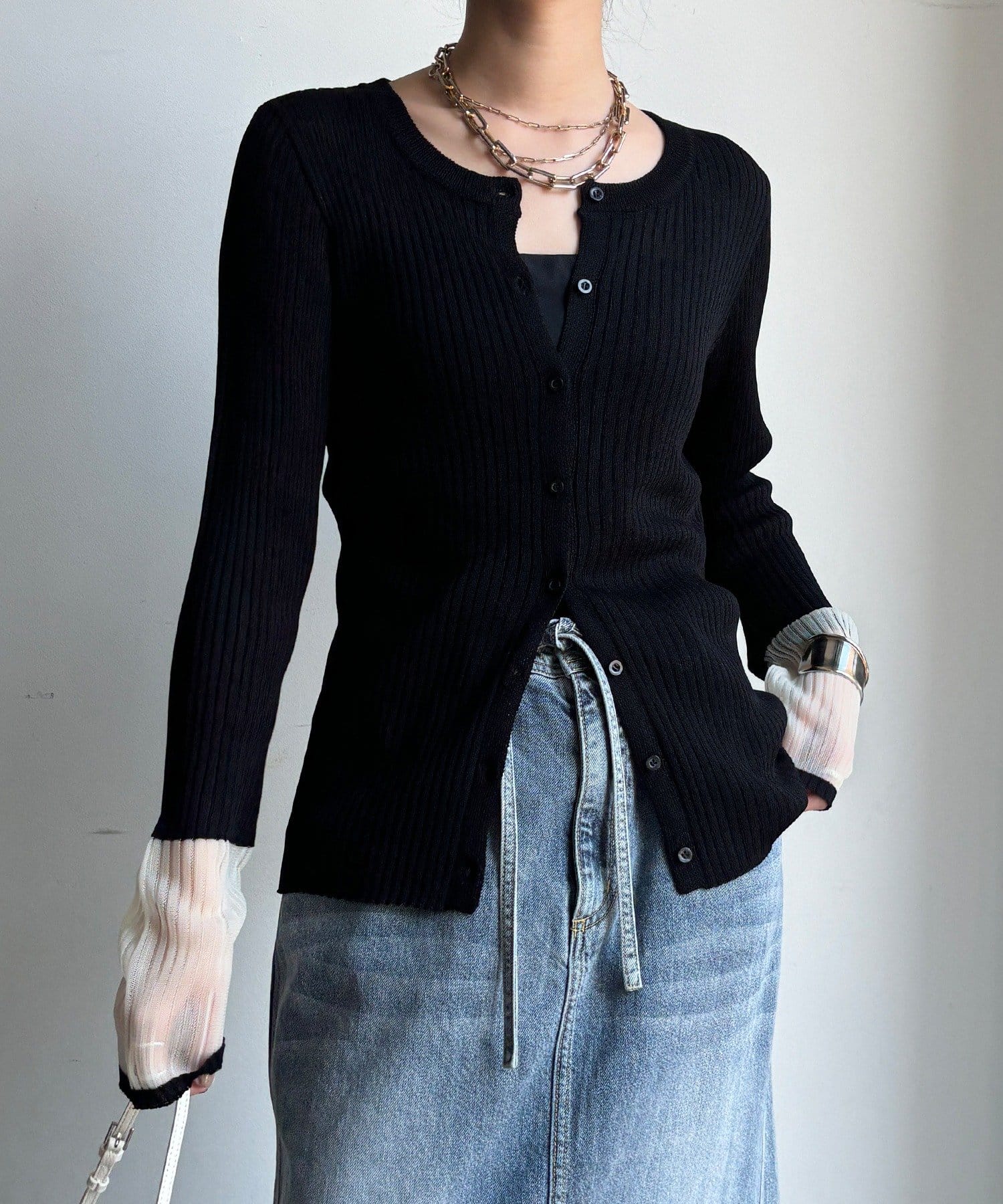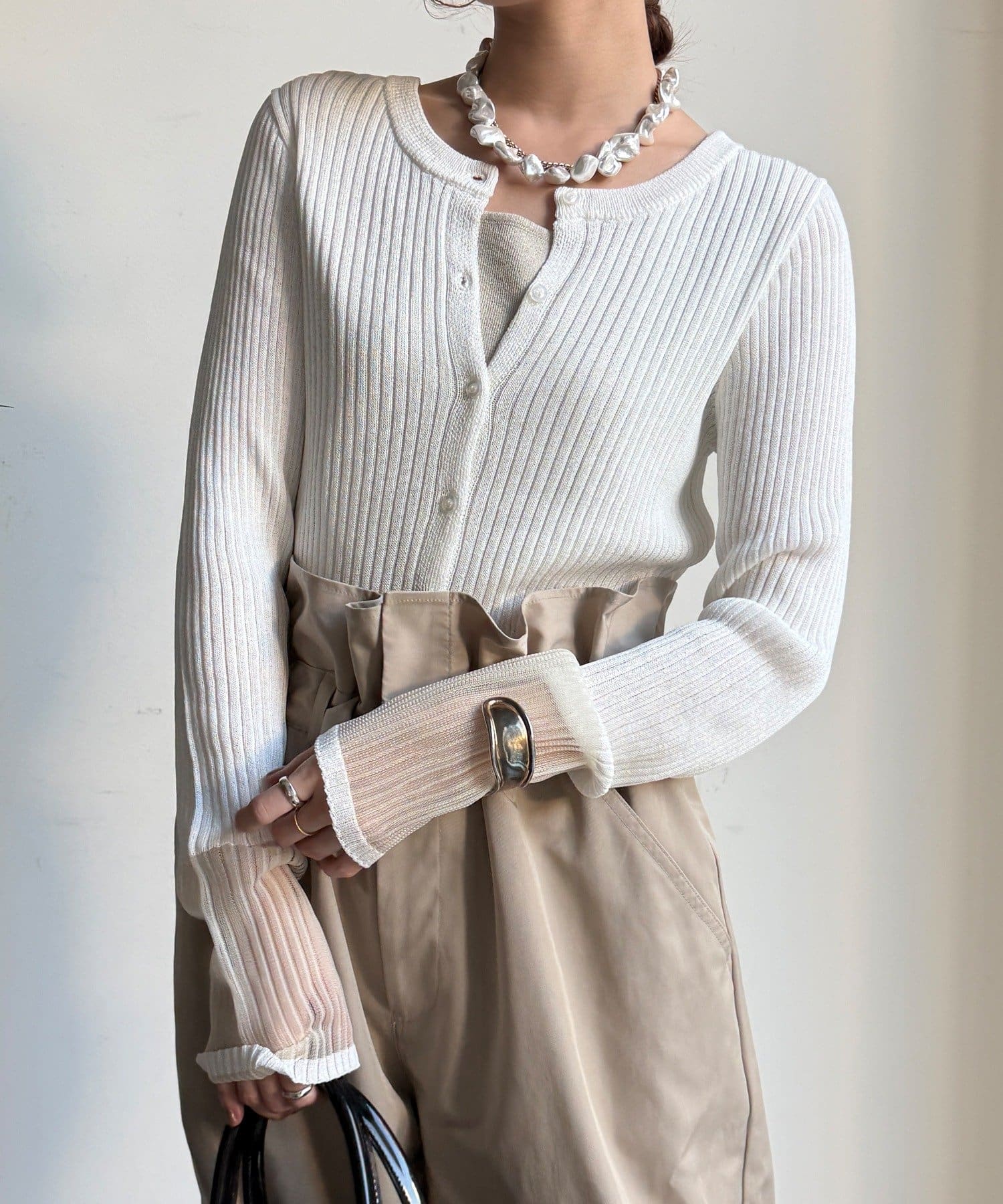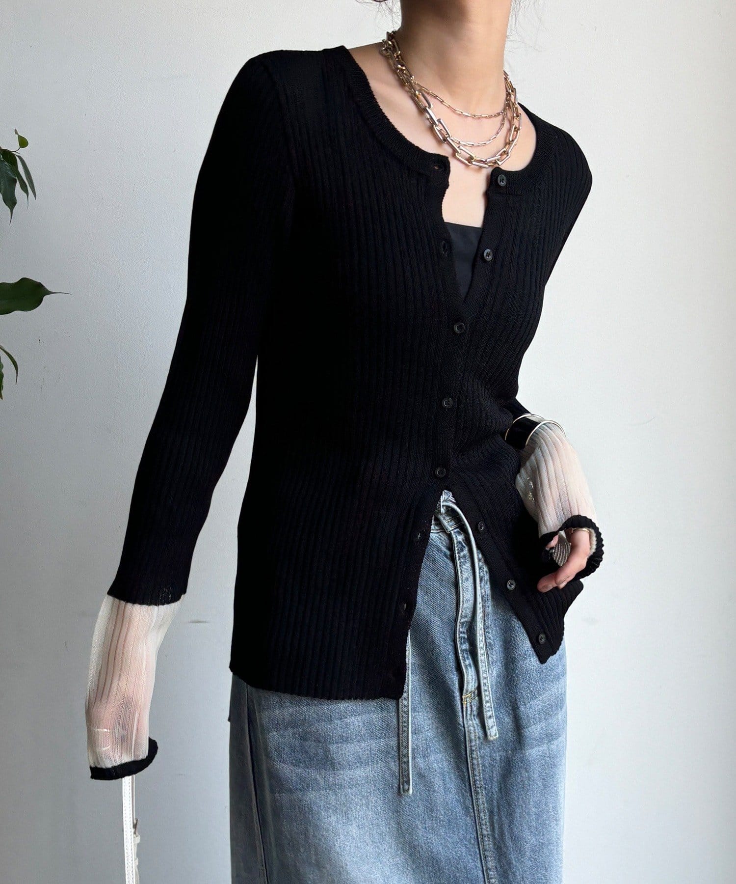 DOUDOU(ドゥドゥ) 【WEB限定】袖シアー切替リブカーディガン