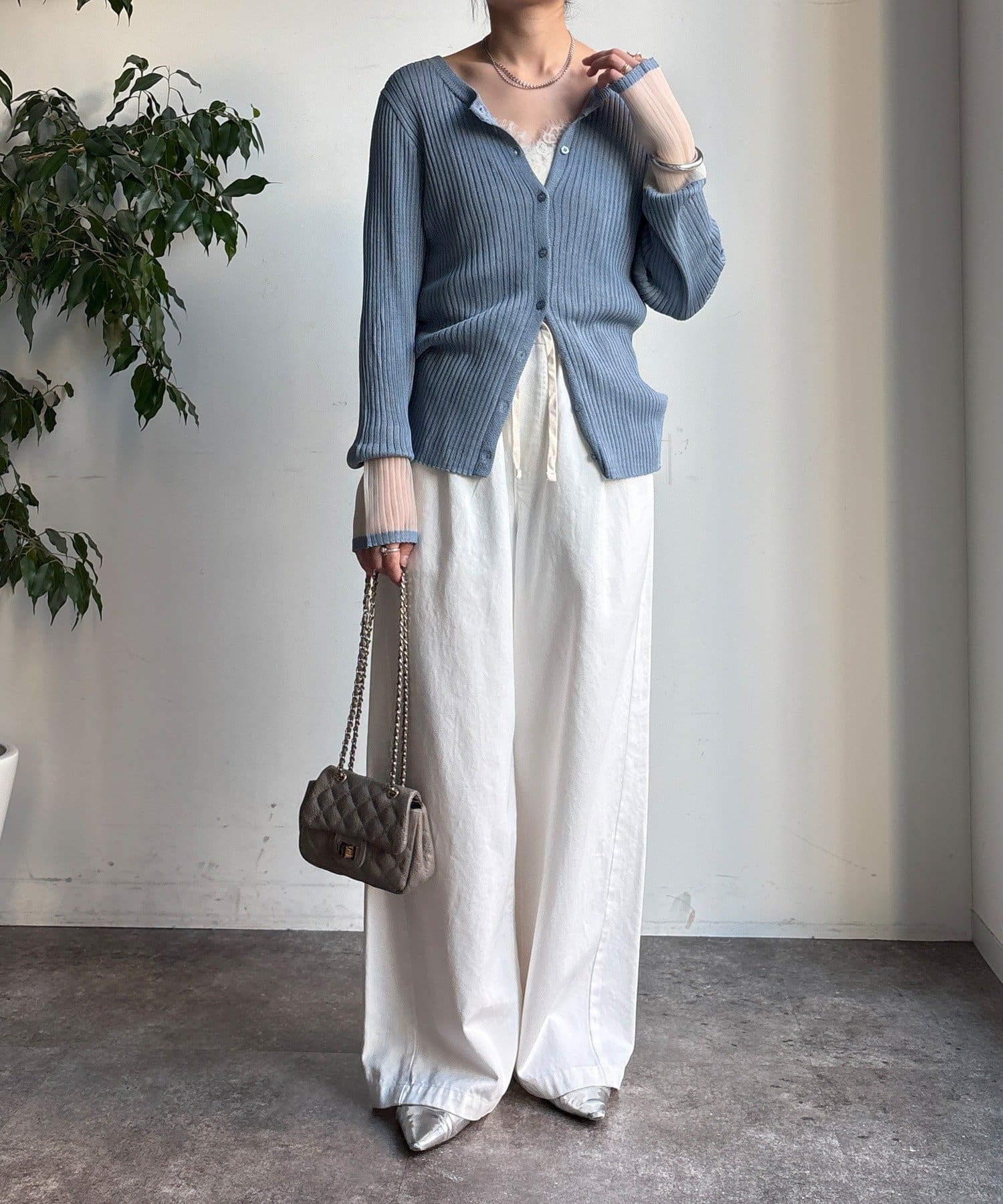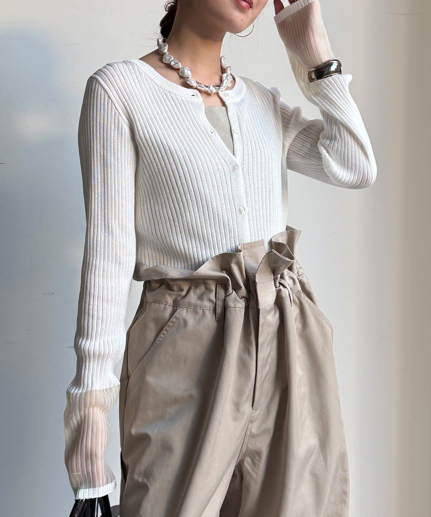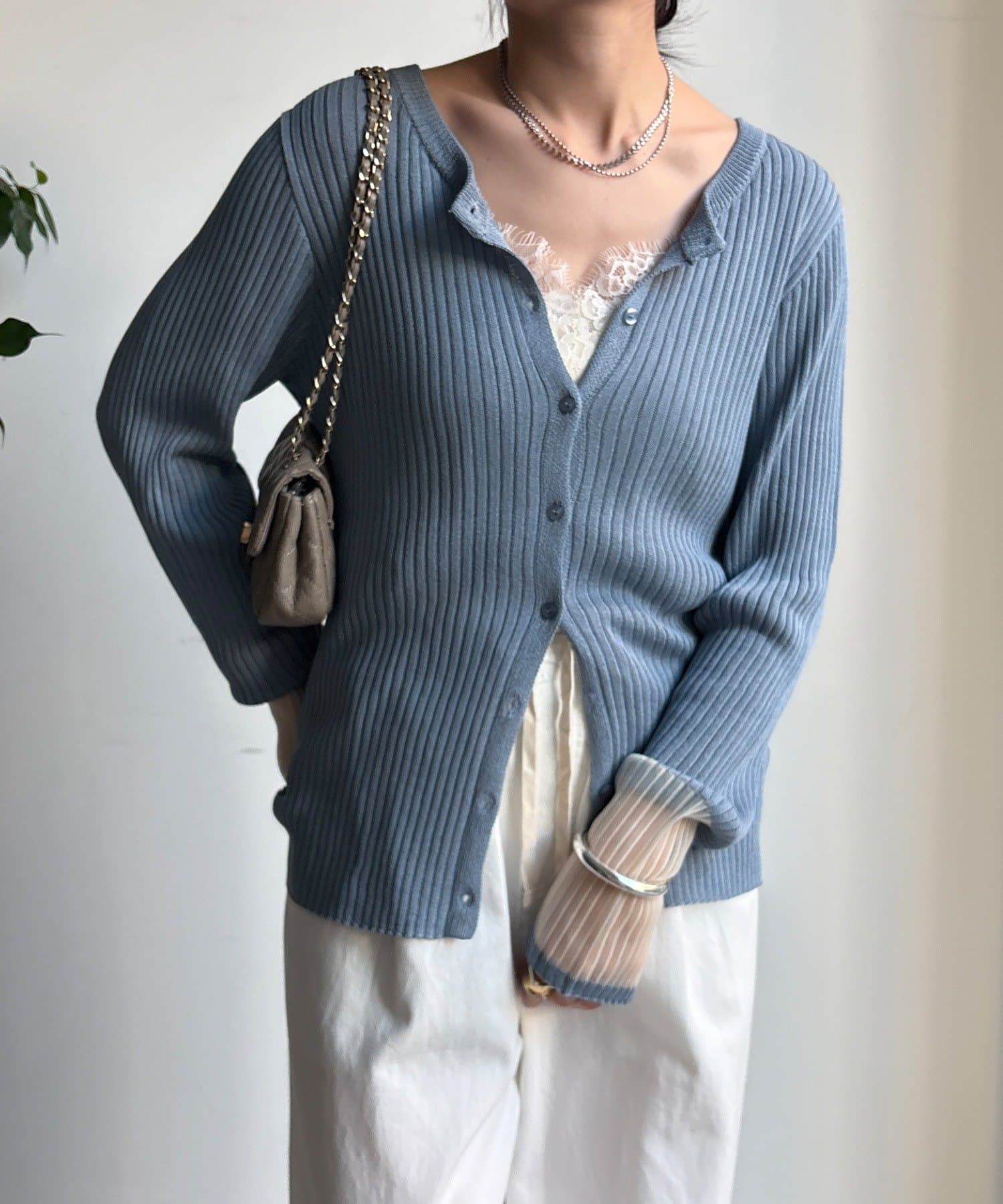 DOUDOU(ドゥドゥ) 【WEB限定】袖シアー切替リブカーディガン