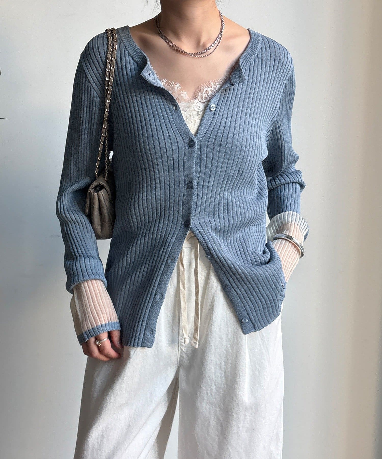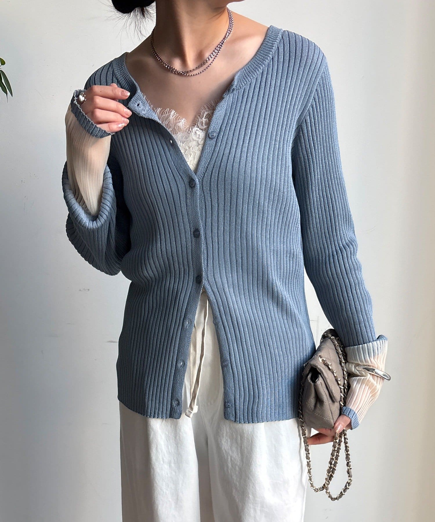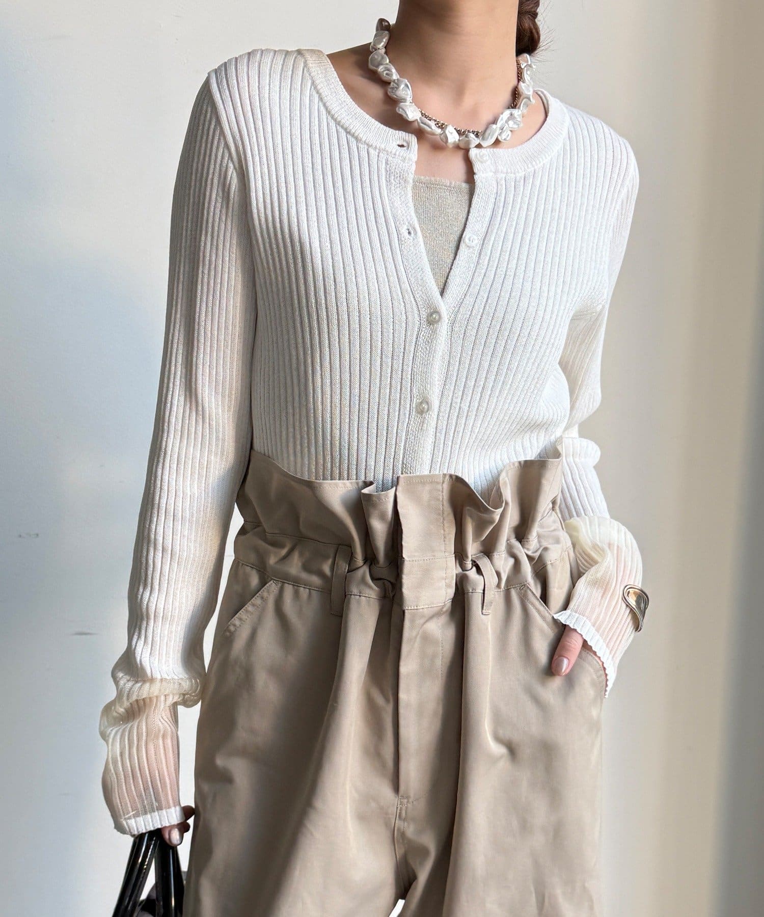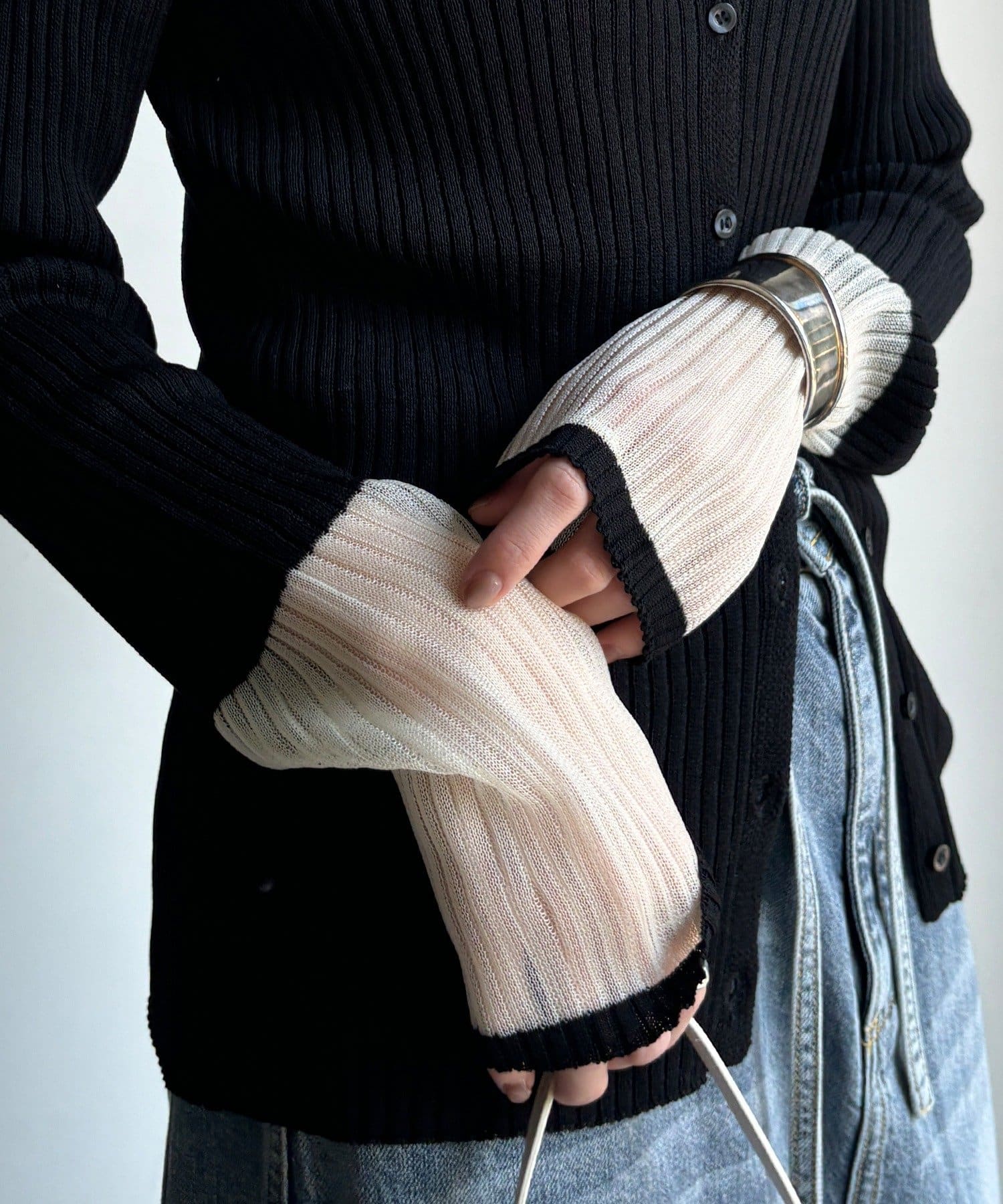 DOUDOU(ドゥドゥ) 【WEB限定】袖シアー切替リブカーディガン