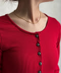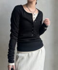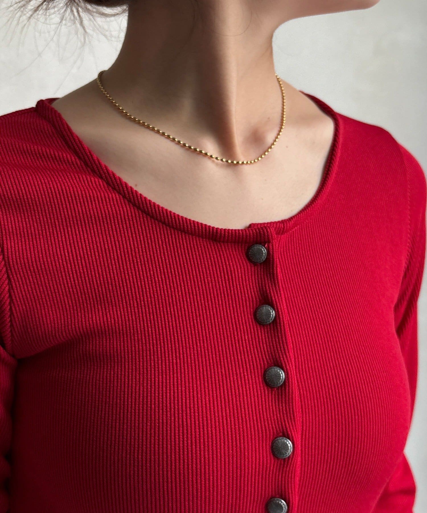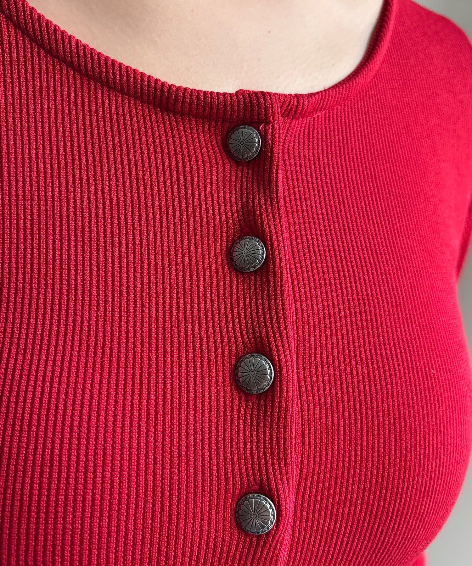ボタンがレトロ感を生み出し、一枚で着てもコーディネートが引き締まります。