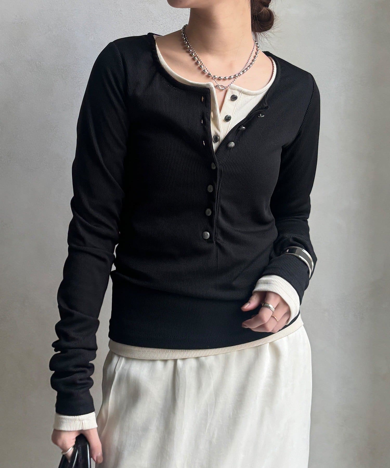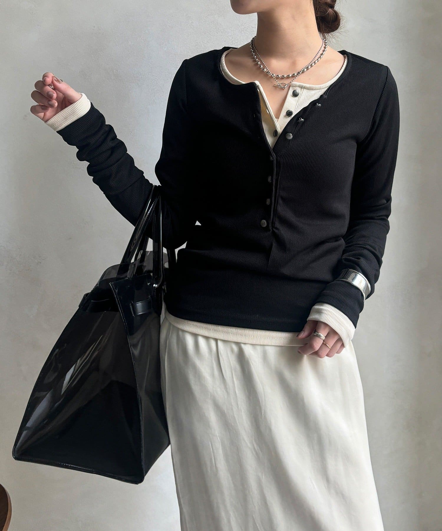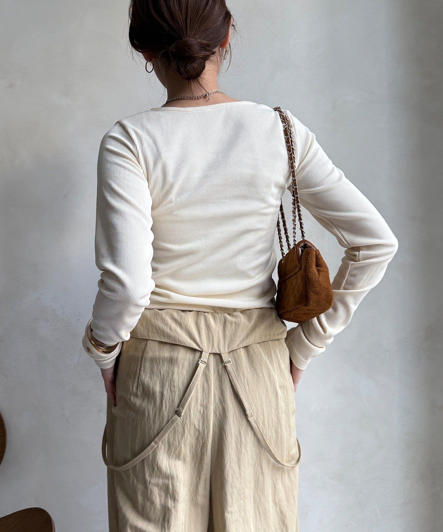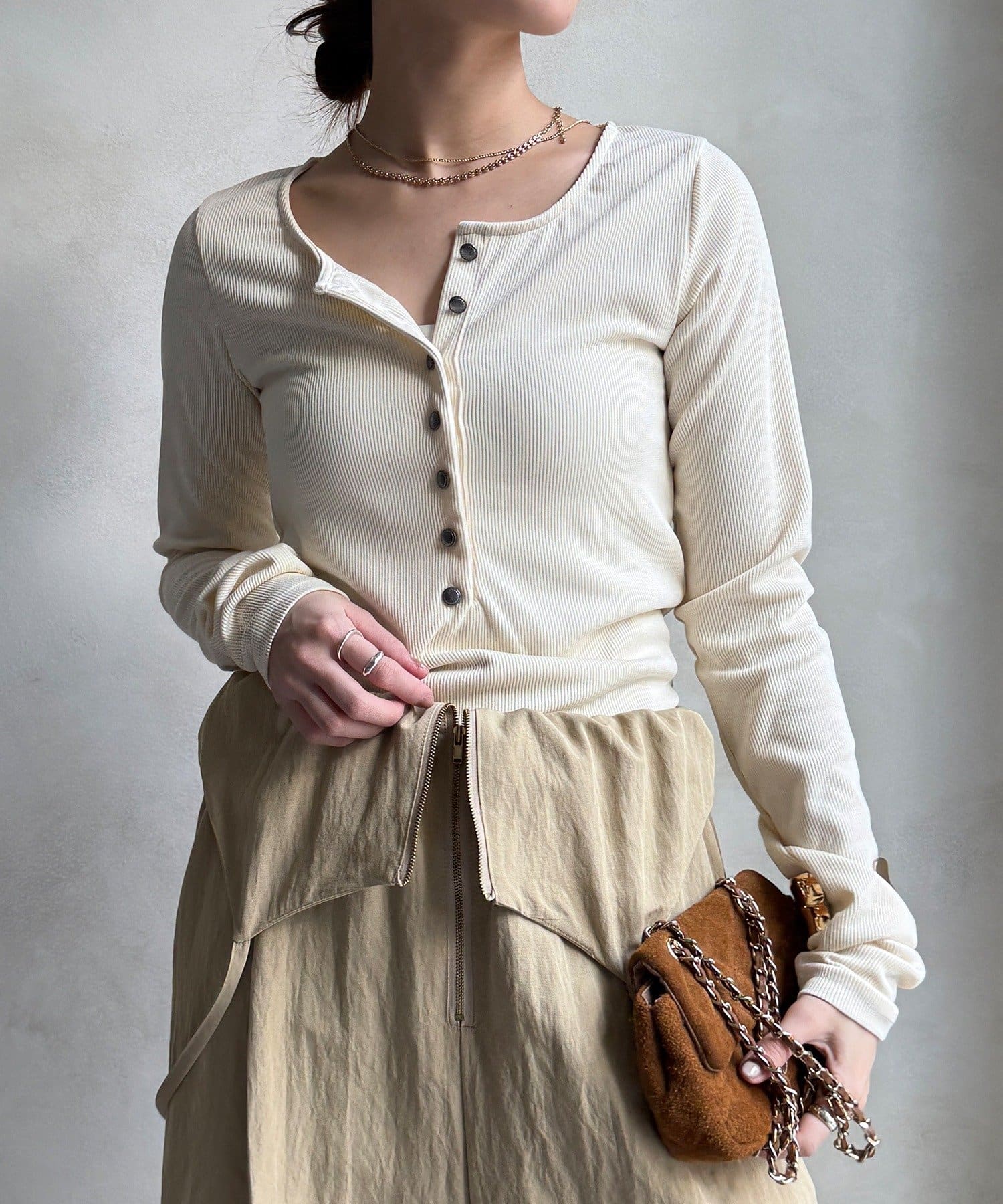 女性らしい雰囲気を出したいときや、インナーとしてすっきり着たい時に最適です。