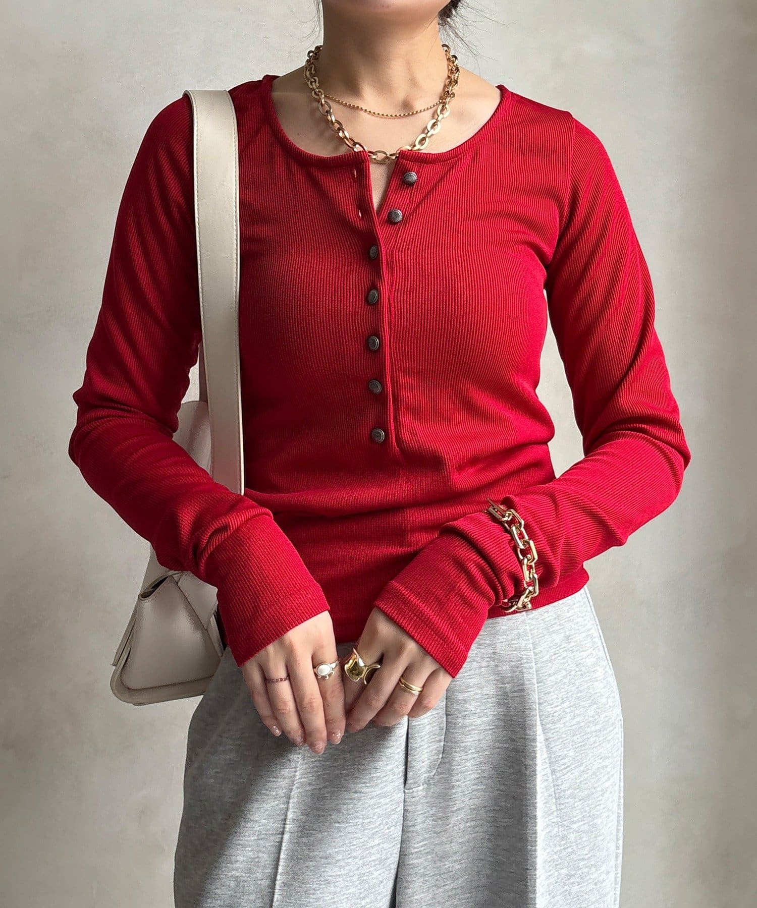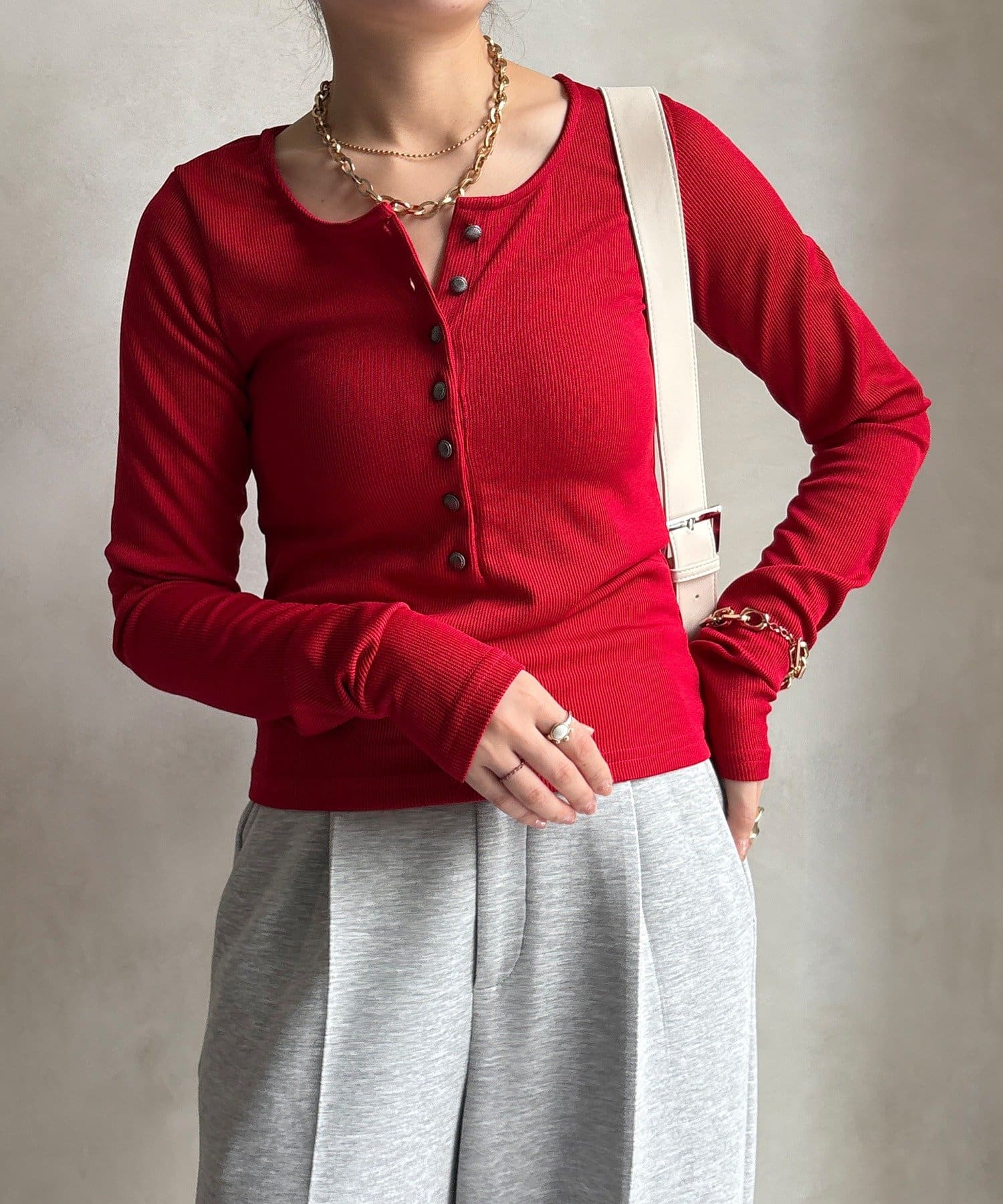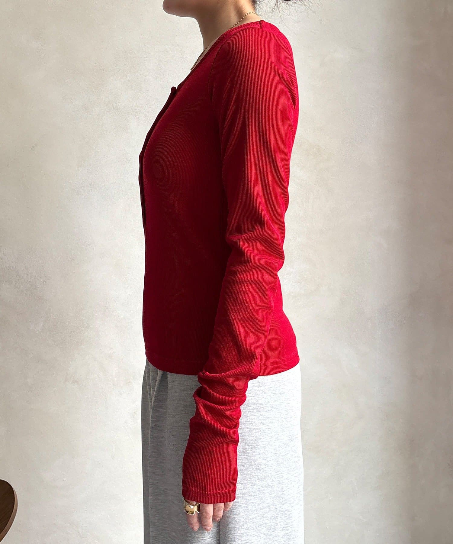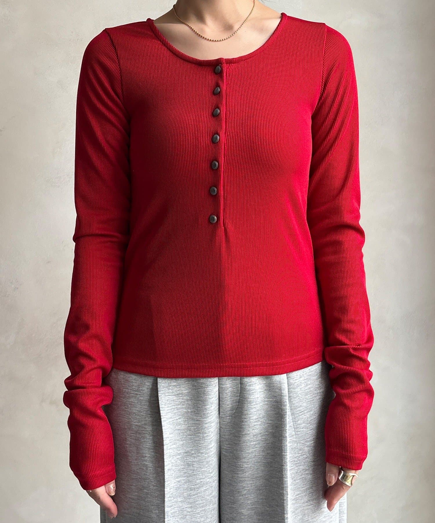 【WEB限定】ヘンリーネックリブニット