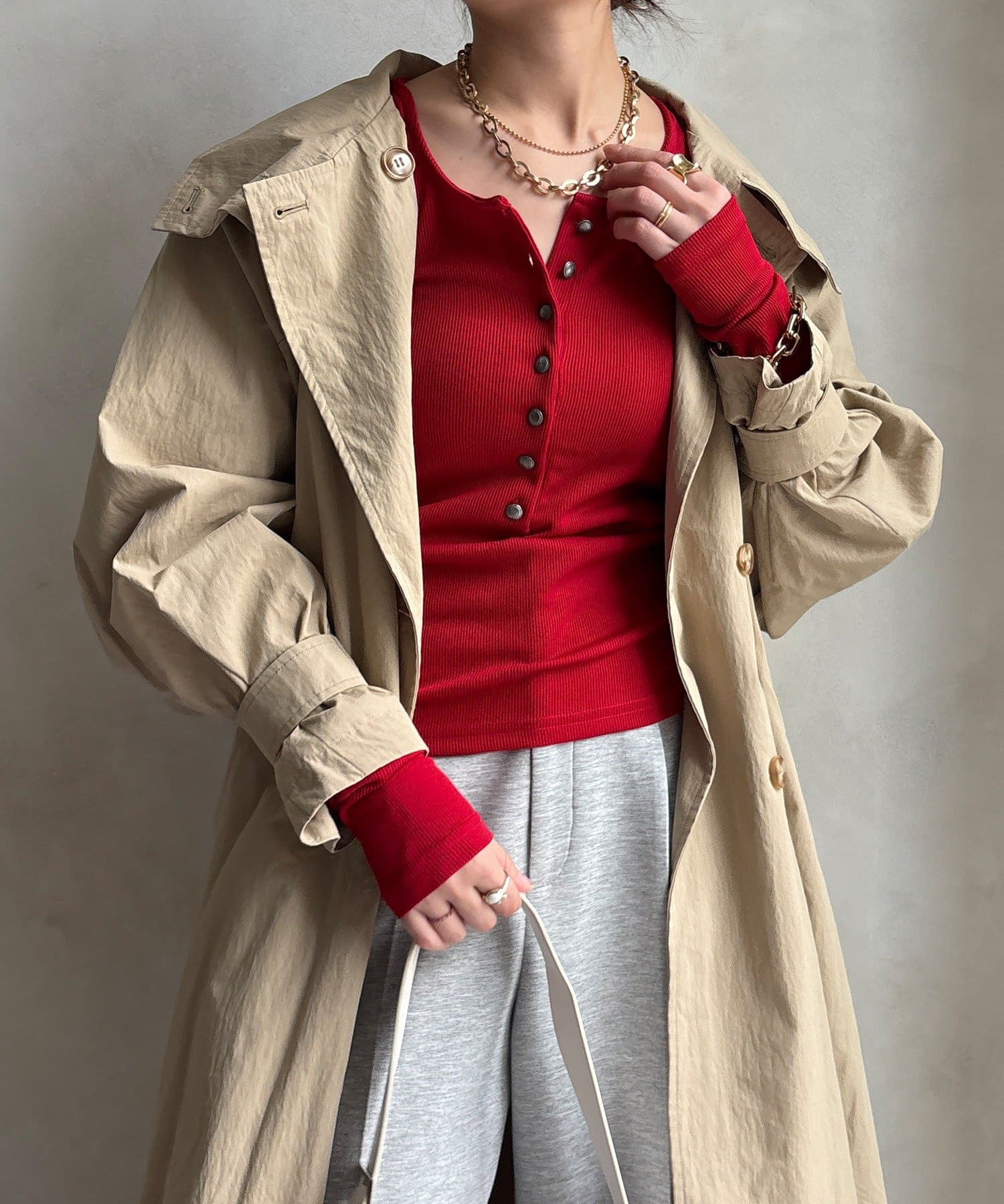 ・ヘンリーネックがシックな雰囲気を