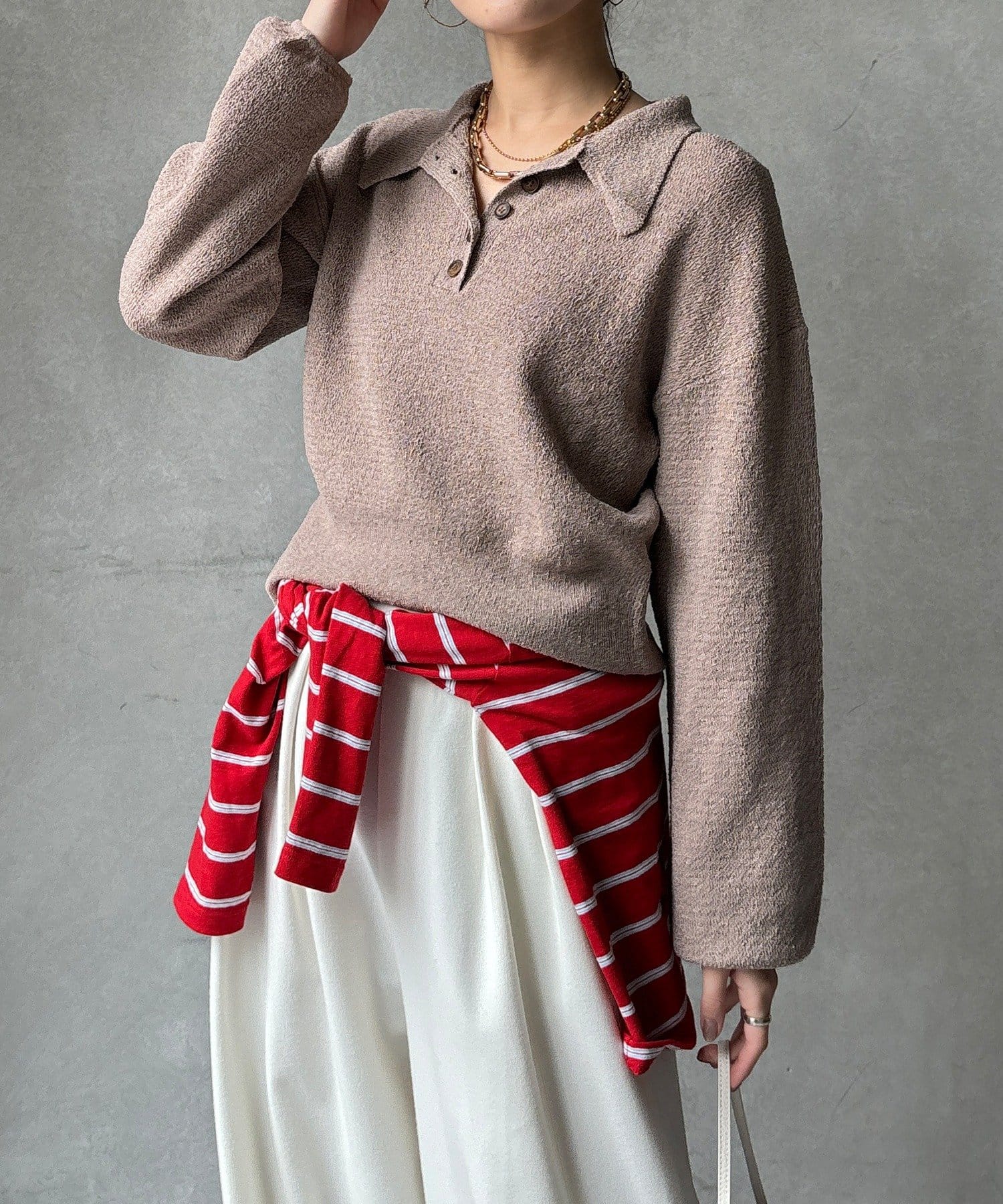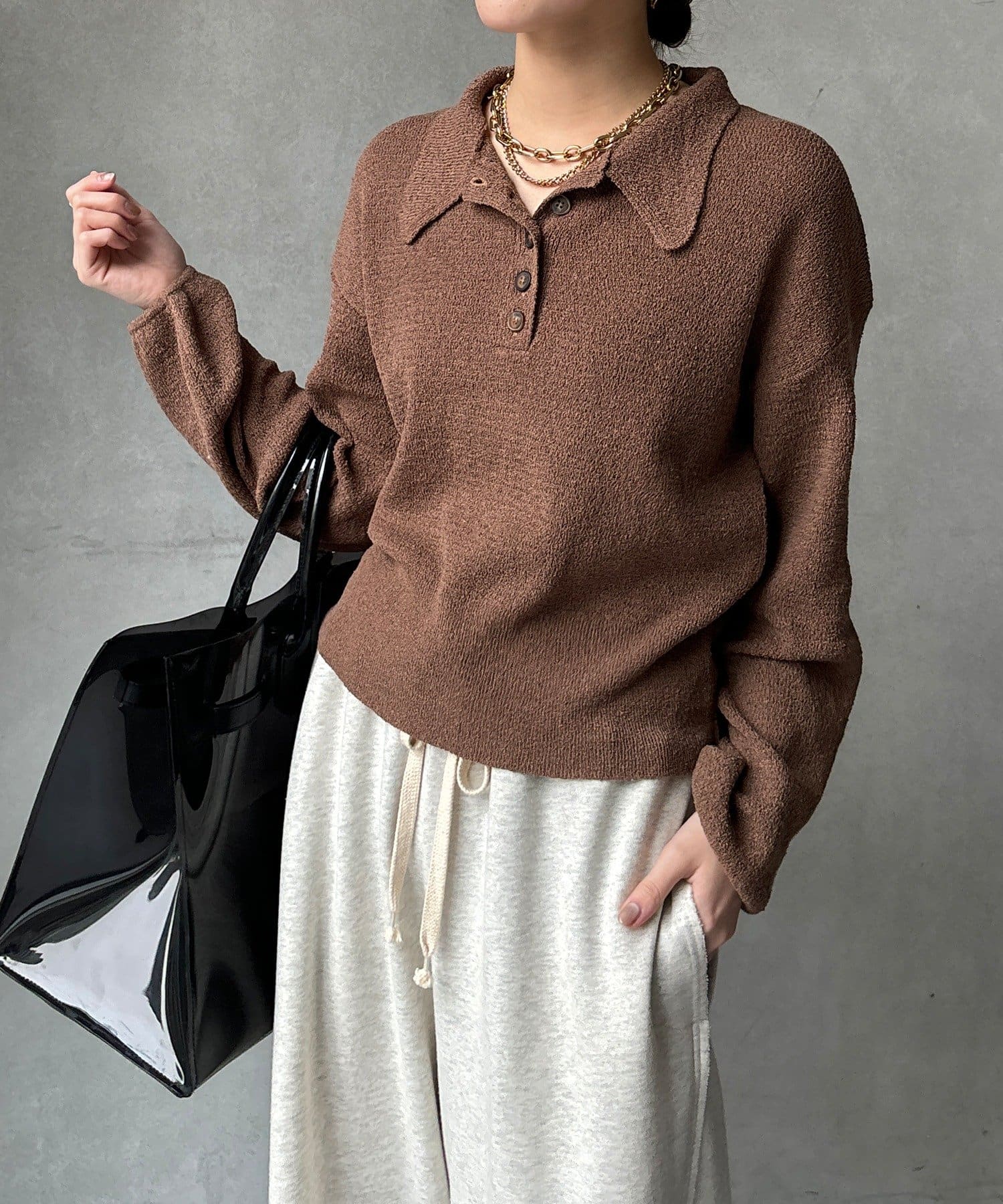 TOP > DOUDOU > レディース > トップス > ニット/セーター > 【WEB限定】ブークレーポロニット