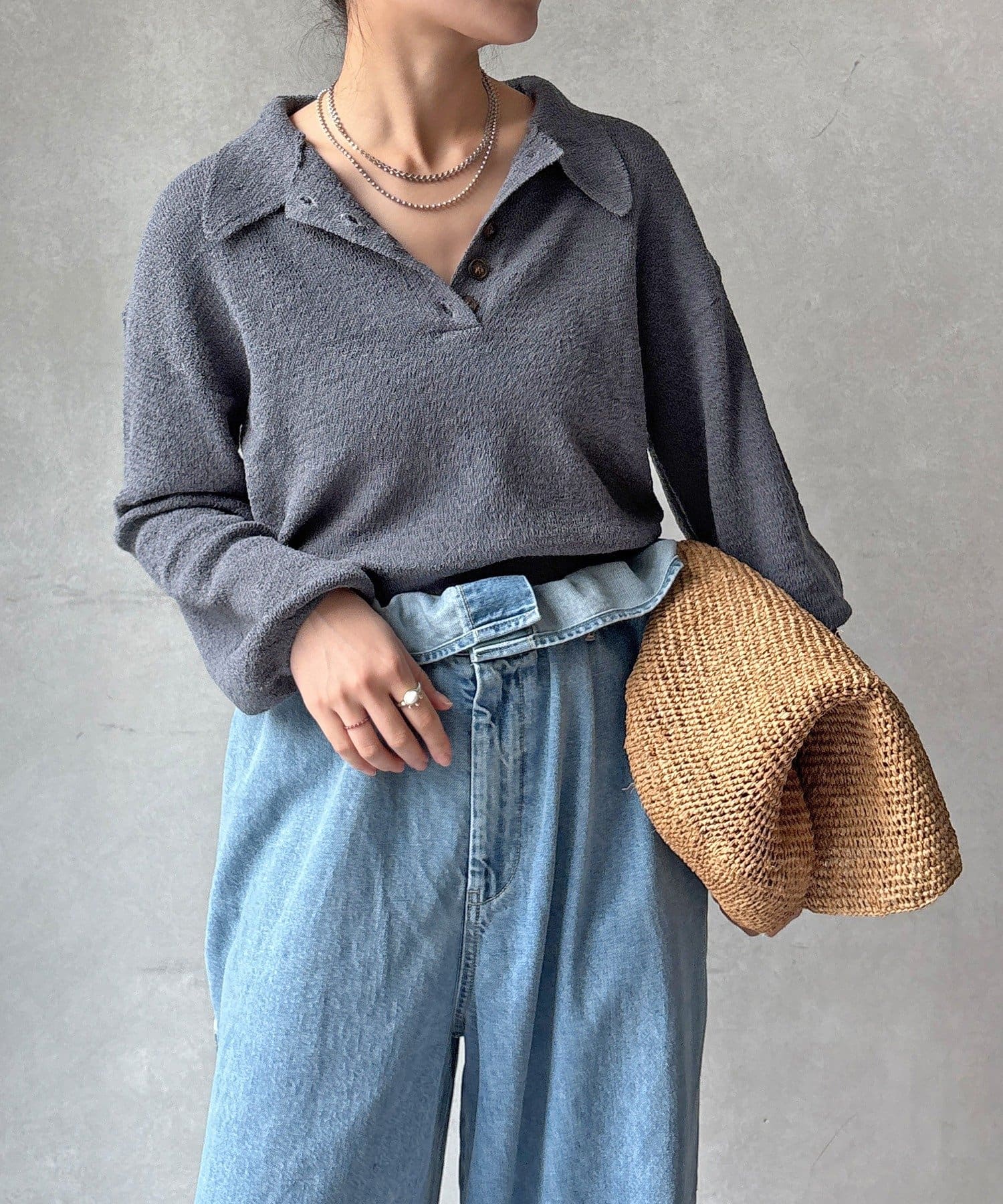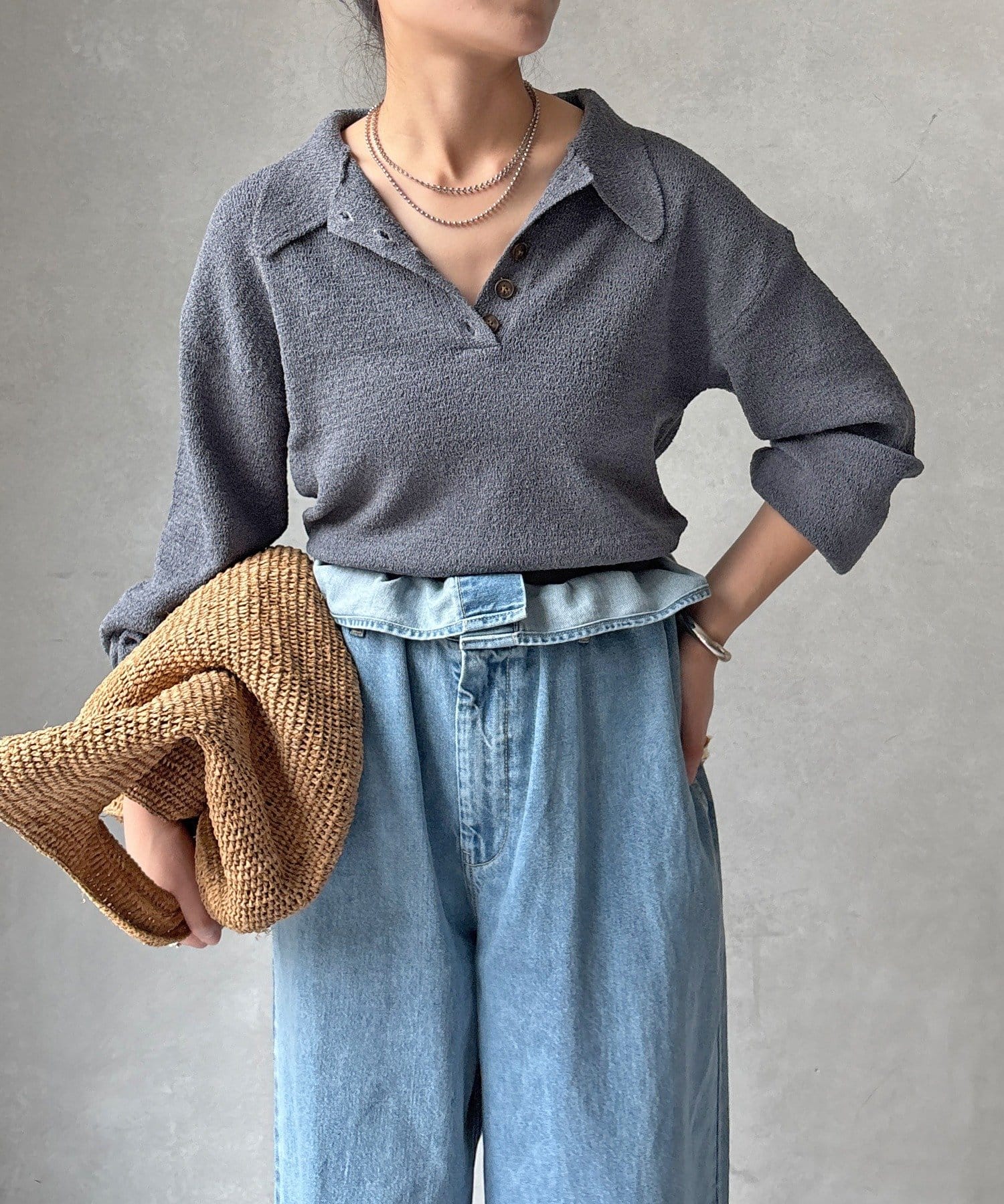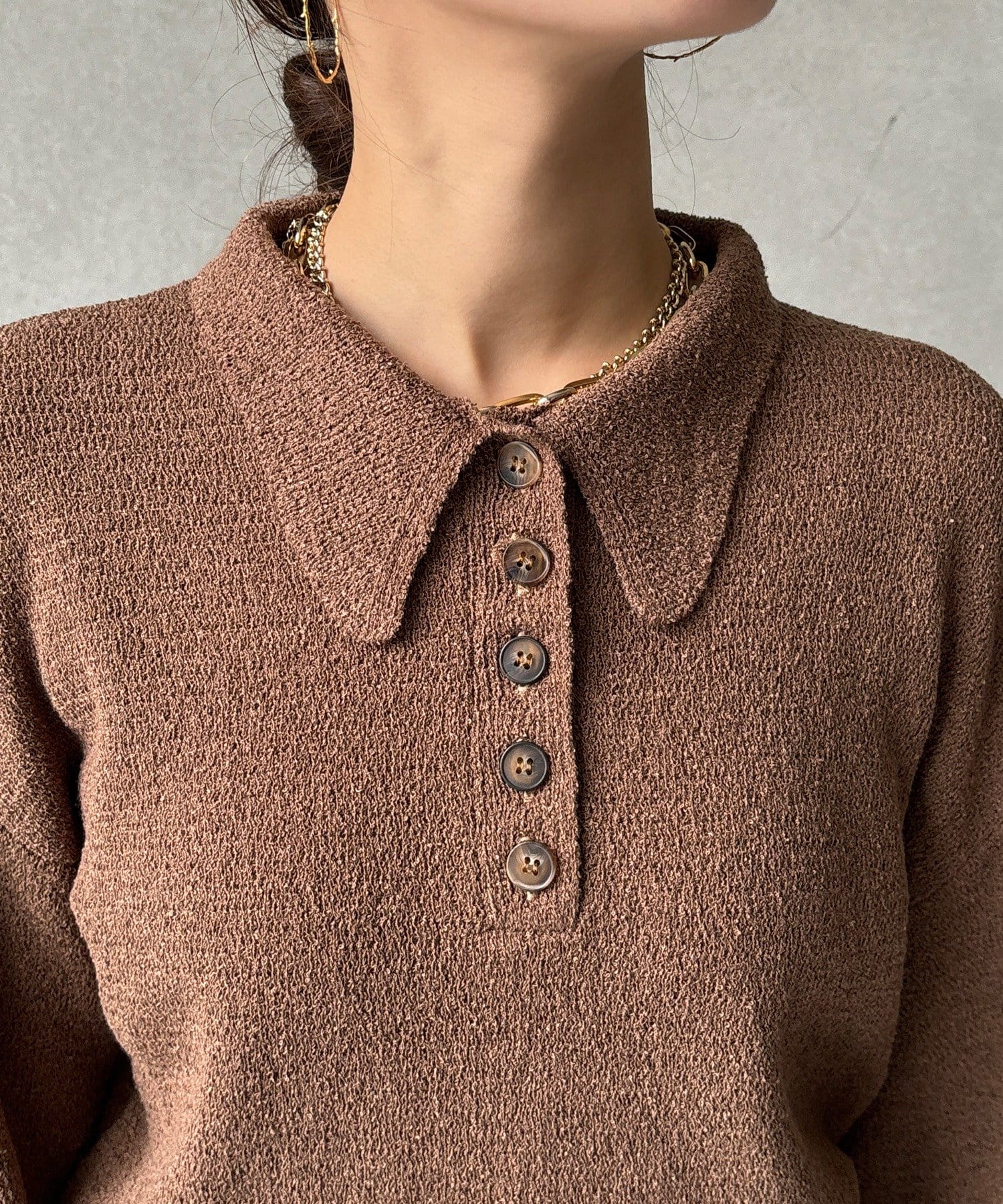 5つボタンで、首元の開き具合を調節できる所も魅力的◎