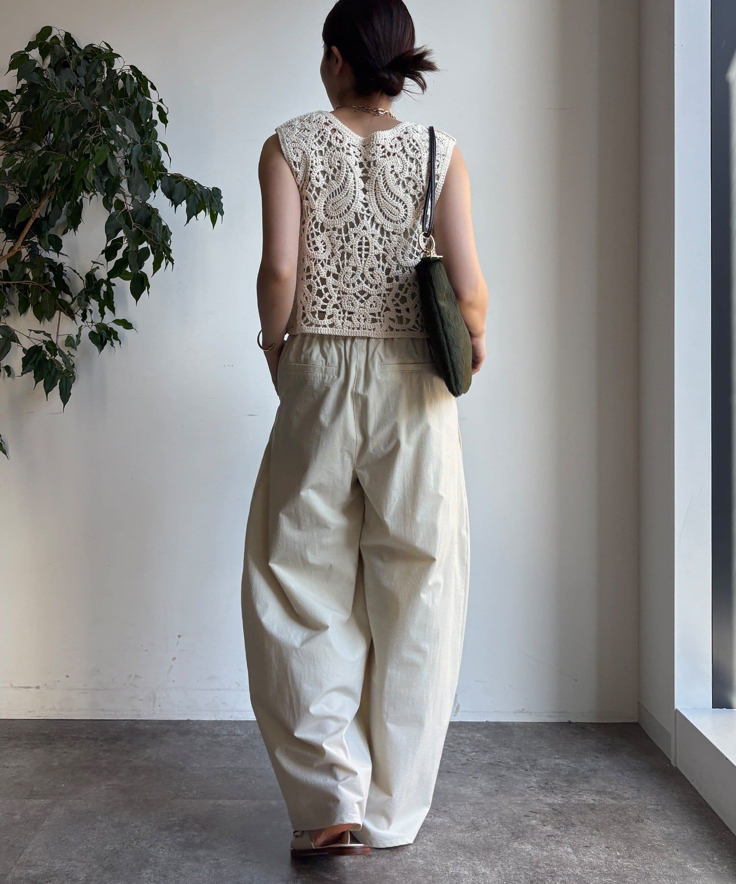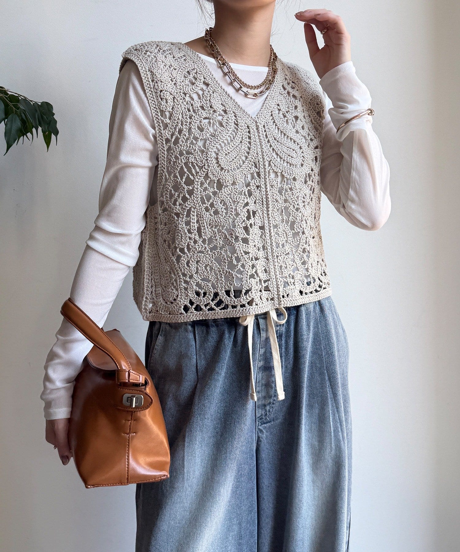 クロッシェ編みのレトロな風合いがボヘミアンな雰囲気を与えてくれます。