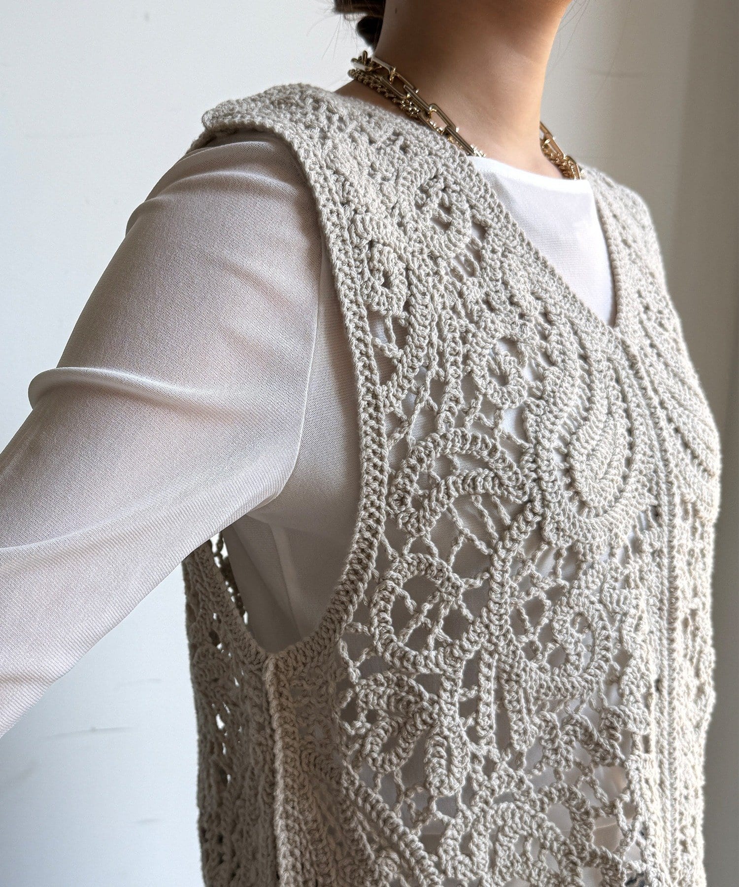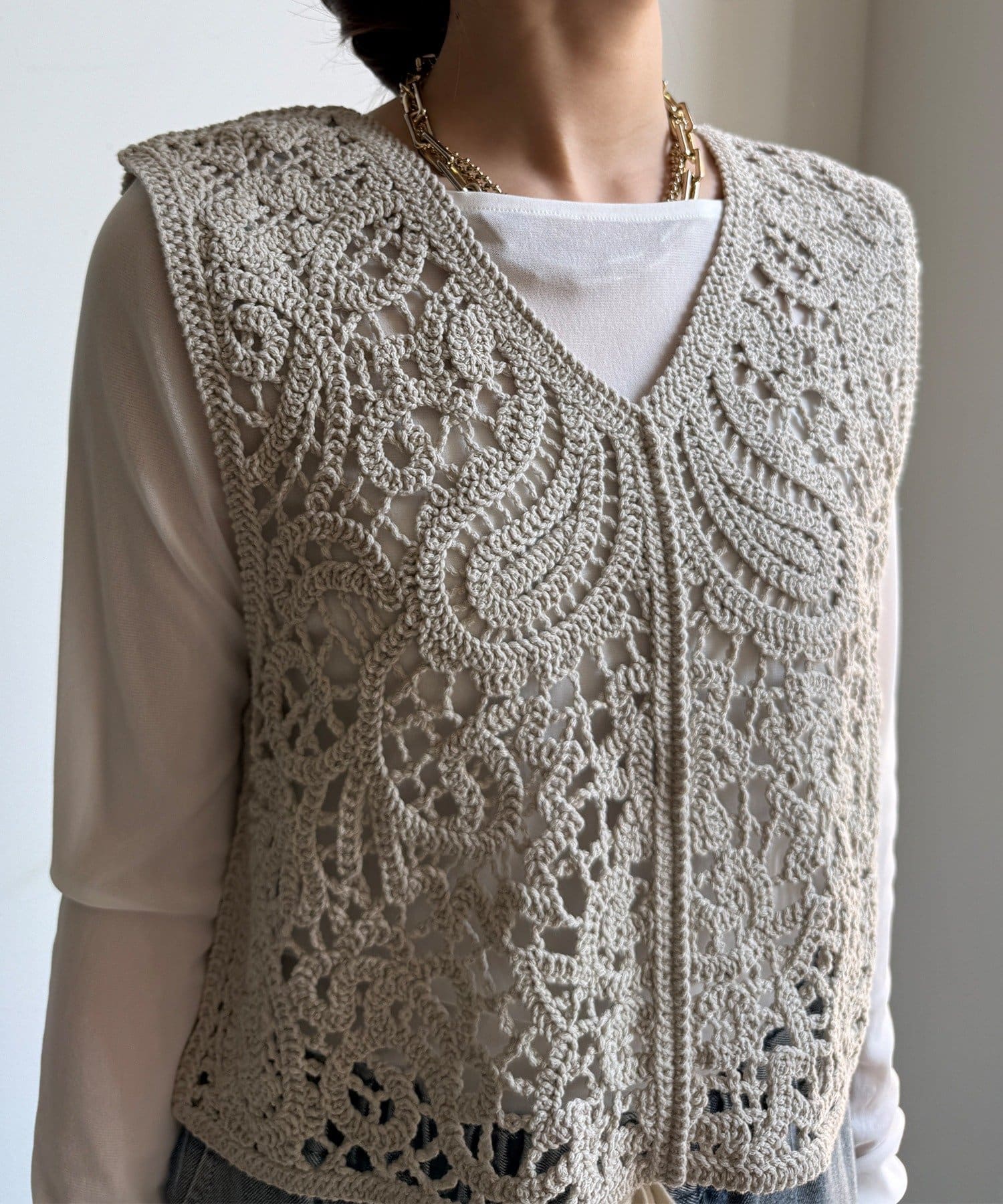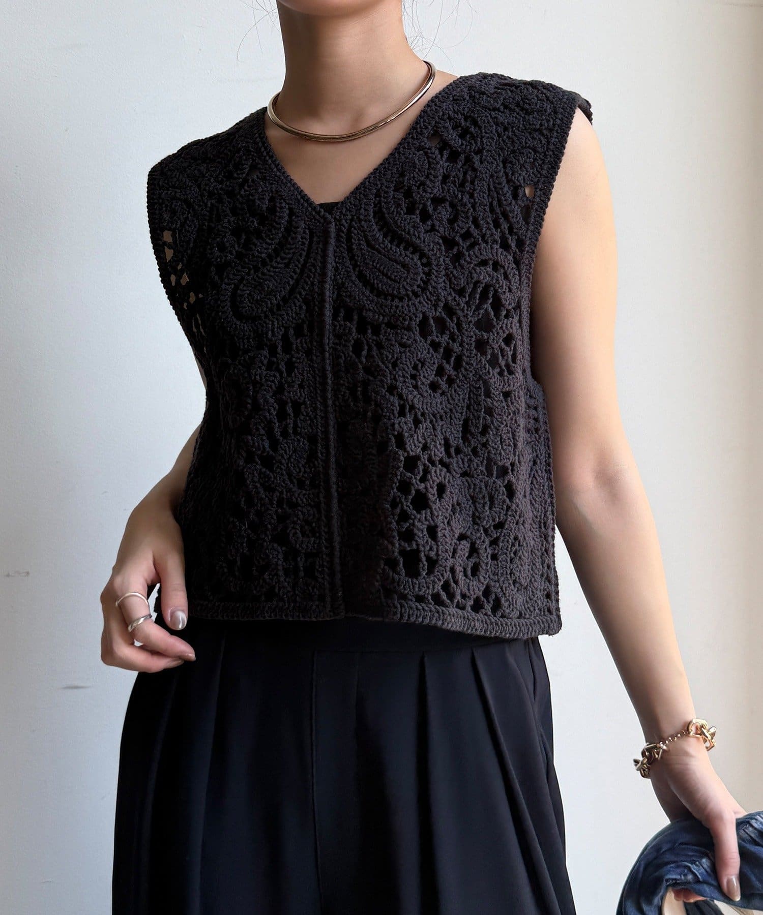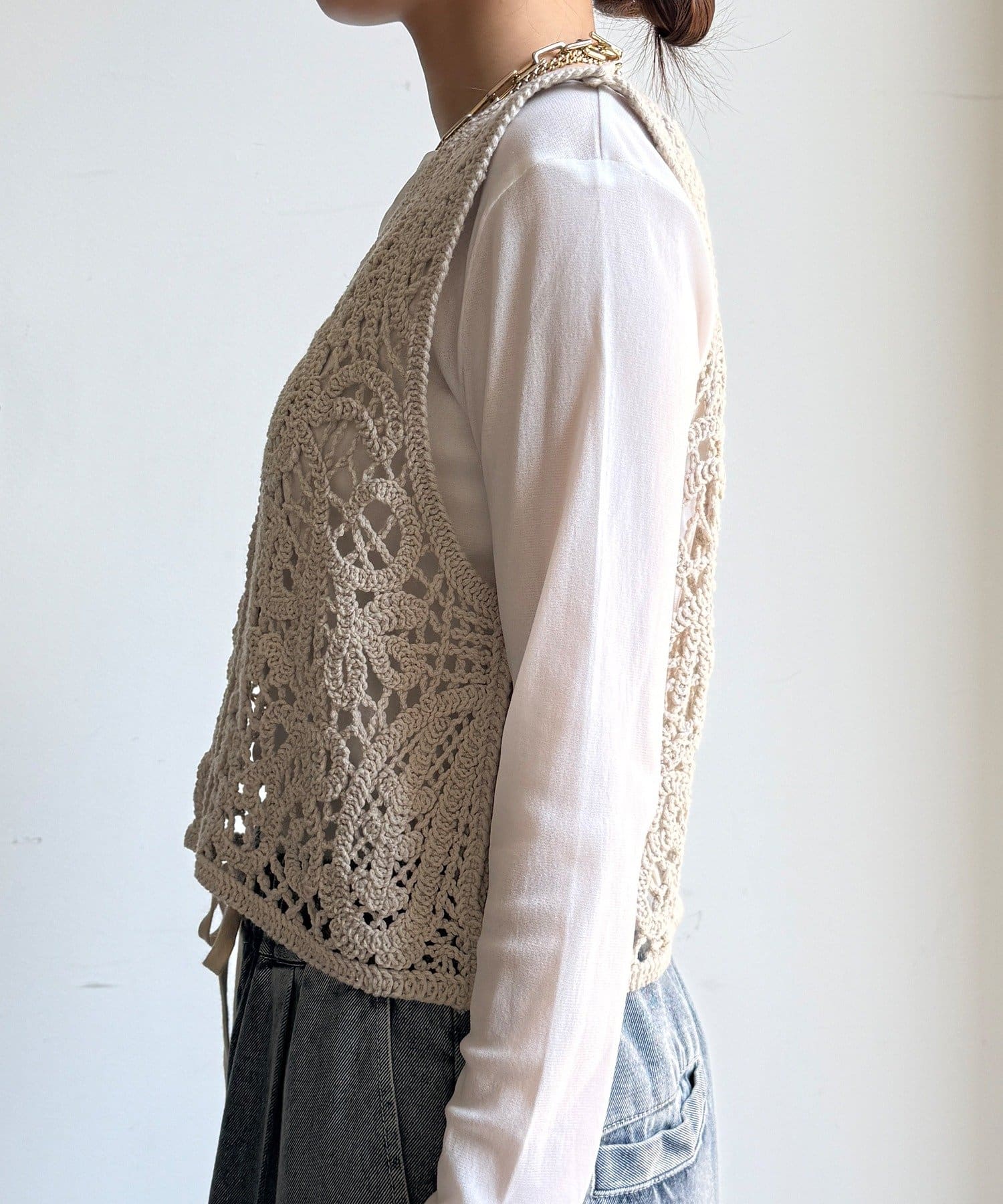 クロッシェ編みニットベスト