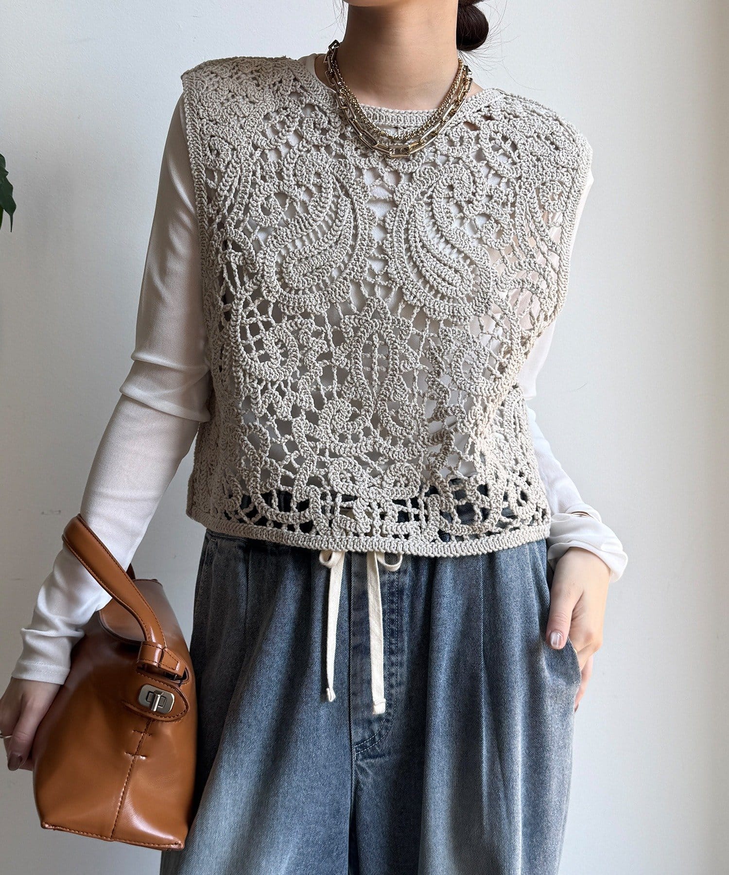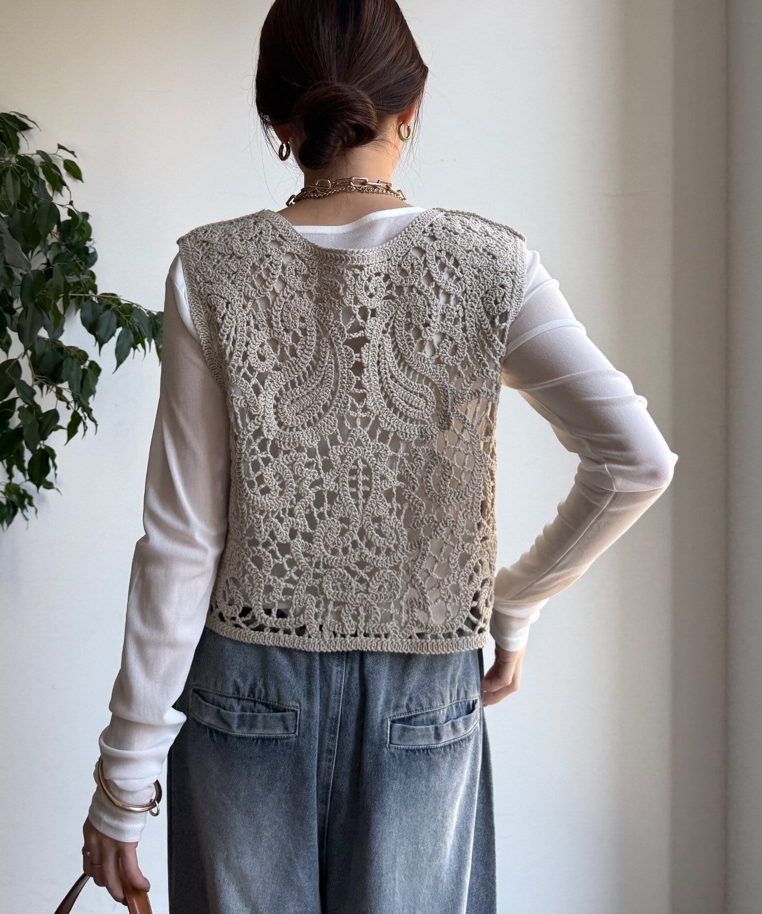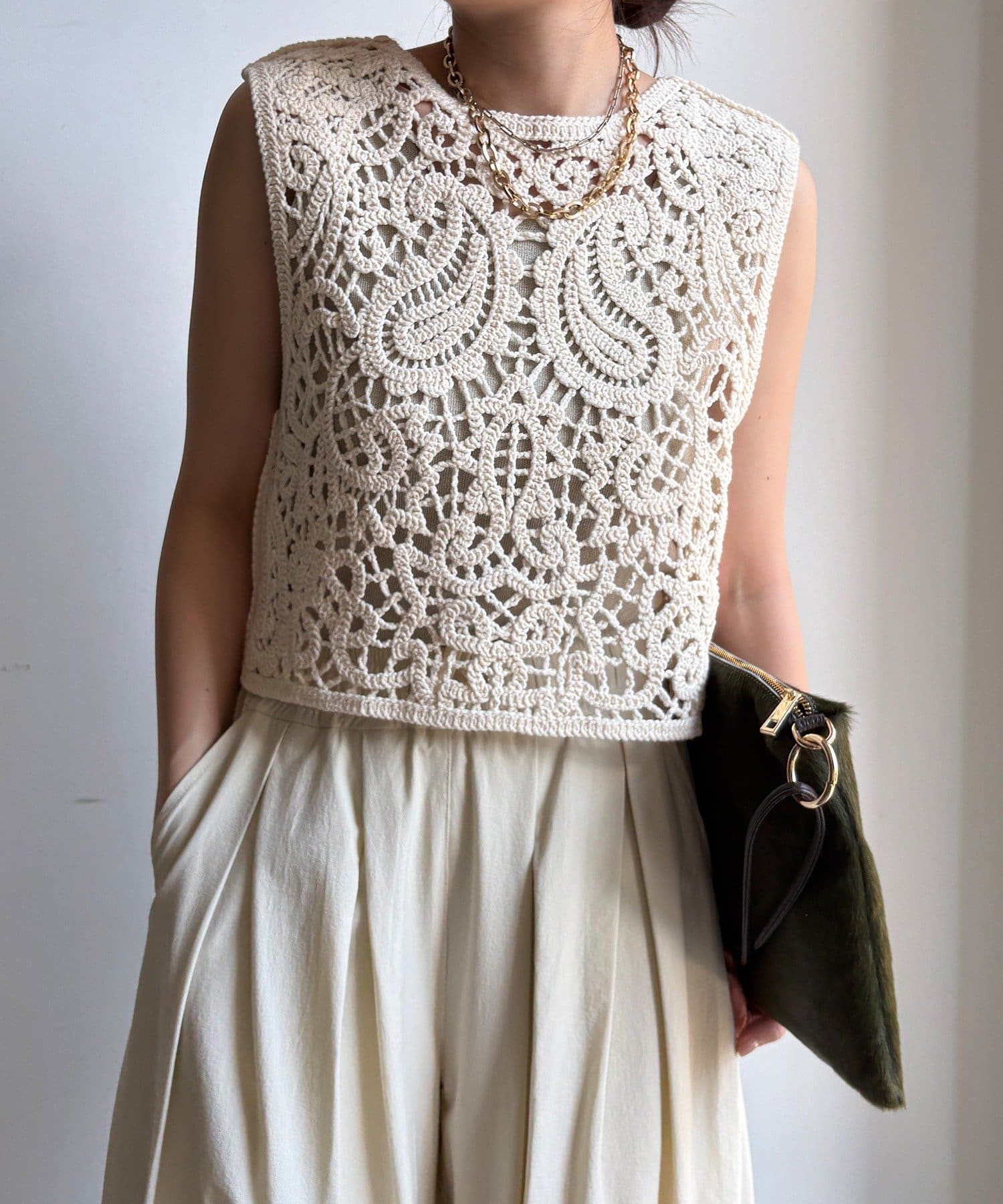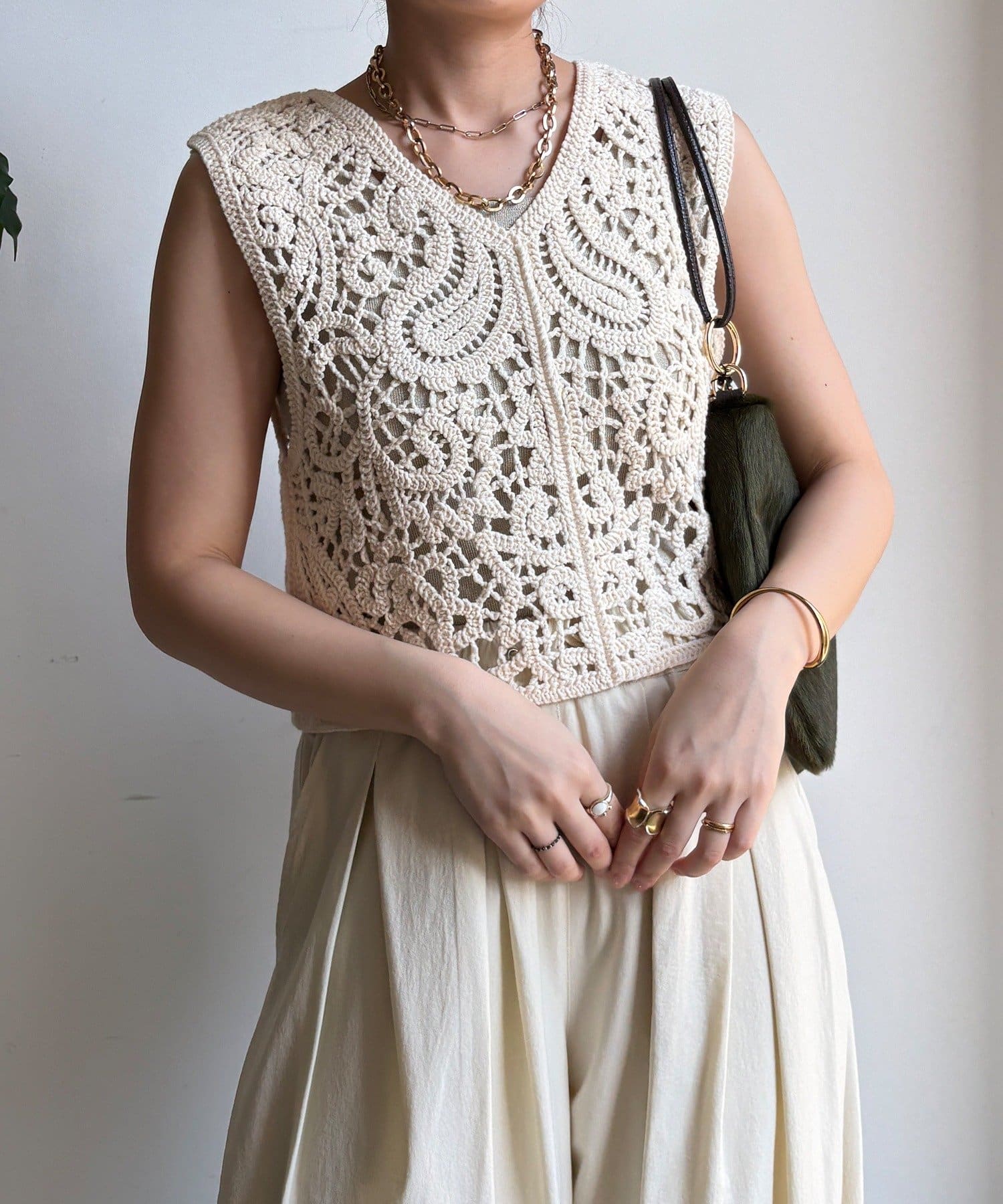 クロッシェ編みニットベスト