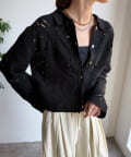 甘くなりがちなレースを、シャツライクな襟デザインと前開き仕様にすることで、