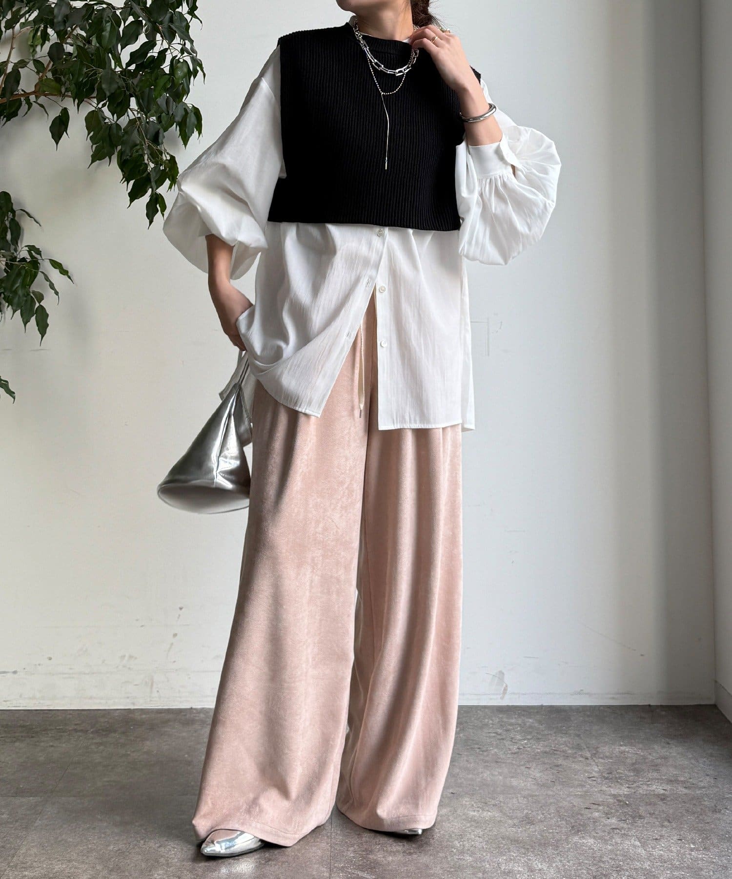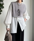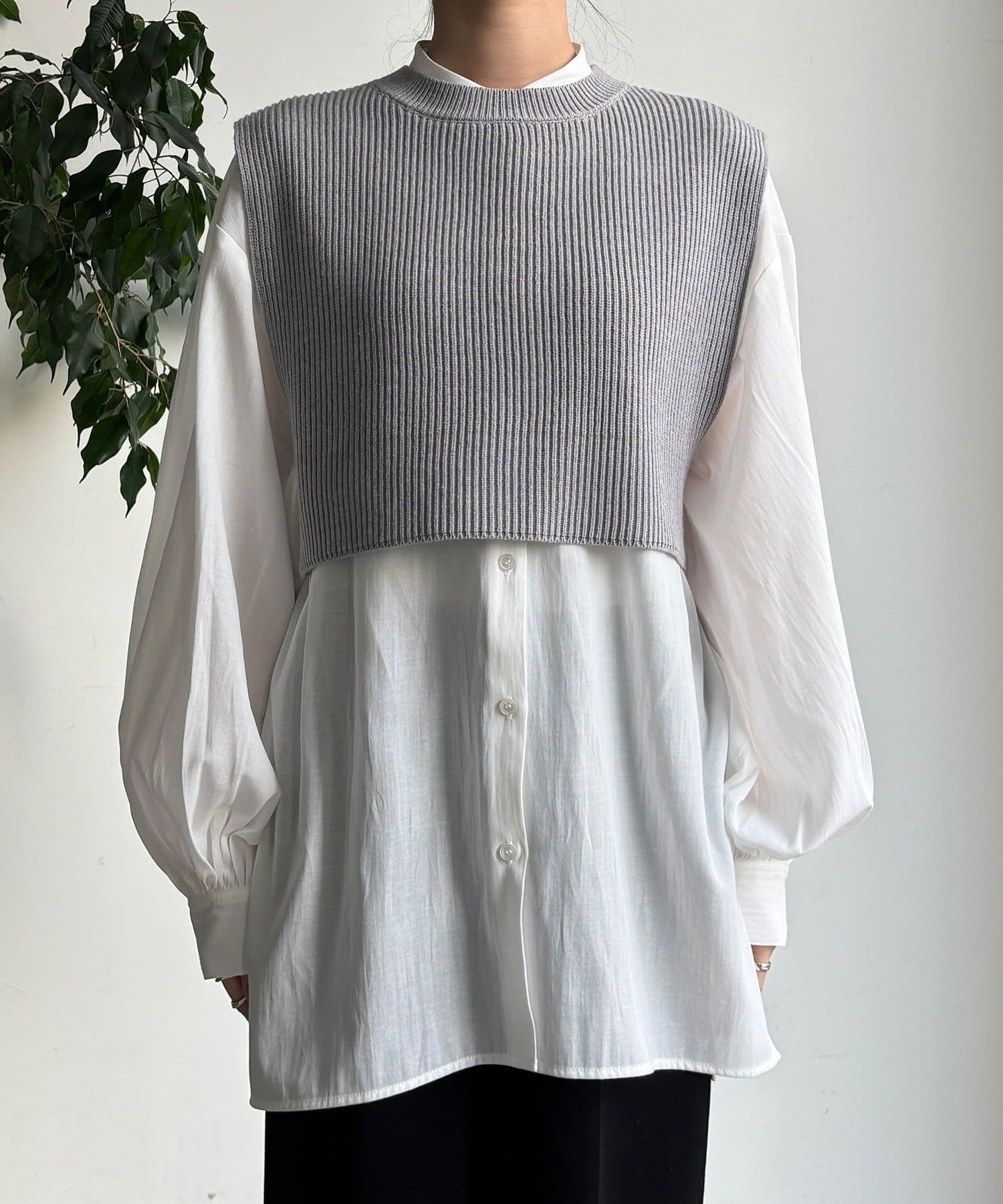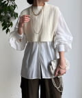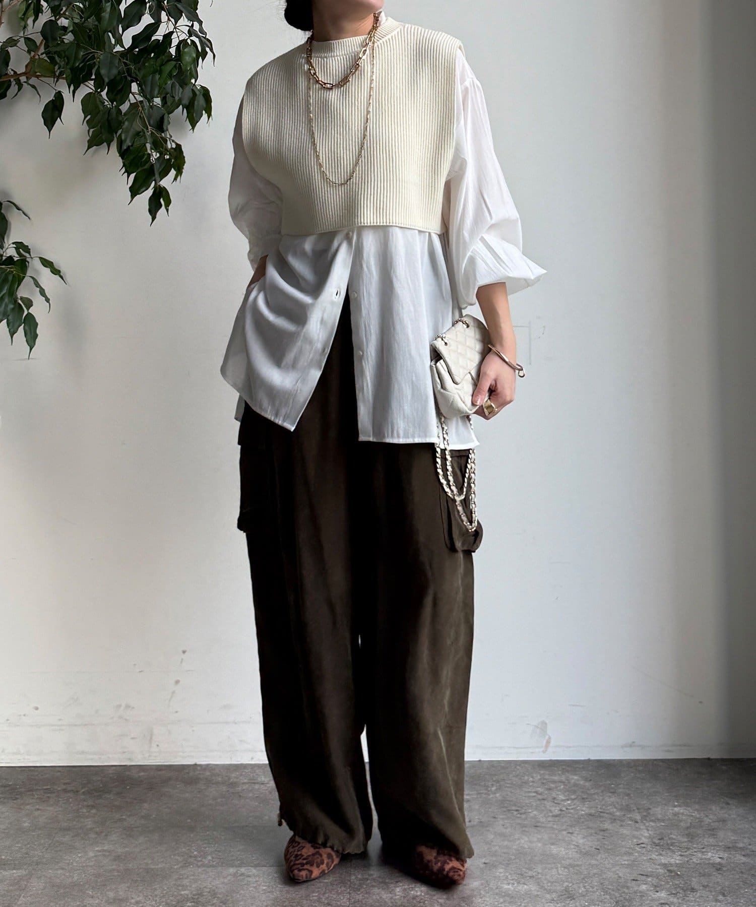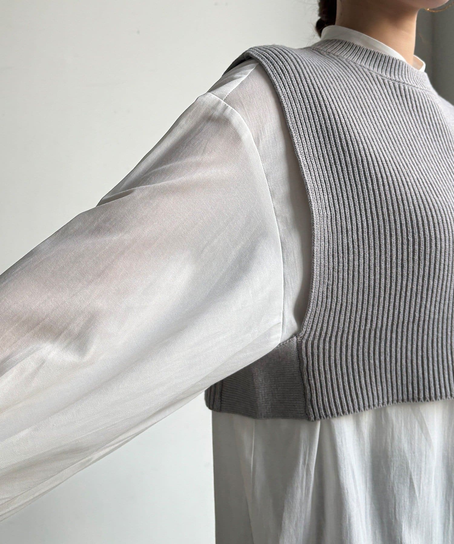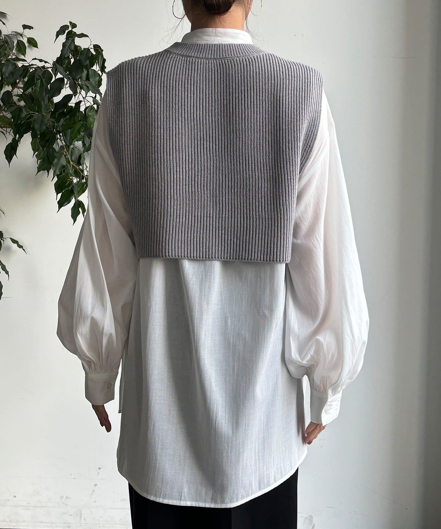 シャツの袖のボリューム感と程よい長さにニットベストを