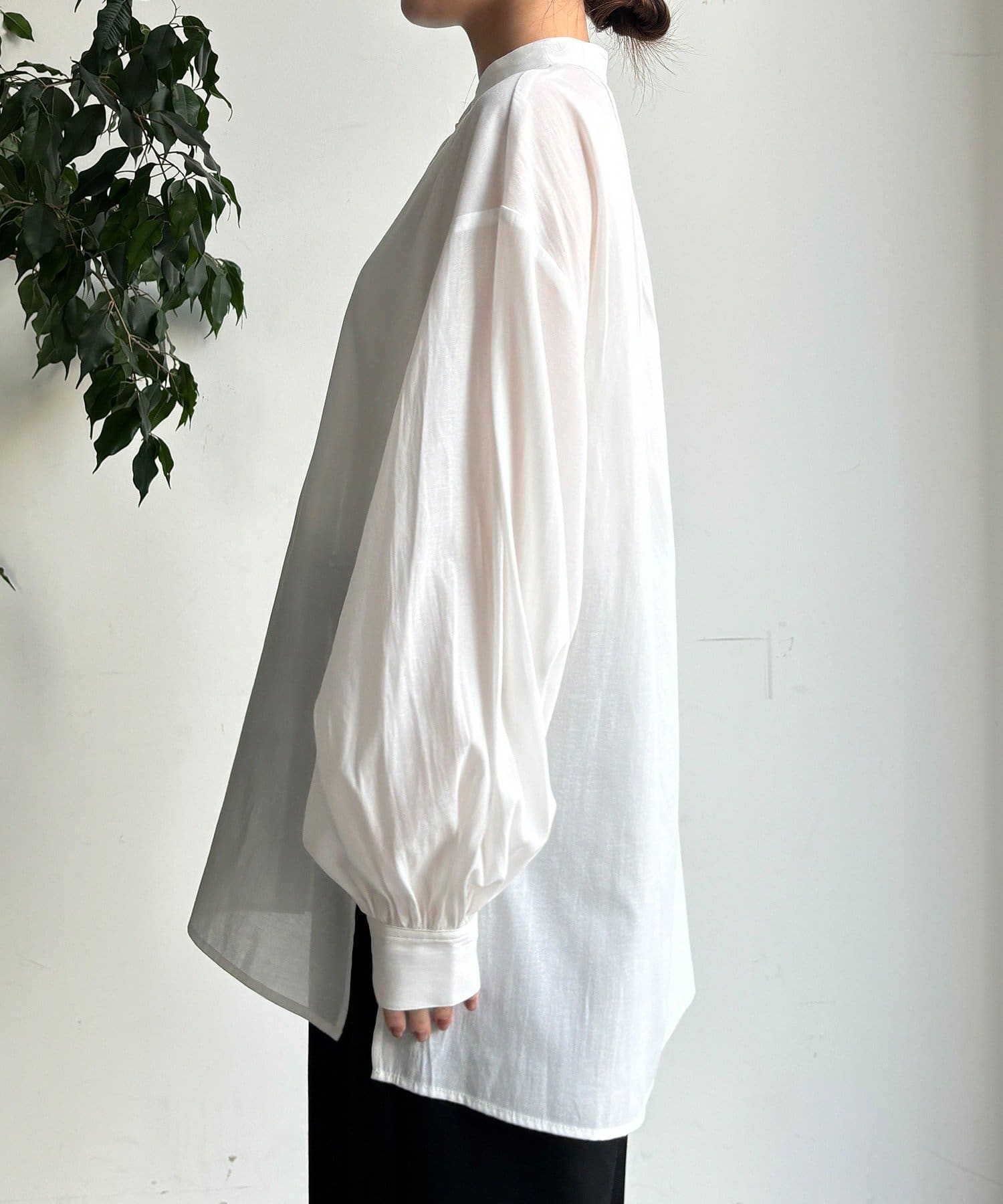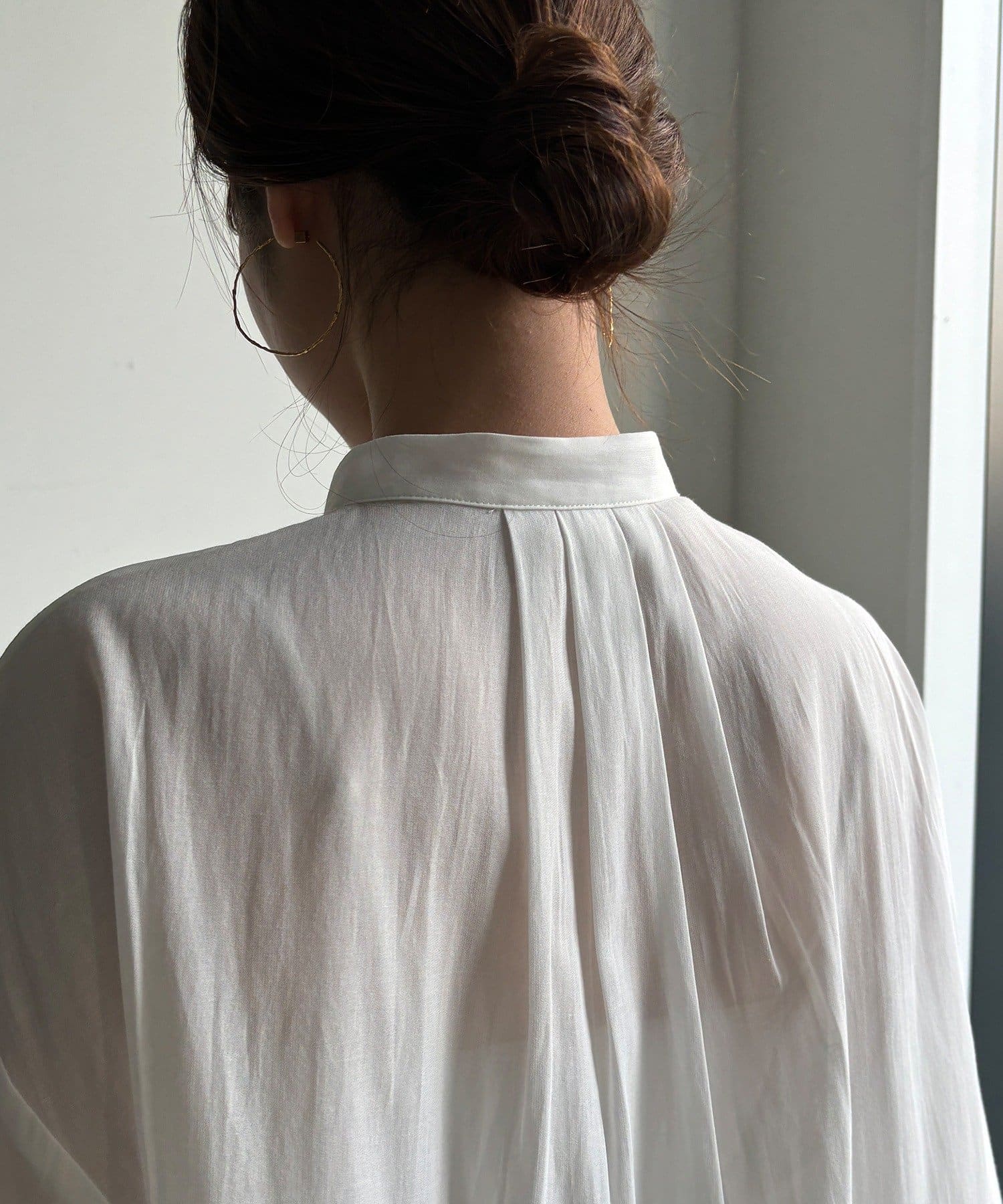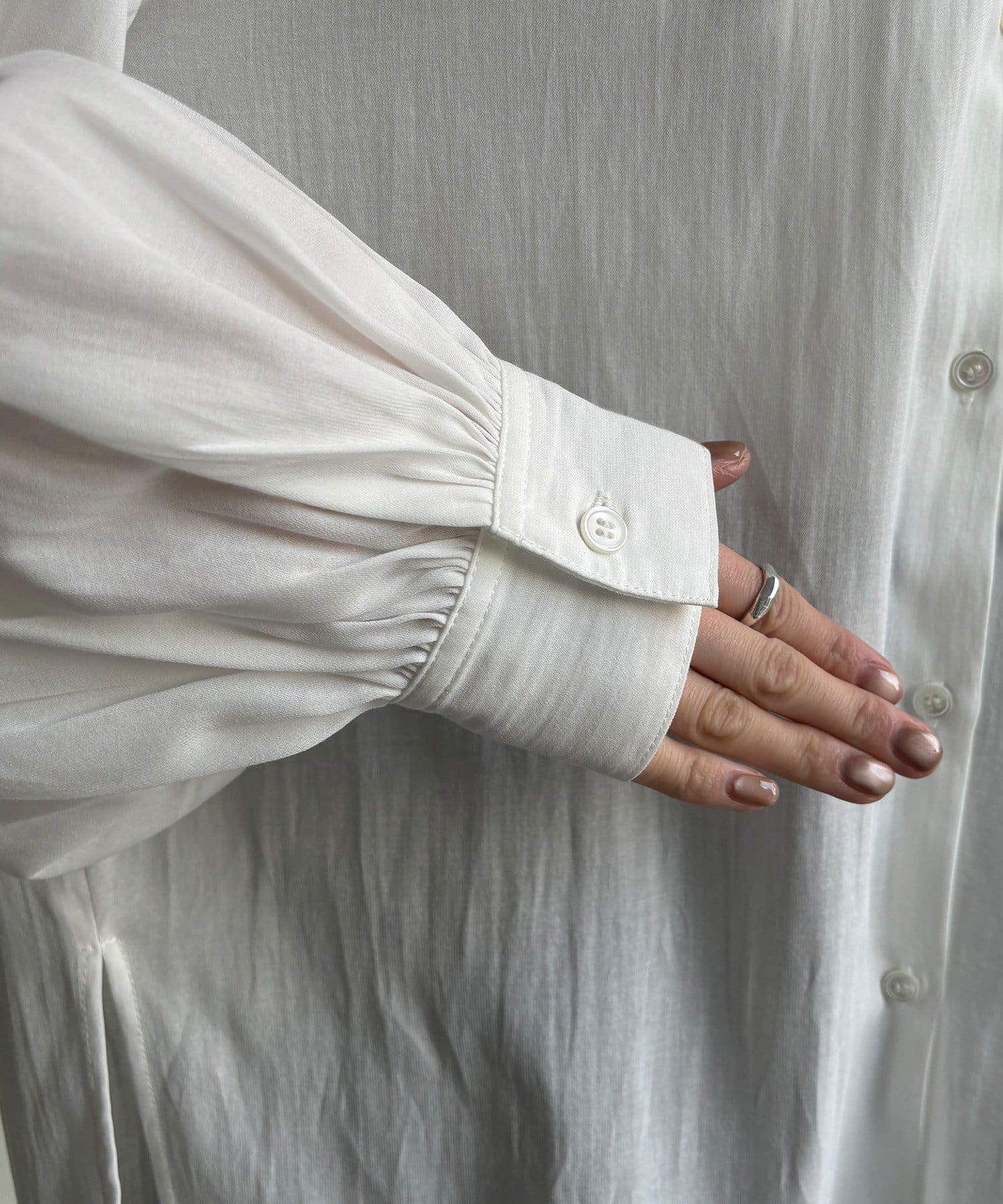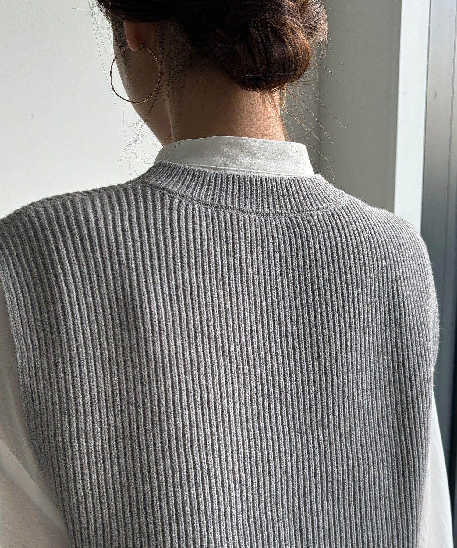 シャツの袖のボリューム感と程よい長さにニットベストを