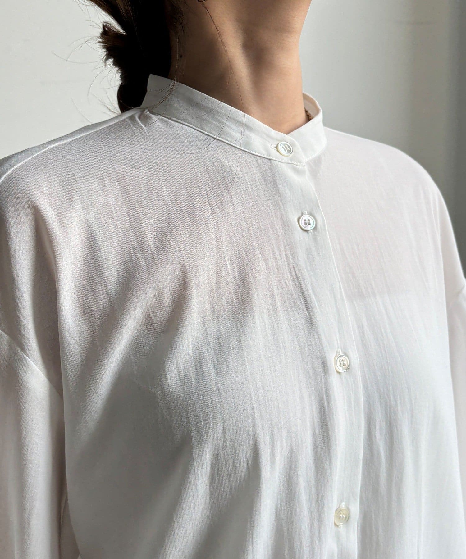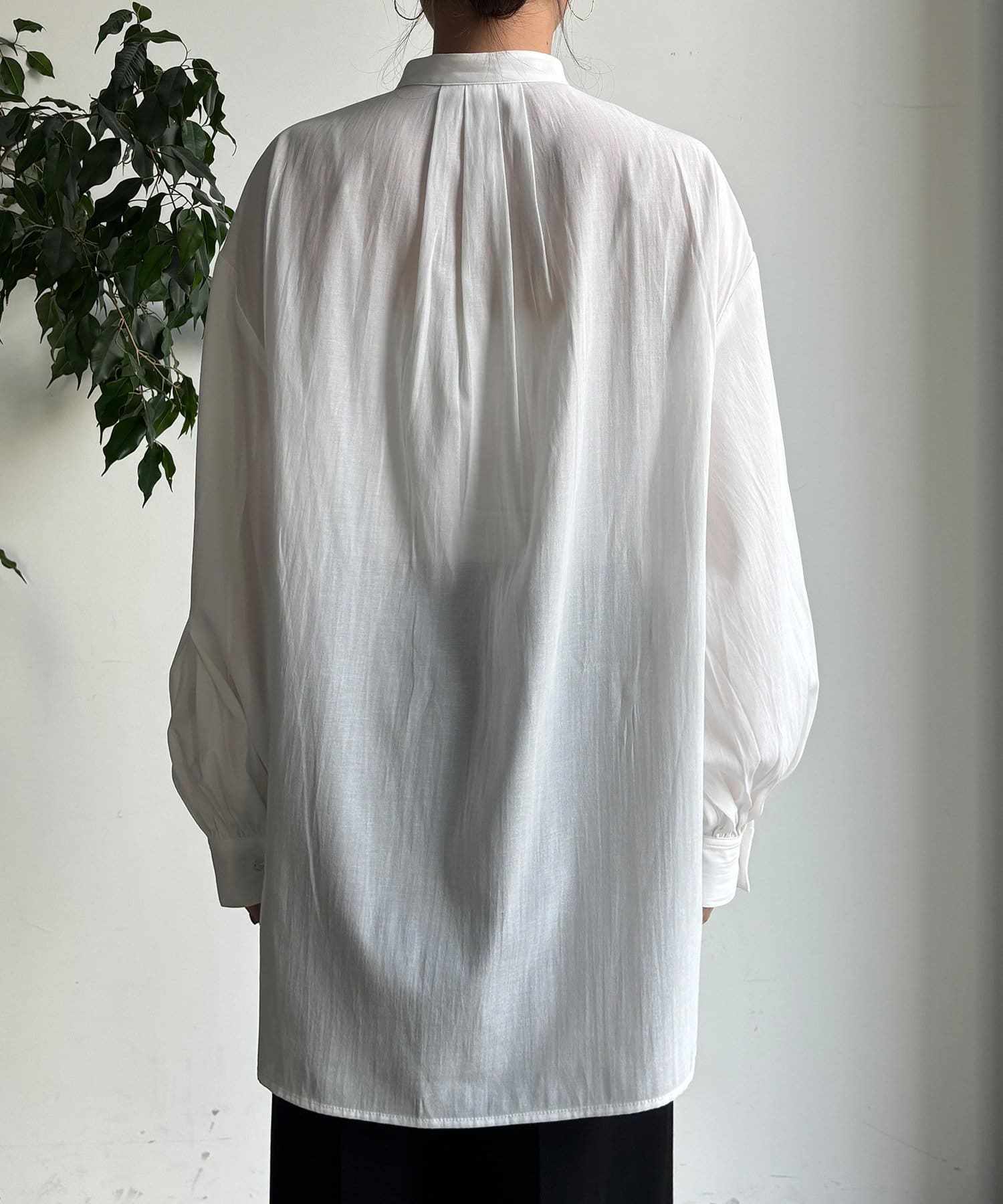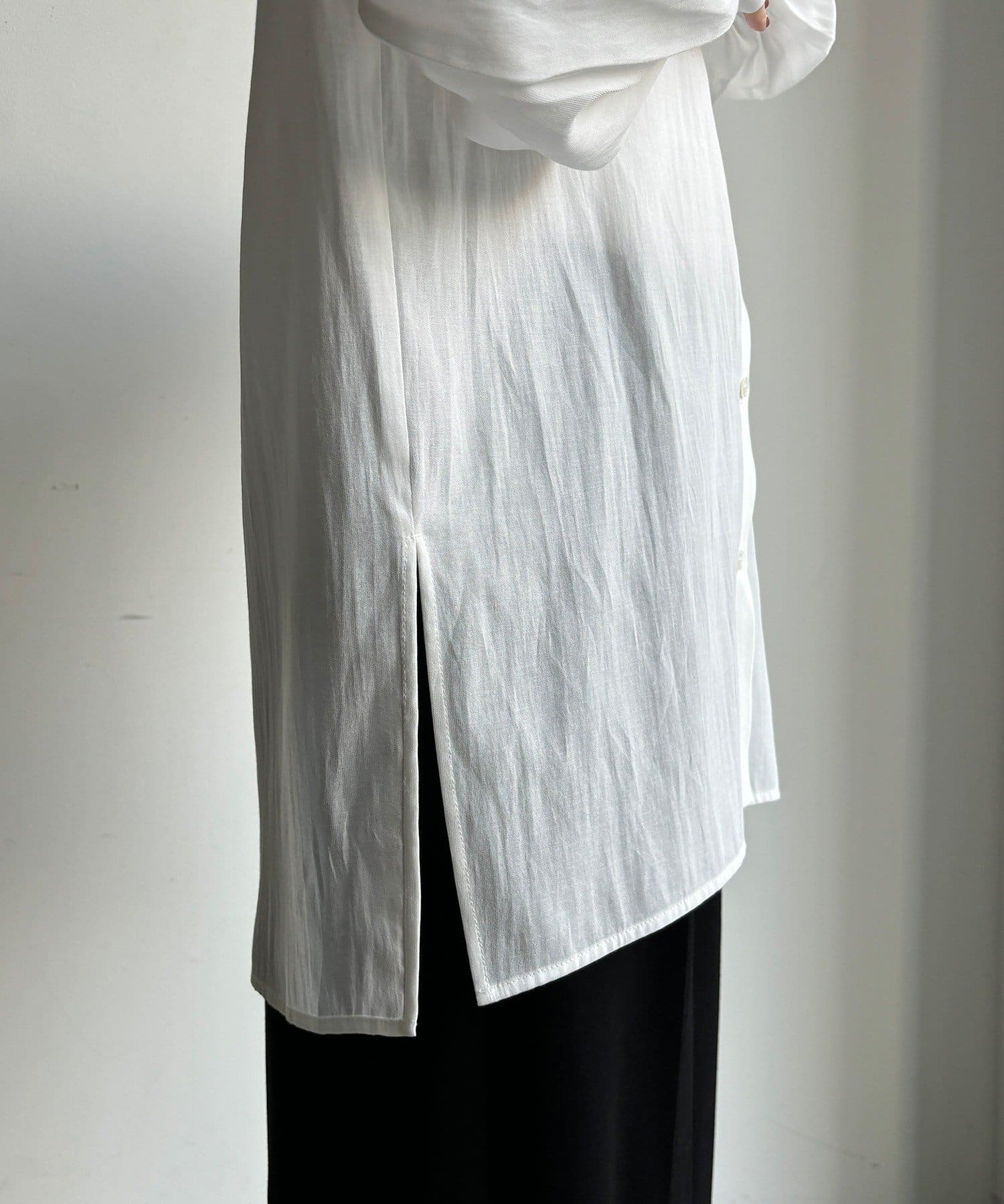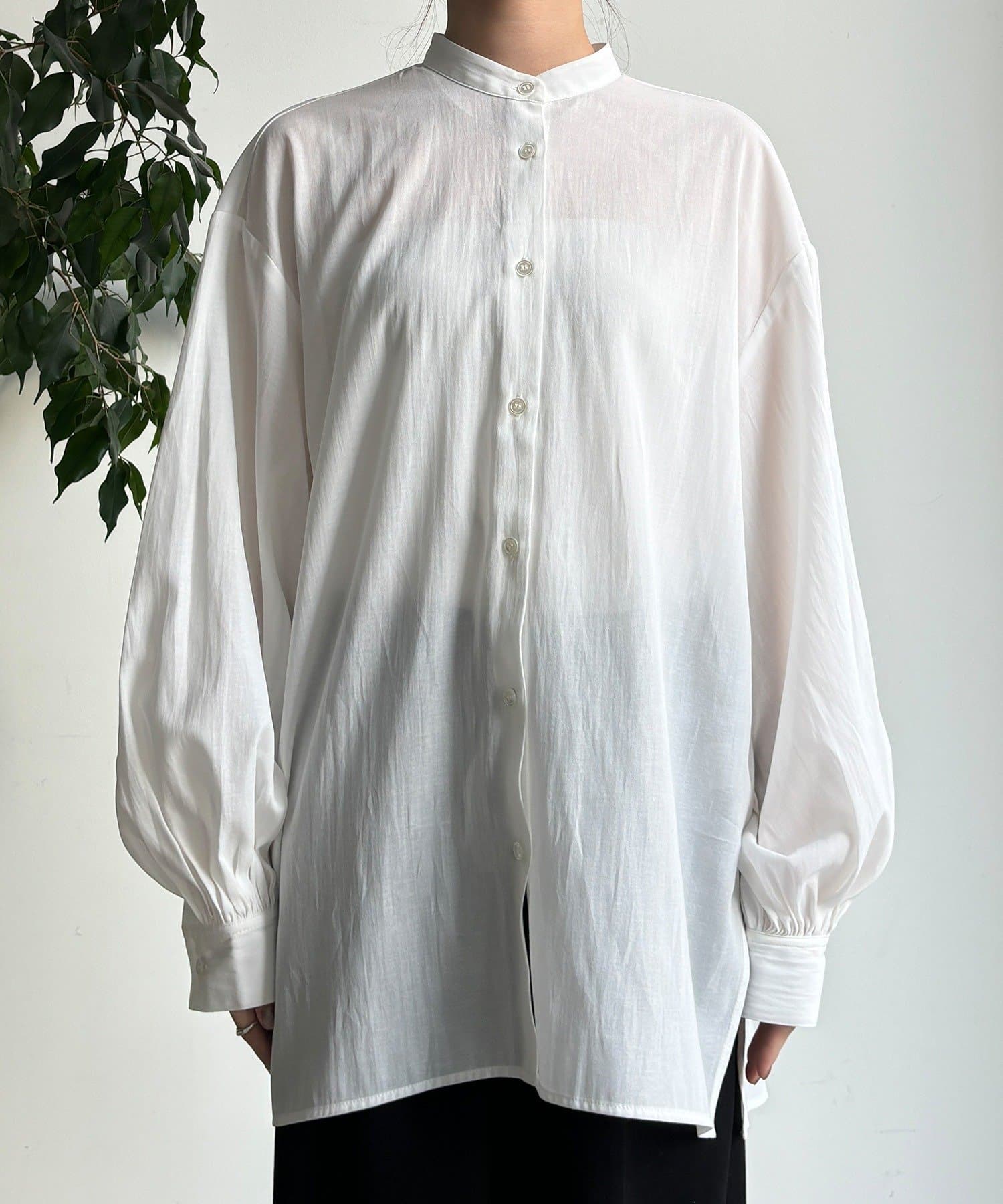 シャツの袖のボリューム感と程よい長さにニットベストを