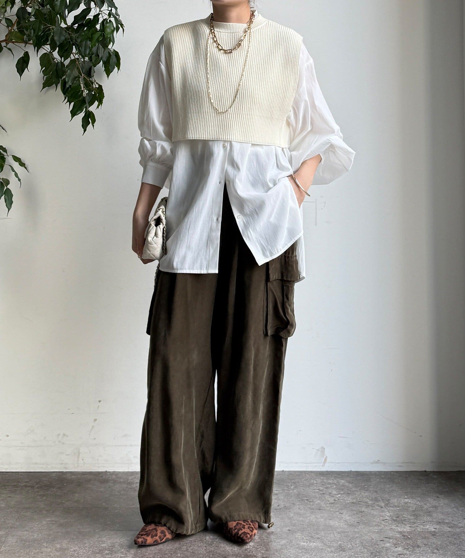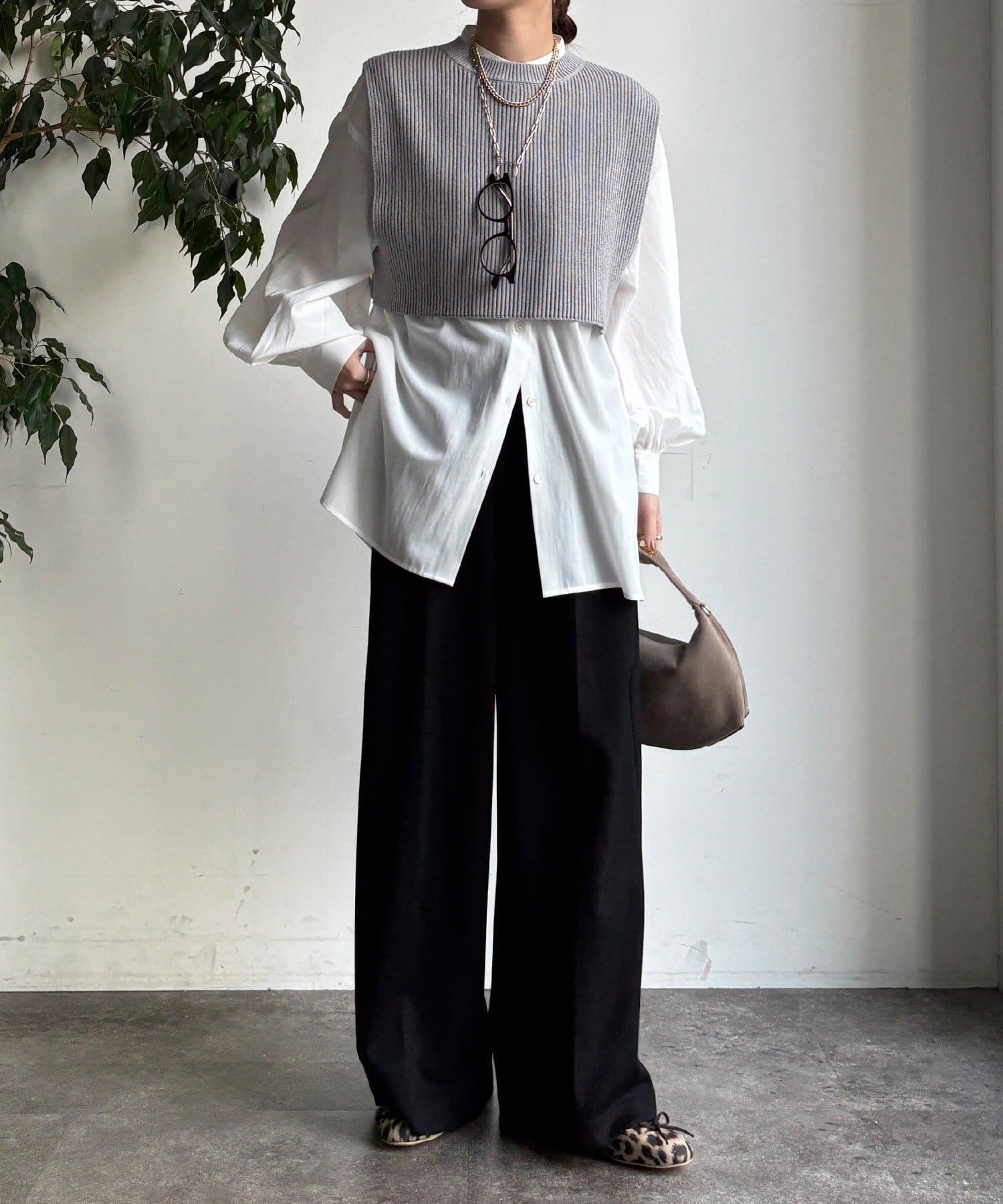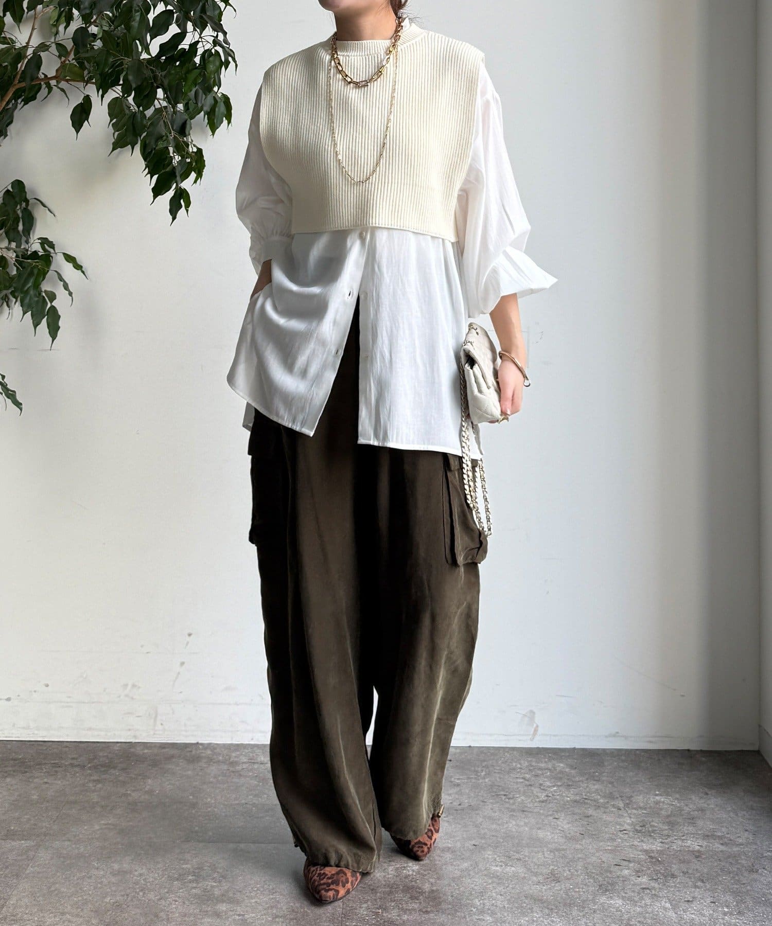 ベスト×カットソーでカジュアルに、シャツだけで大人っぽく