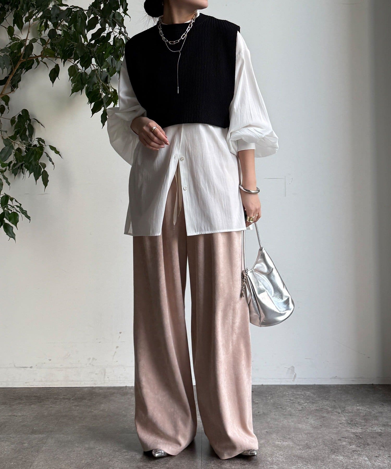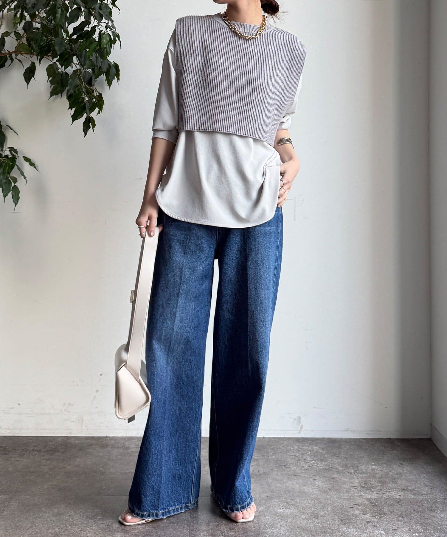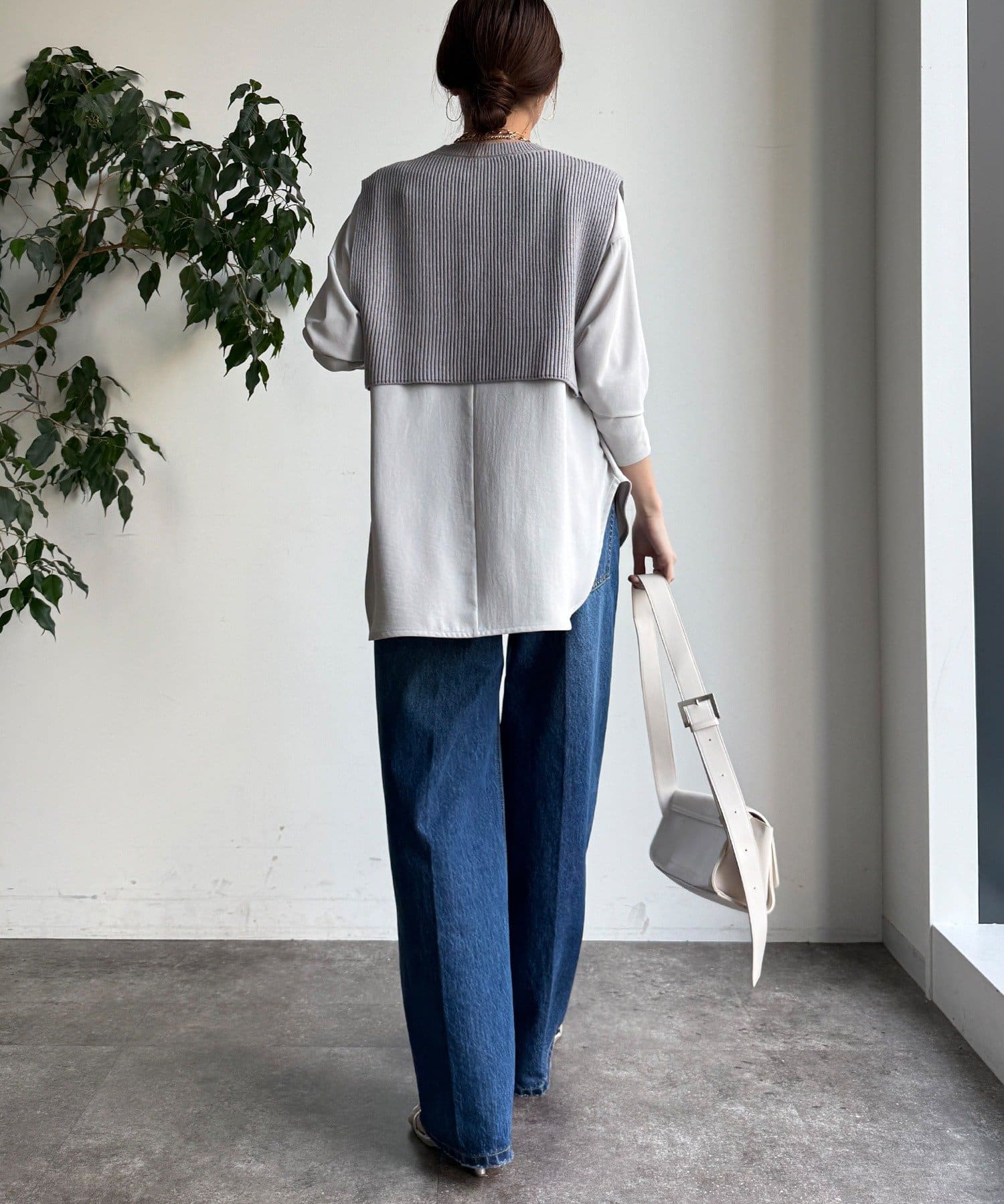 ベスト×カットソーでカジュアルに、シャツだけで大人っぽく