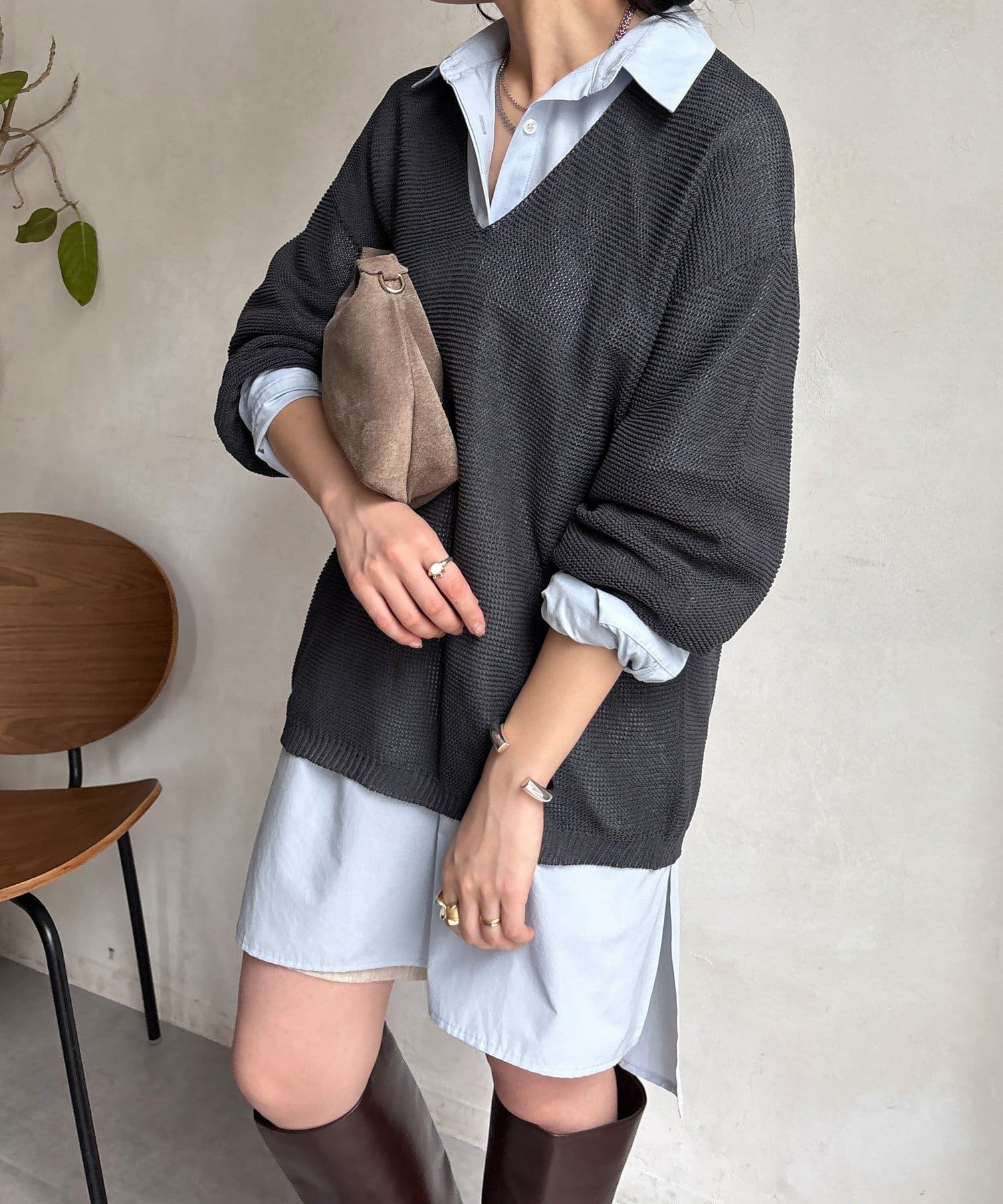 ほどよくラフ、きれいに決まる深Vプルオーバー
