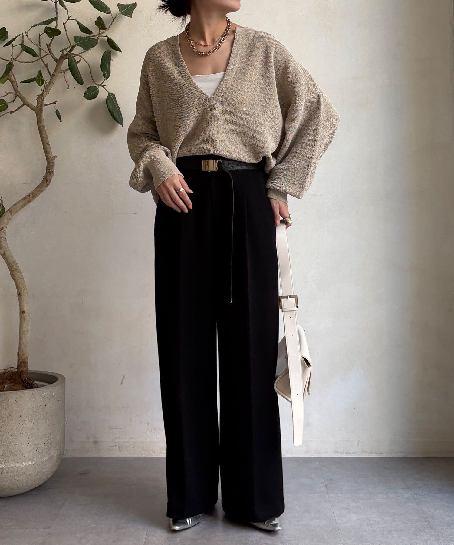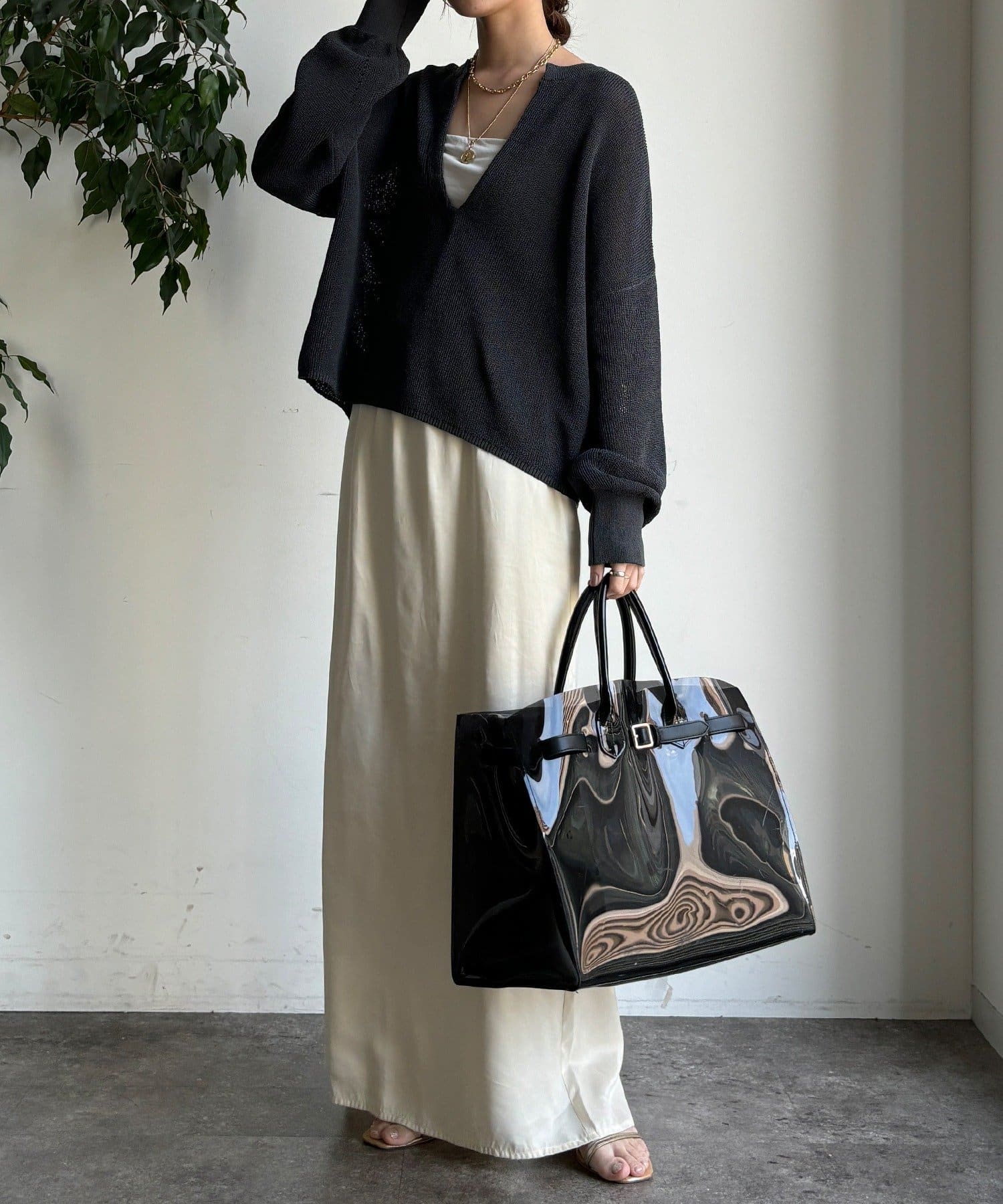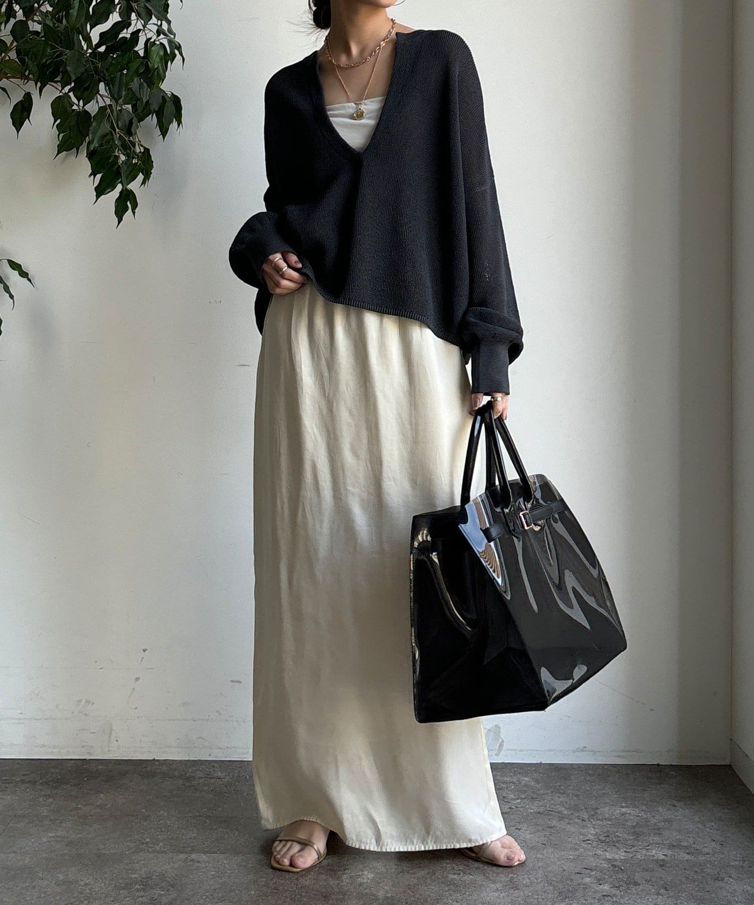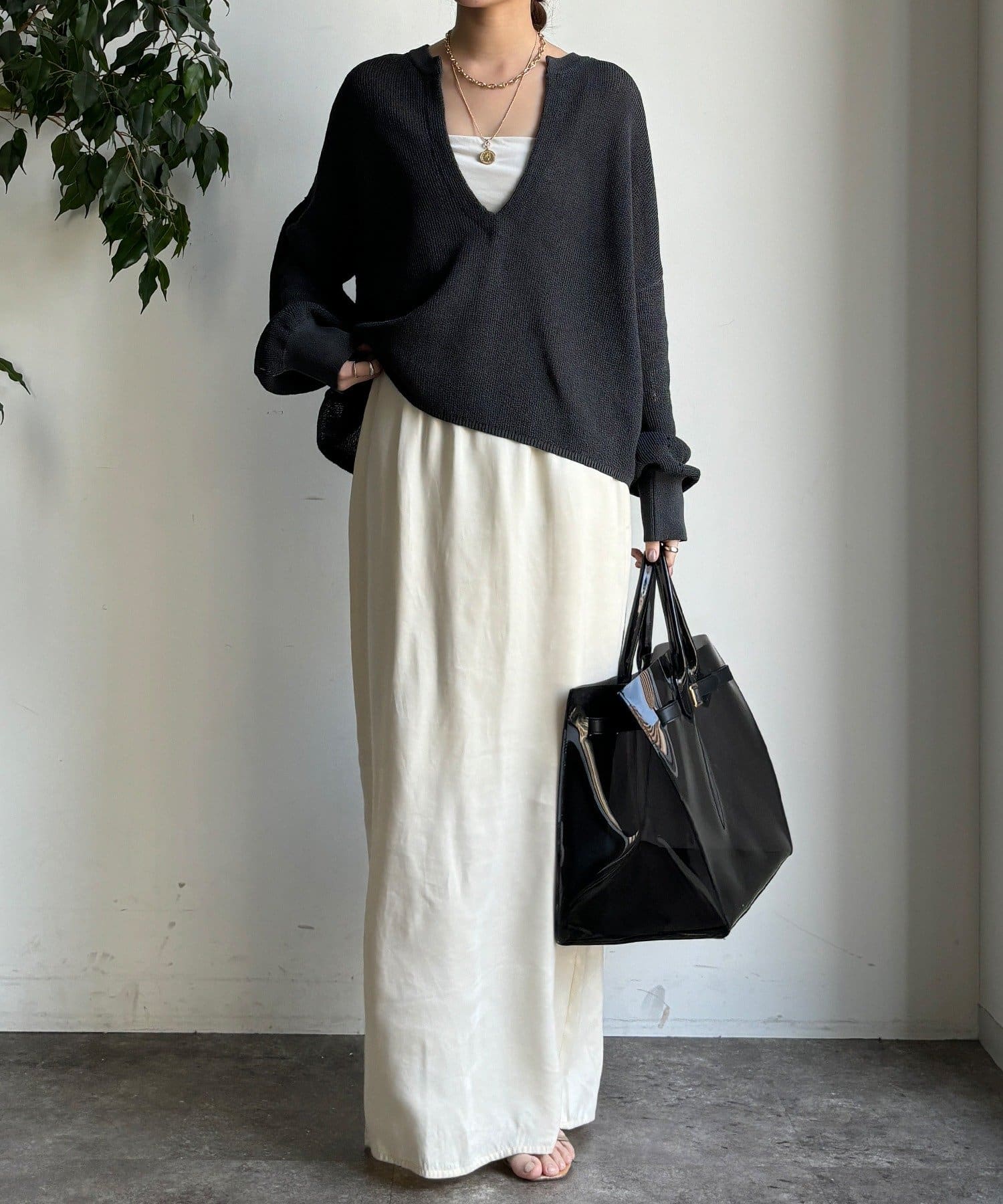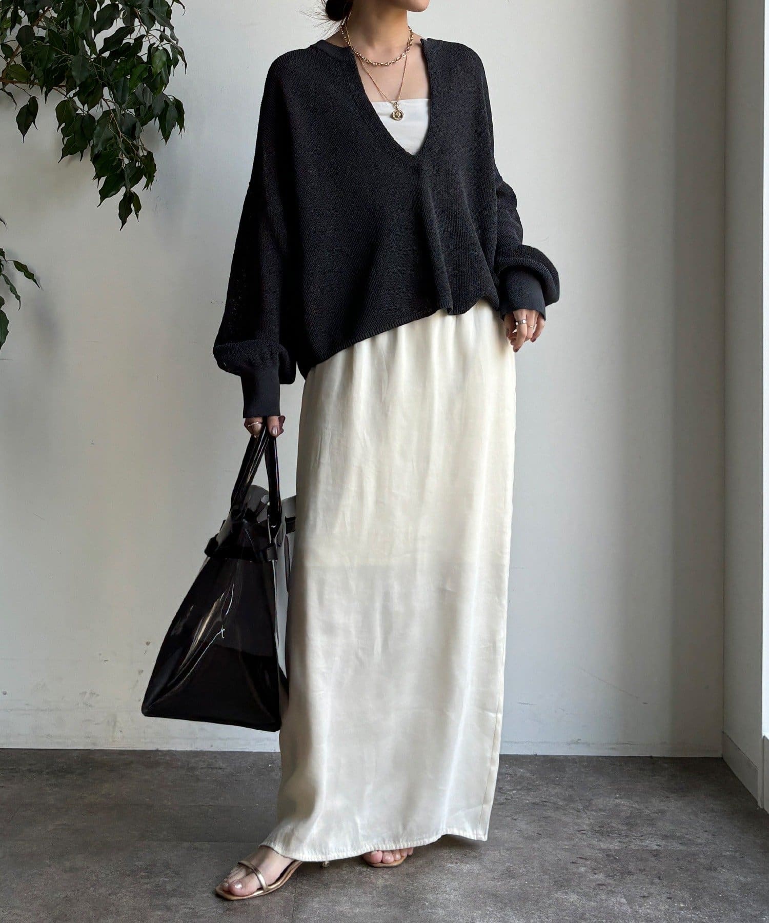 シャツと合わせるとすこしカジュアルに、キャミソールと合わせると
