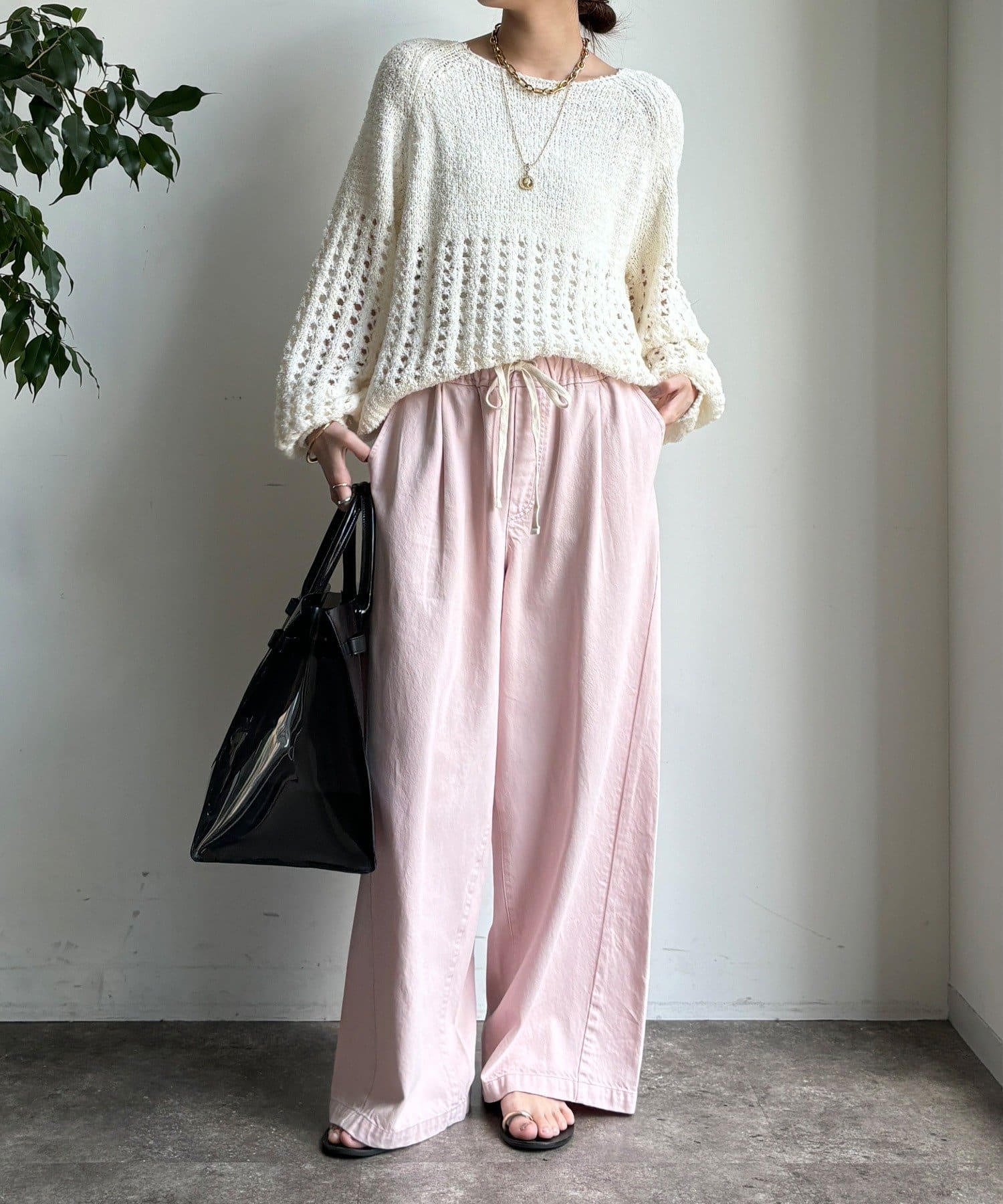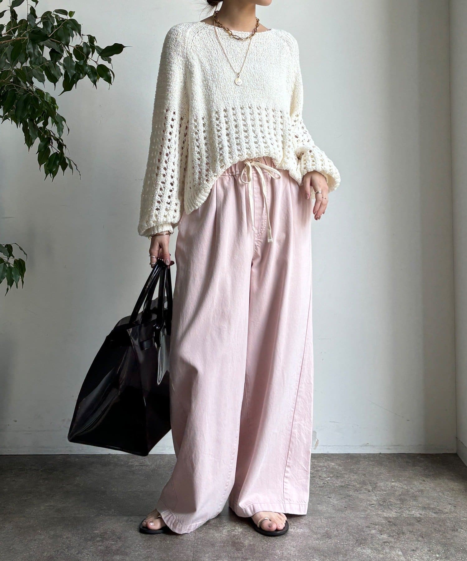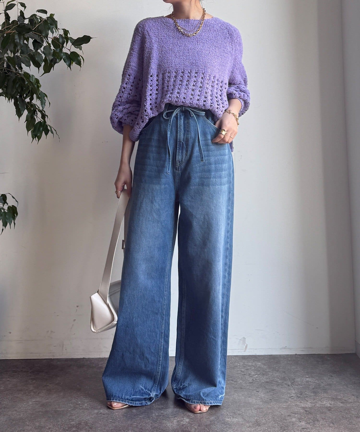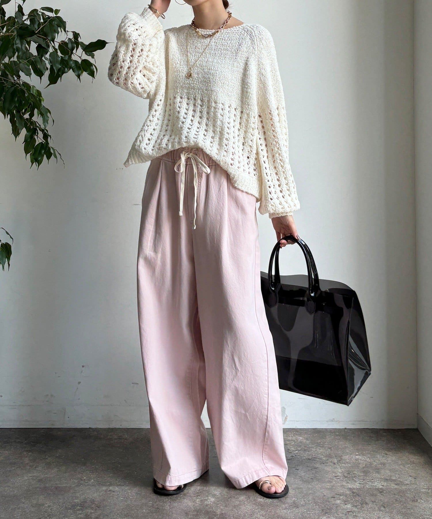 程よい透け感が大人の余裕を感じさせる、軽やかな雰囲気のニットです。