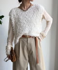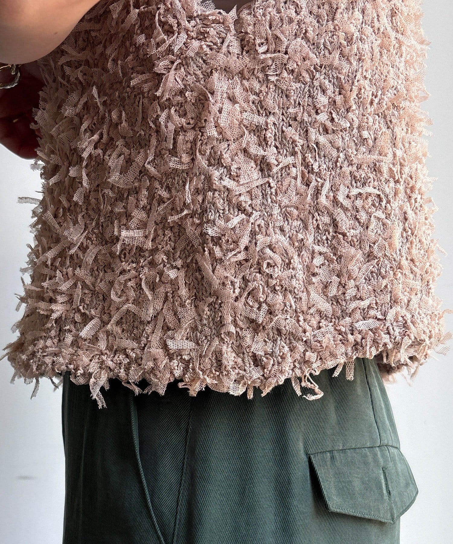 繊細なチュールヤーンを編んだ、軽さと表情が魅力の素材感と、