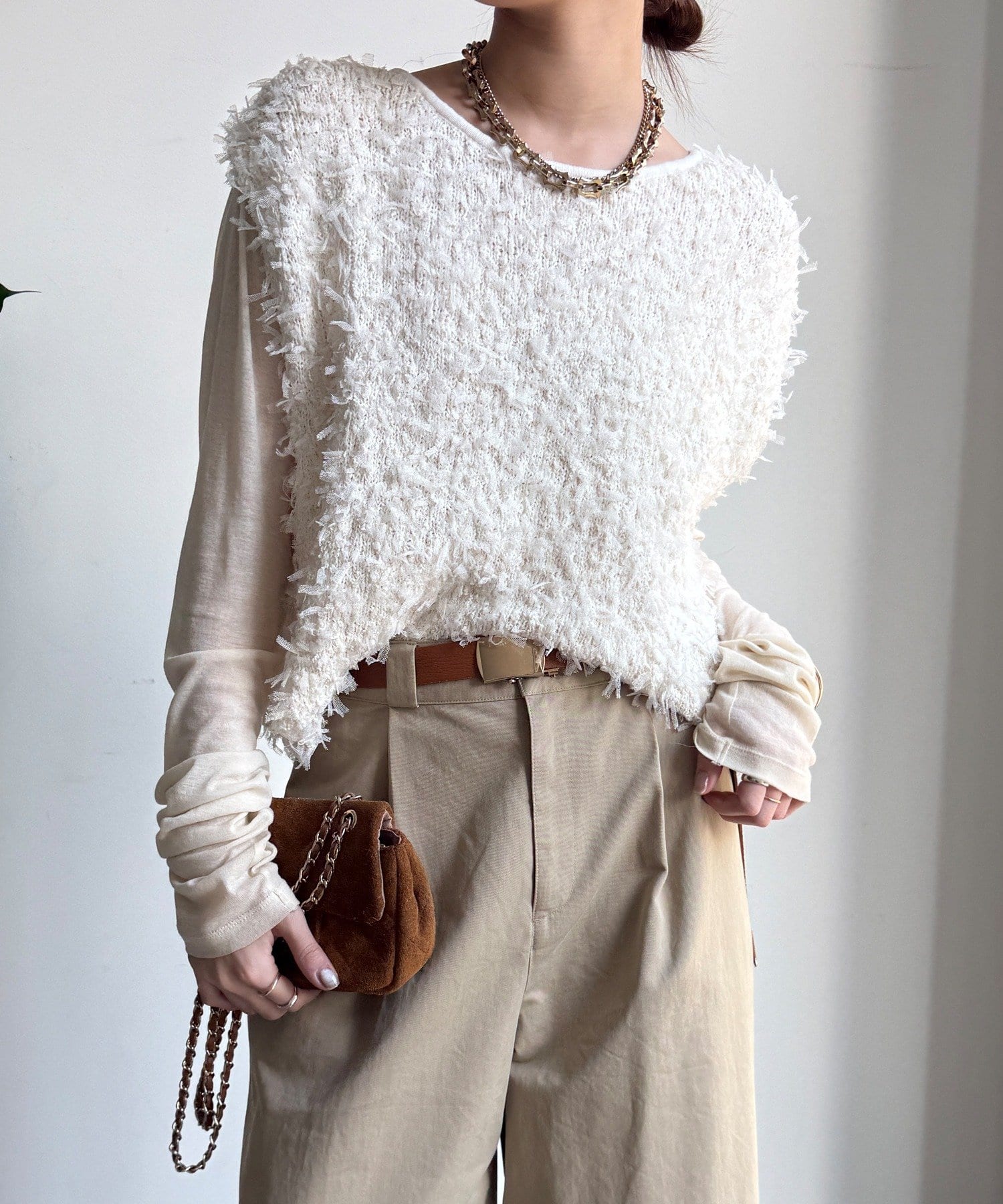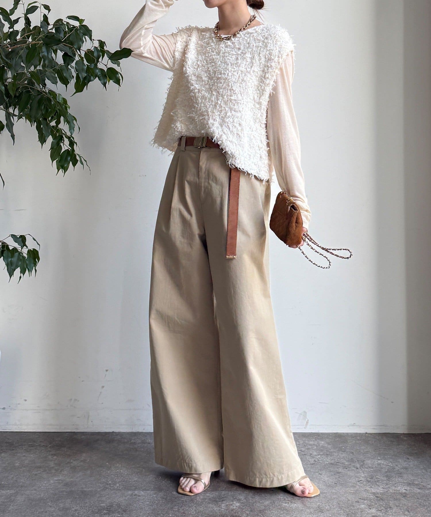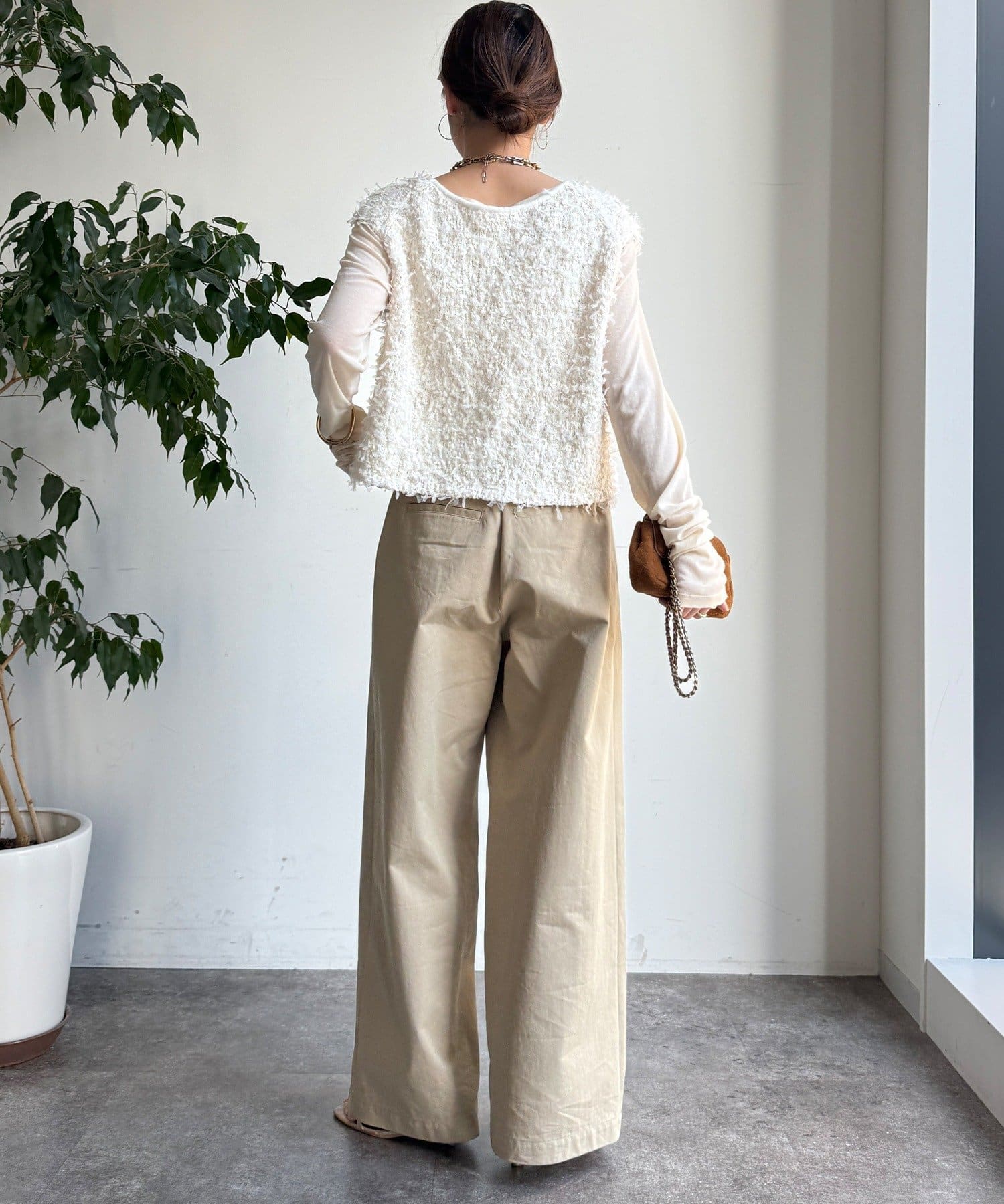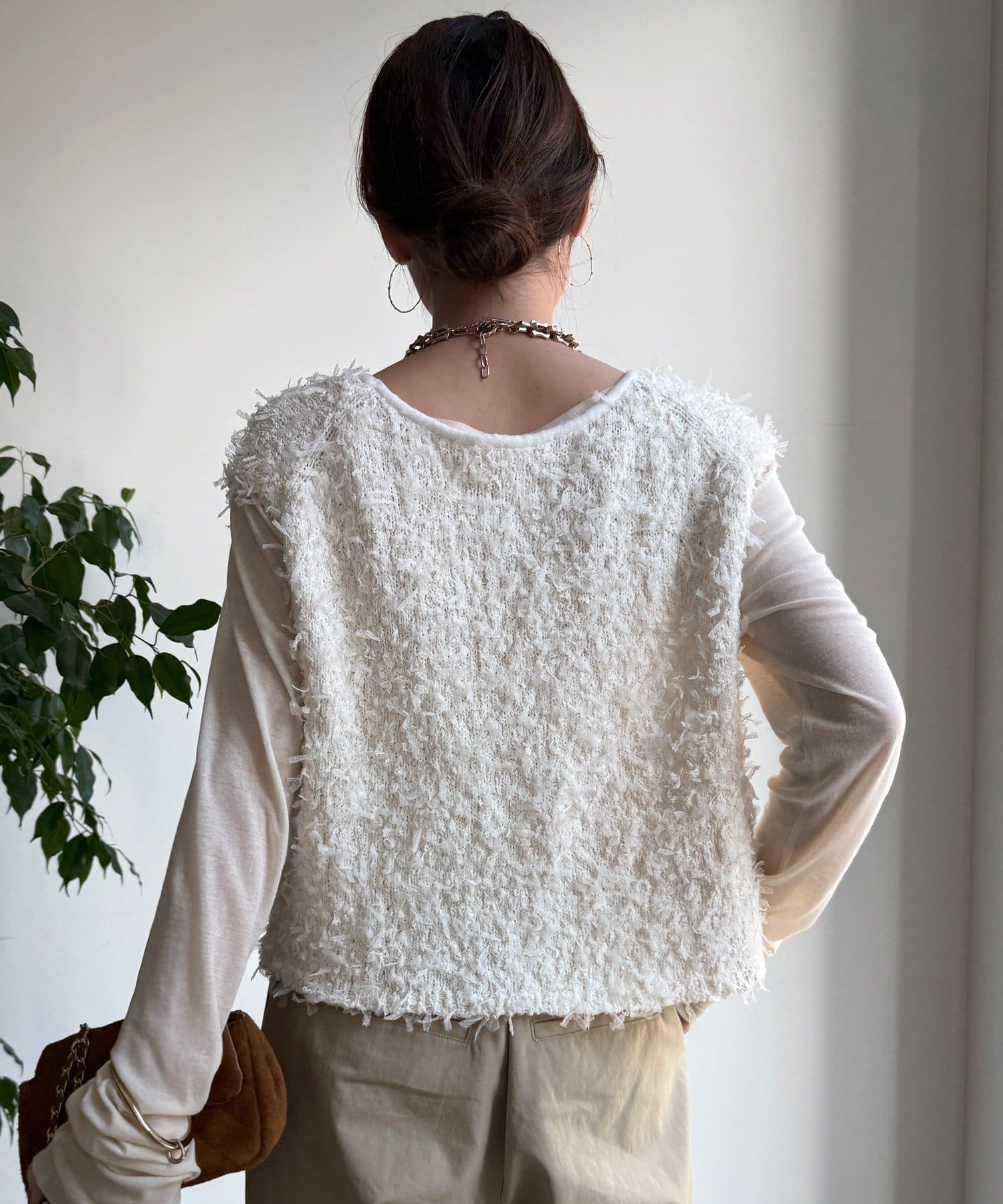 ふんわりとした表情がコーデに奥行きを与える、上品で抜け感のあるベスト。