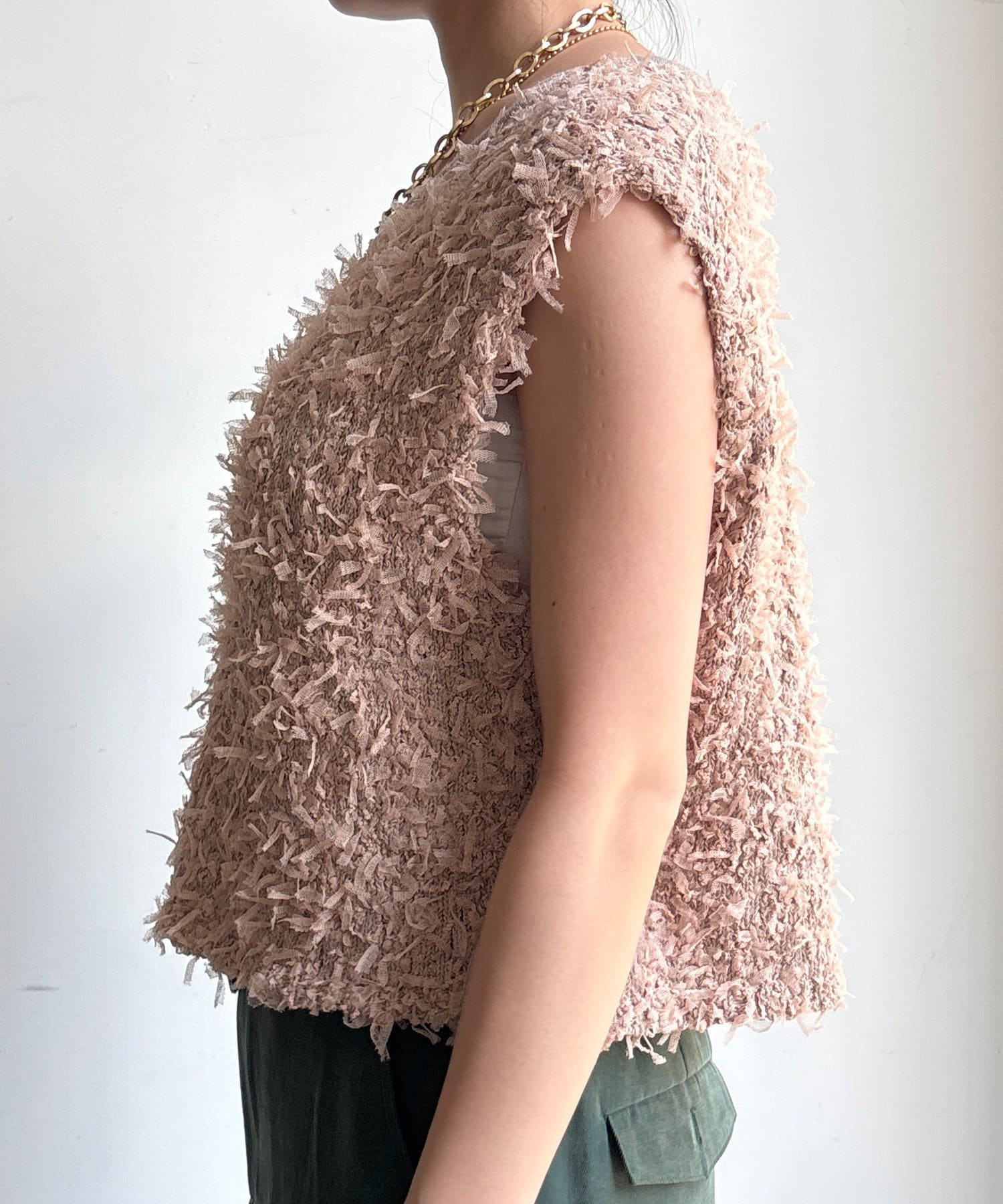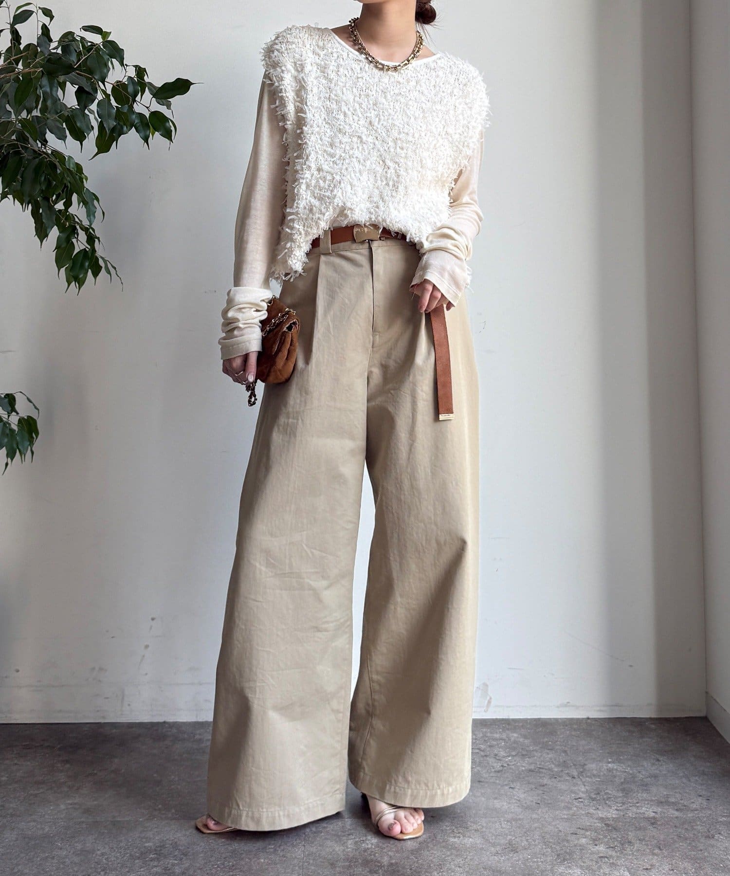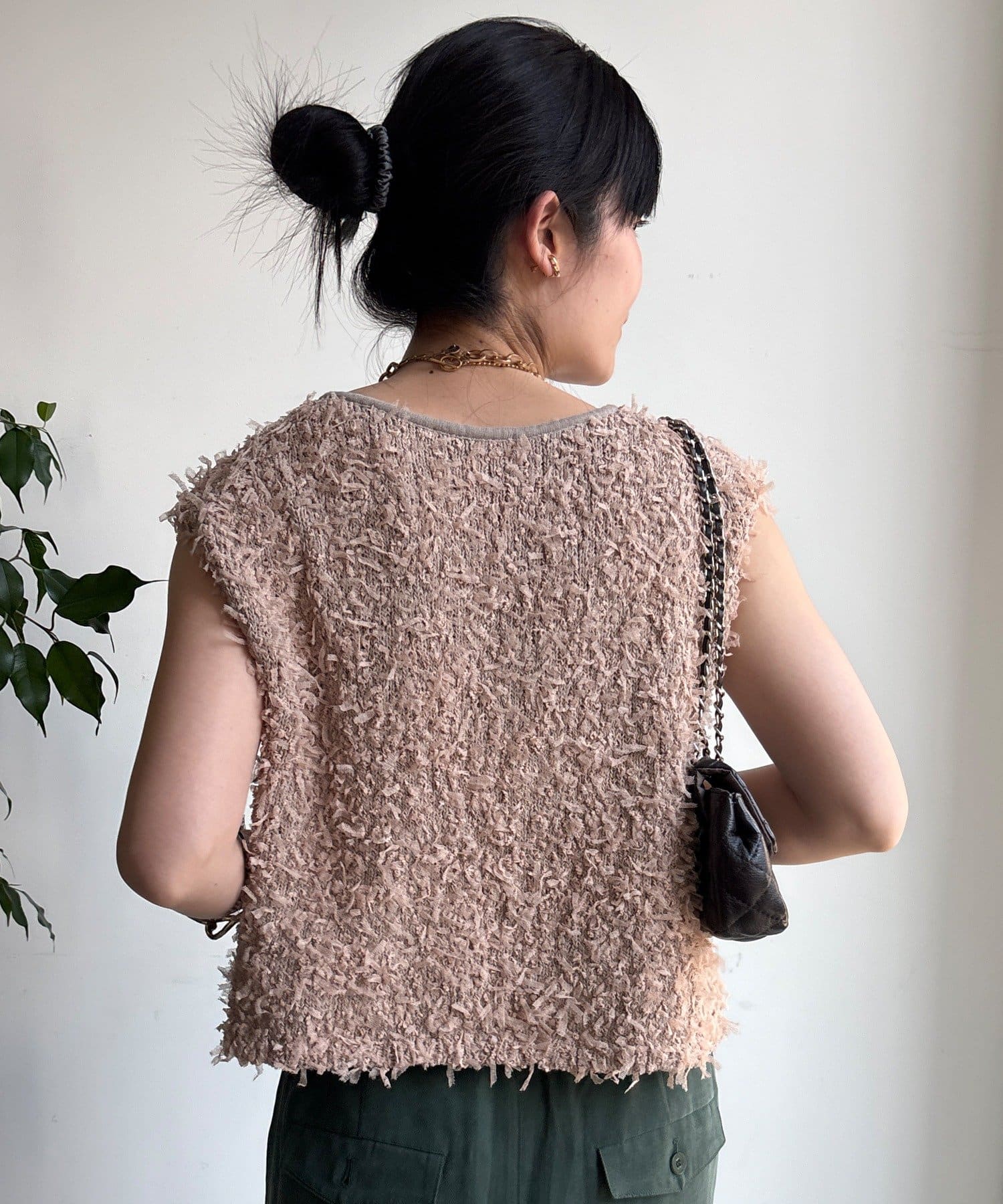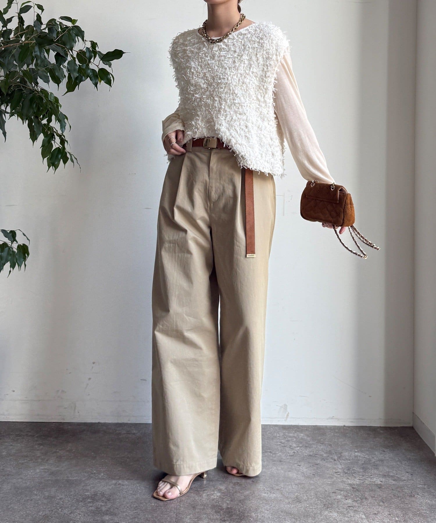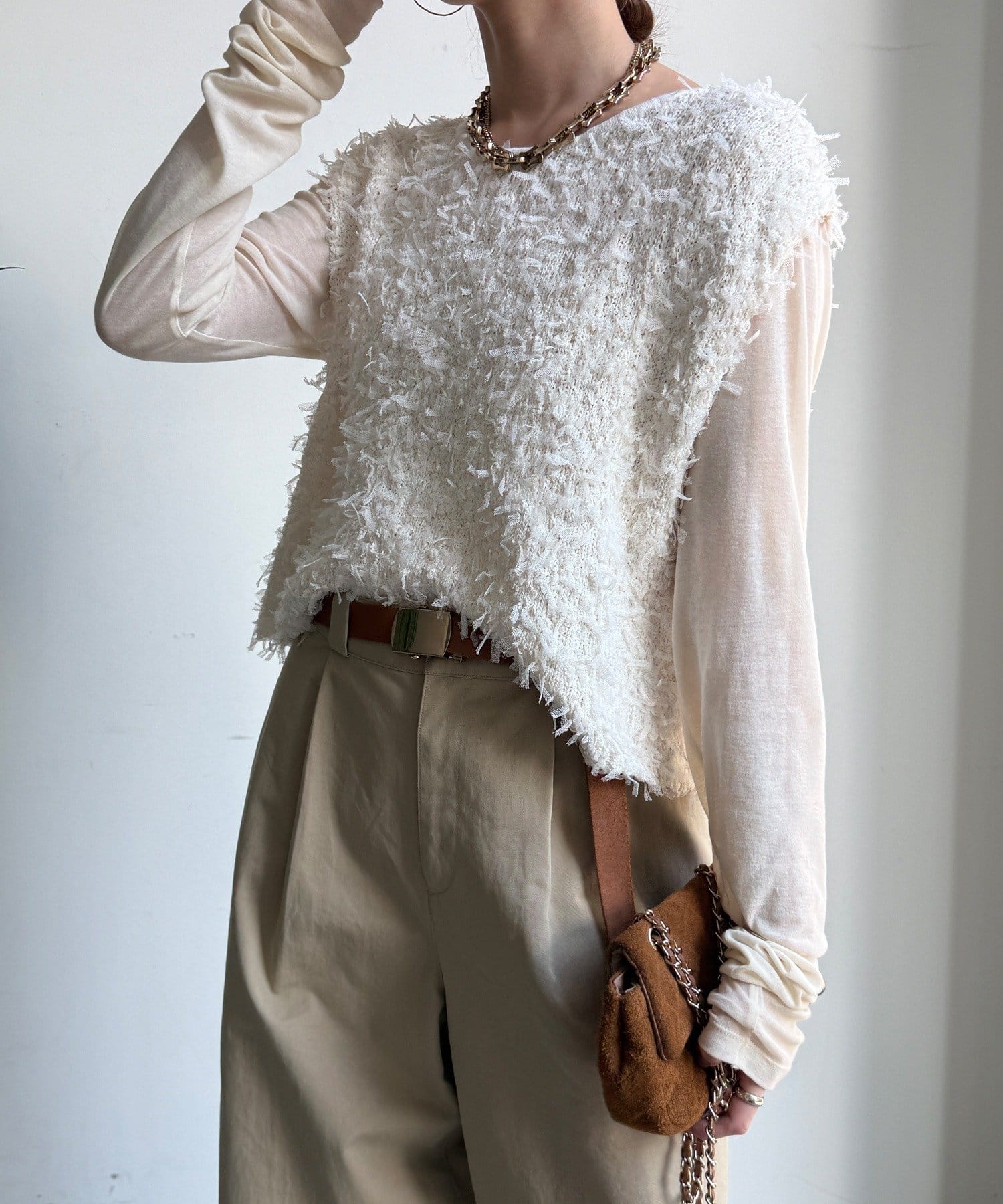 ふんわりとした表情がコーデに奥行きを与える、上品で抜け感のあるベスト。