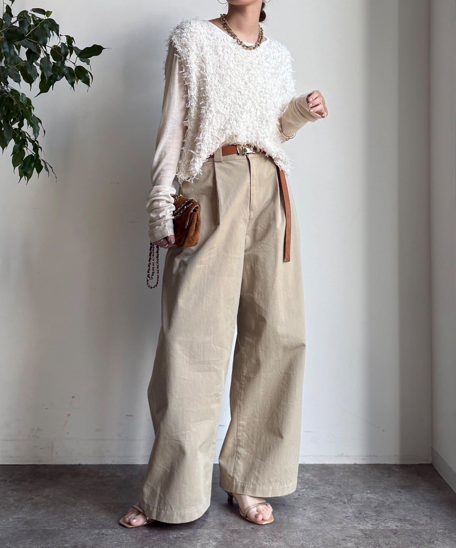 ベストなのでレイヤードしやすく、体型を拾いにくいのもポイントで、